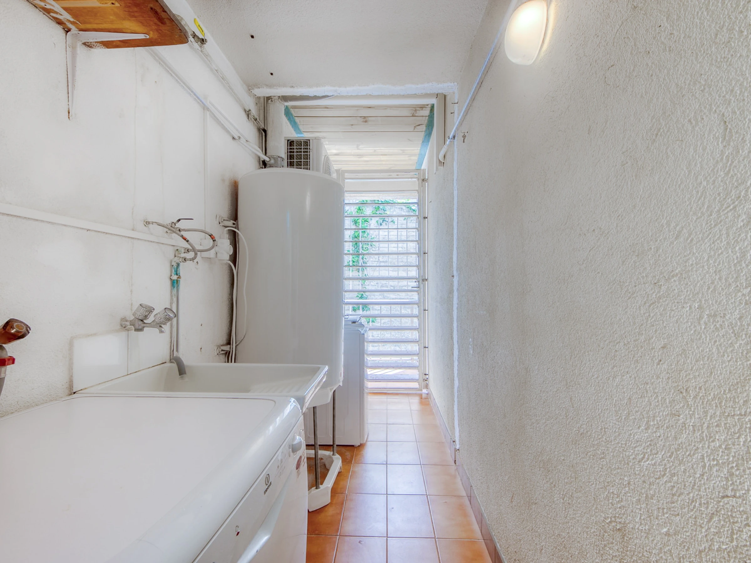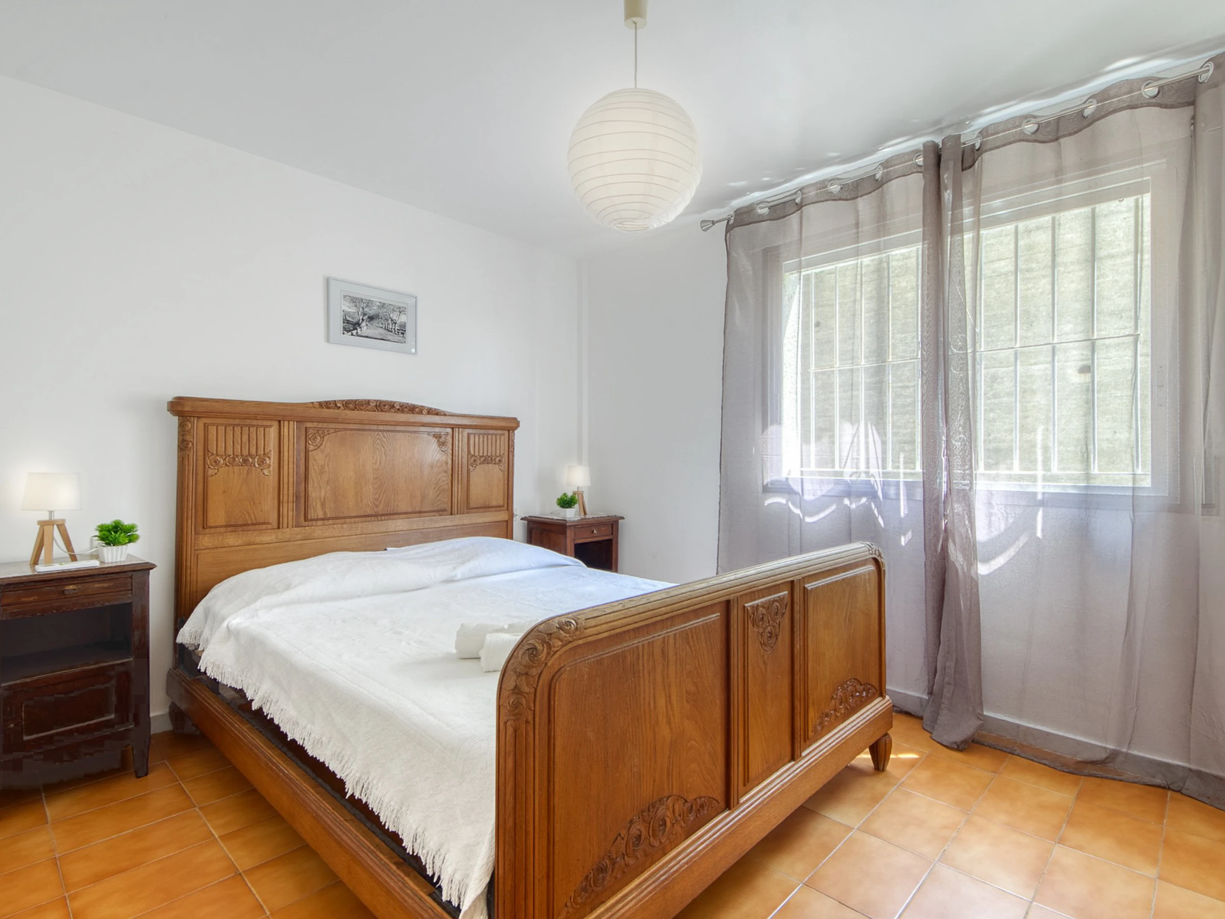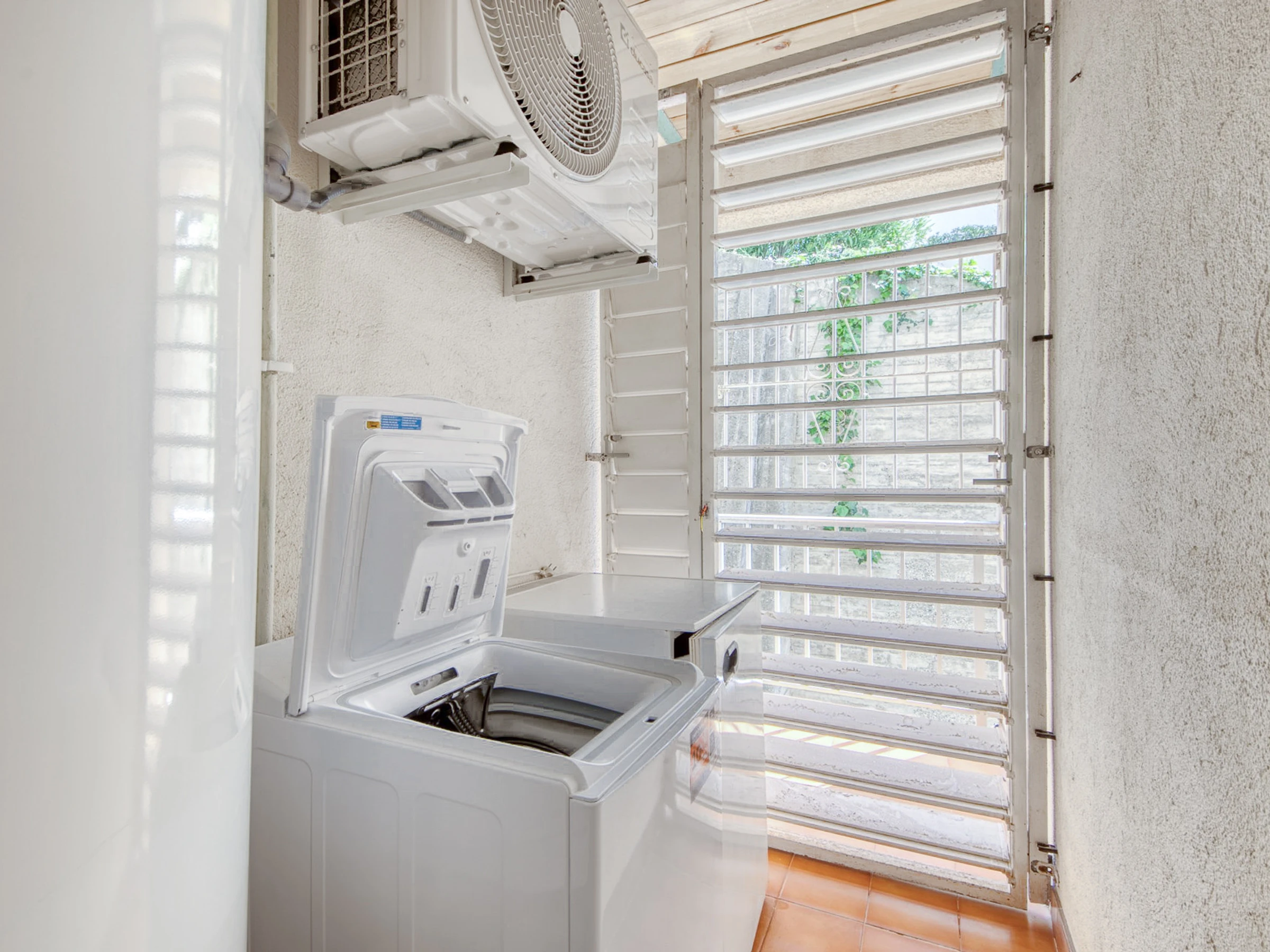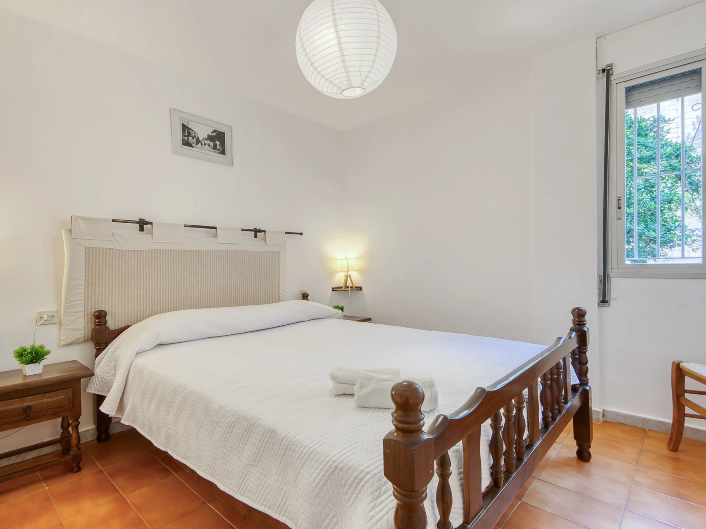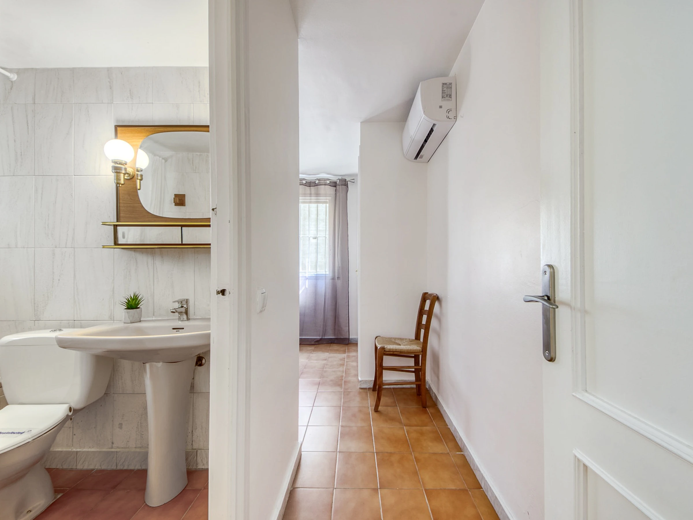 In der Wohnung befindet sich die voll ausgestattete Küche, gefolgt von der Waschküche mit Waschmaschine und Geschirrspüler. Dann gibt es ein Badezimmer mit Dusche, ein Schlafzimmer mit einem Doppelbett und Einbauschränken, ein Schlafzimmer mit zwei Einzelbetten und Einbauschränken, schließlich gibt es das Hauptschlafzimmer mit einem großen Doppelbett mit Einbauschränken und einem Badezimmer; Alle Teile haben Fenster.