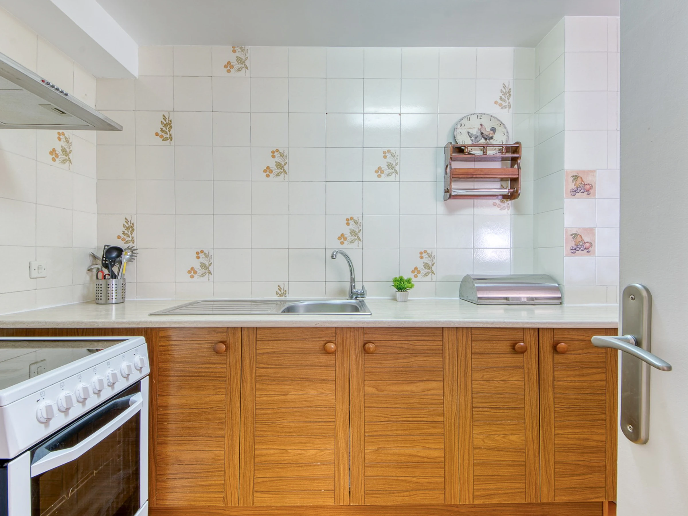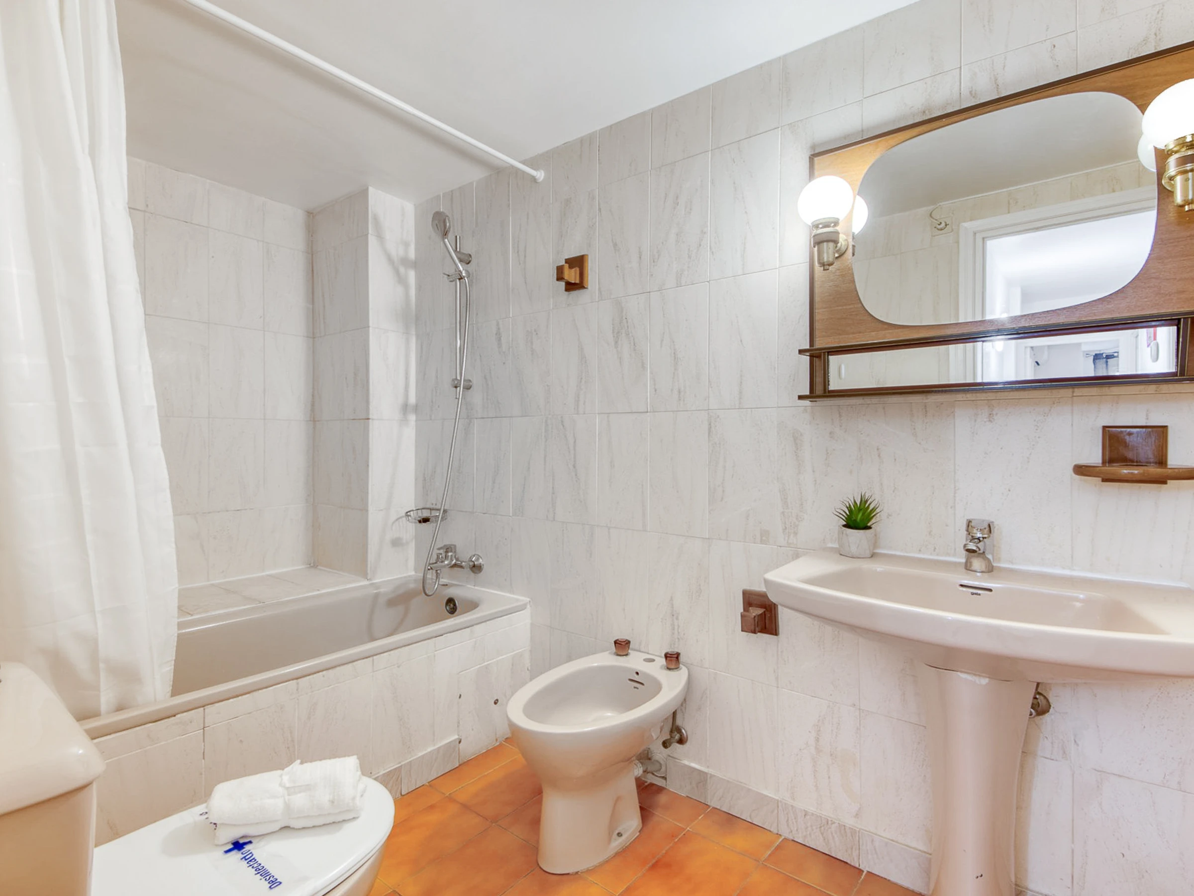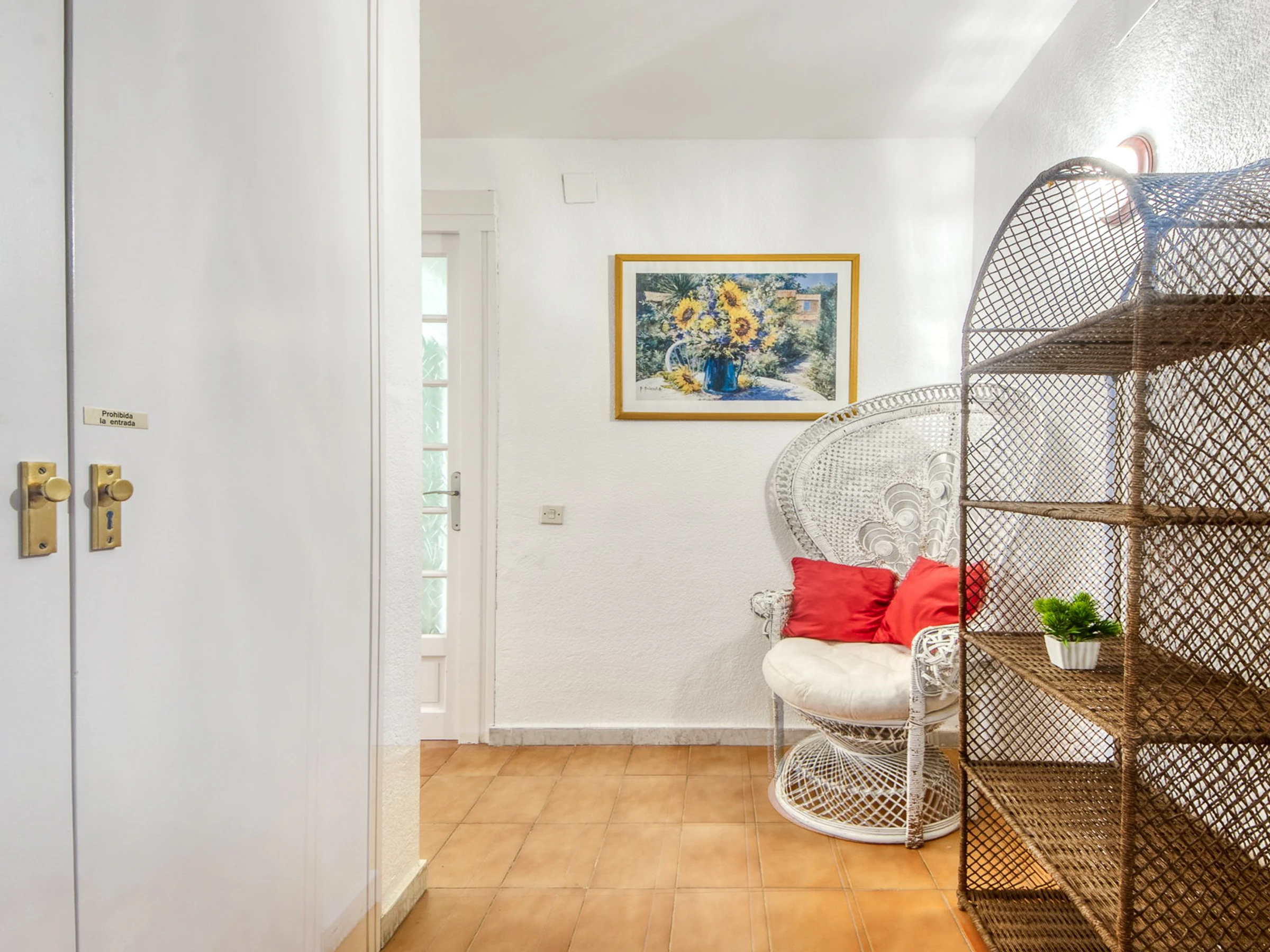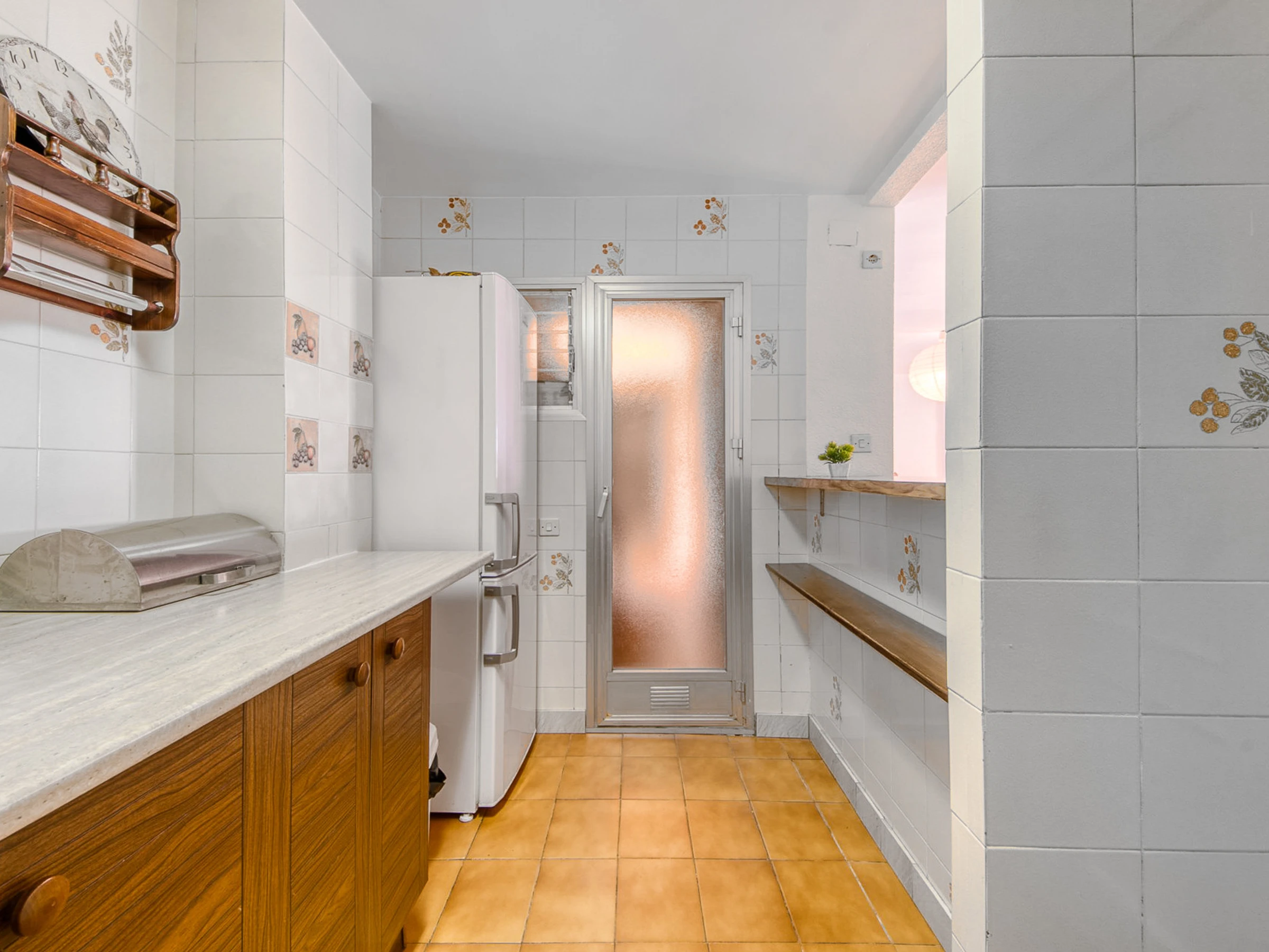 In der Wohnung befindet sich die voll ausgestattete Küche, gefolgt von der Waschküche mit Waschmaschine und Geschirrspüler. Dann gibt es ein Badezimmer mit Dusche, ein Schlafzimmer mit einem Doppelbett und Einbauschränken, ein Schlafzimmer mit zwei Einzelbetten und Einbauschränken, schließlich gibt es das Hauptschlafzimmer mit einem großen Doppelbett mit Einbauschränken und einem Badezimmer; Alle Teile haben Fenster.