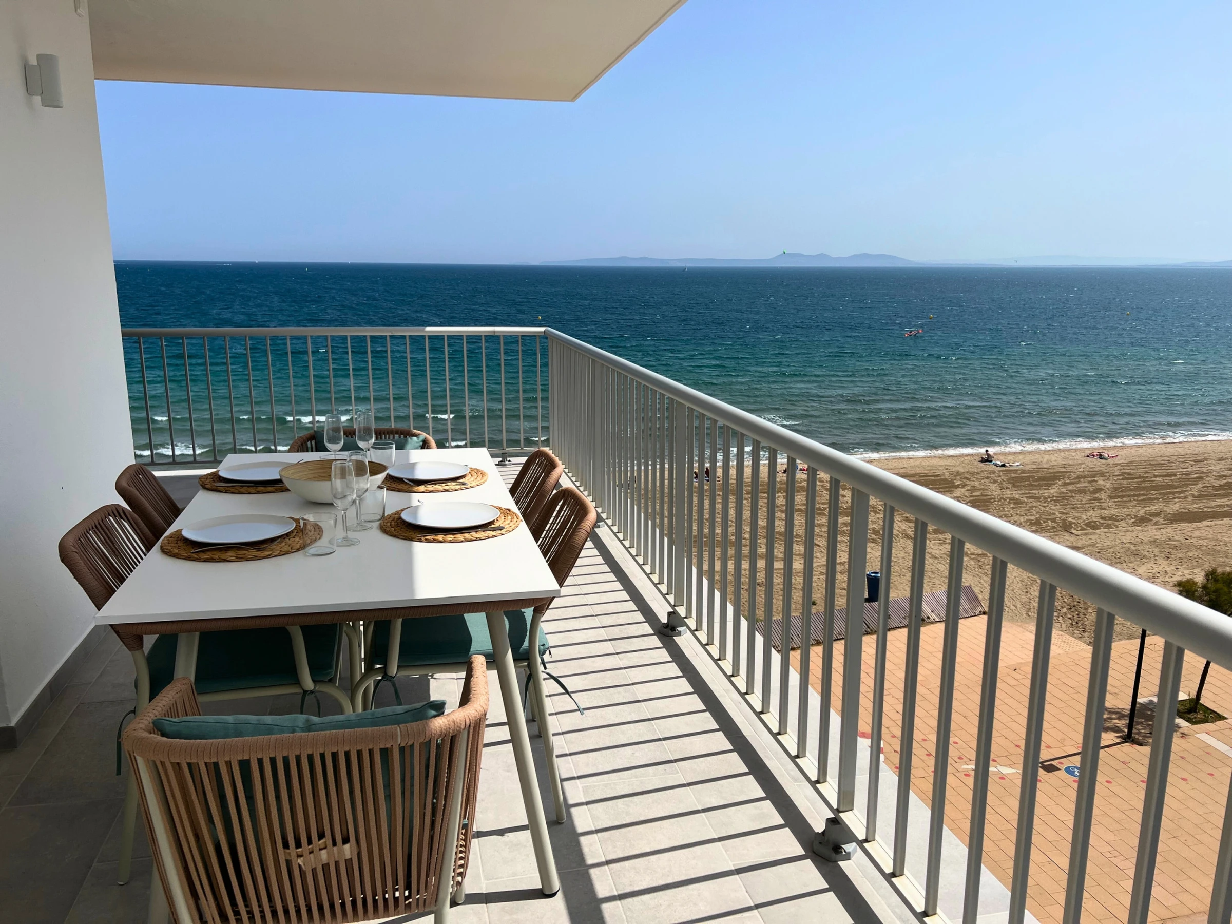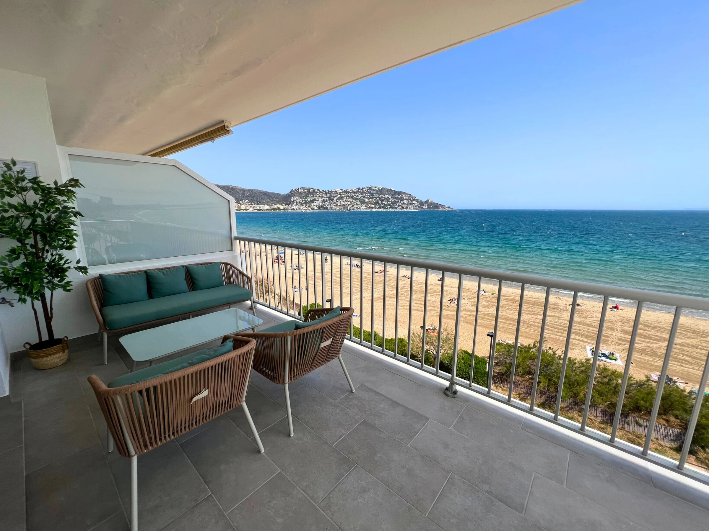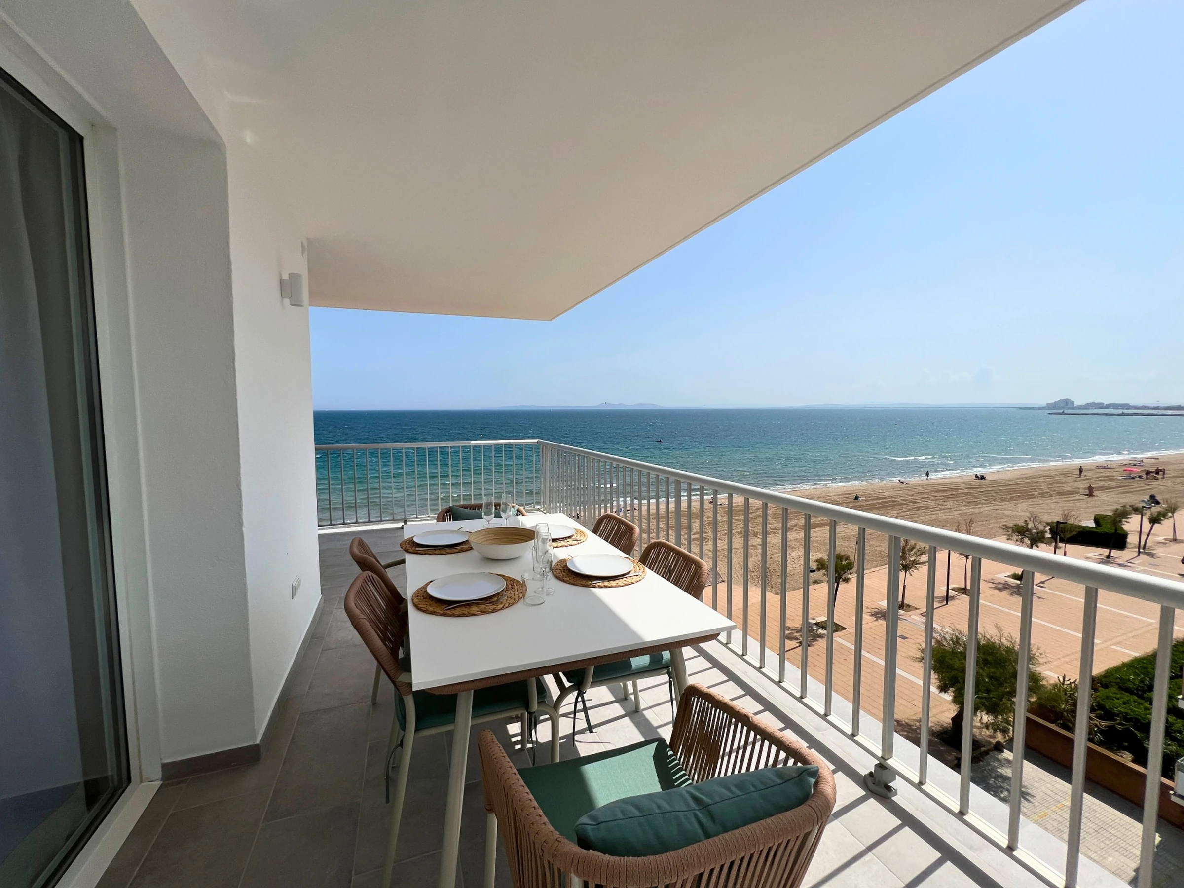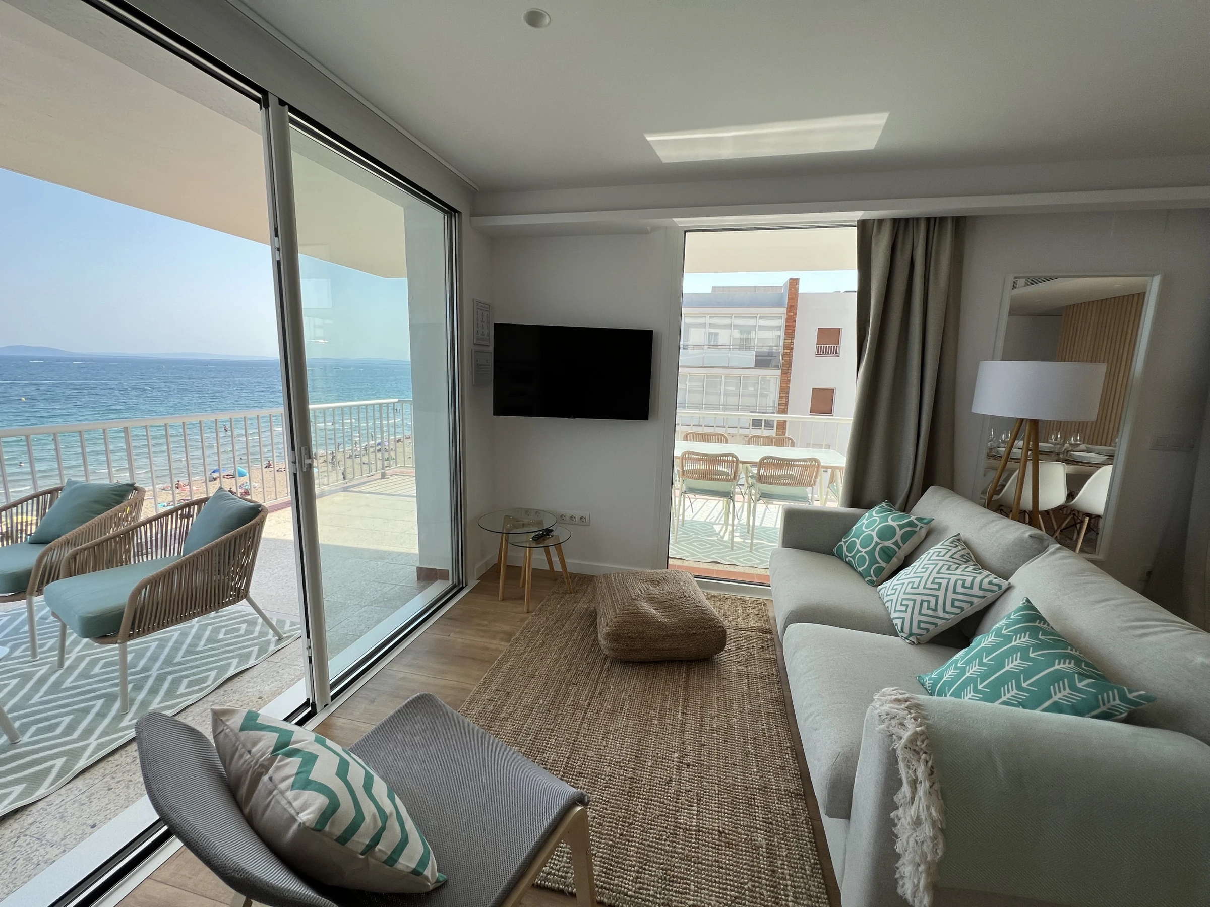 Fantastische, komplett renovierte Wohnung direkt am Strand, an der Promenade von Santa Margarita gelegen und mit einer 33 m² großen Terrasse mit Blick auf die Bucht von Roses.