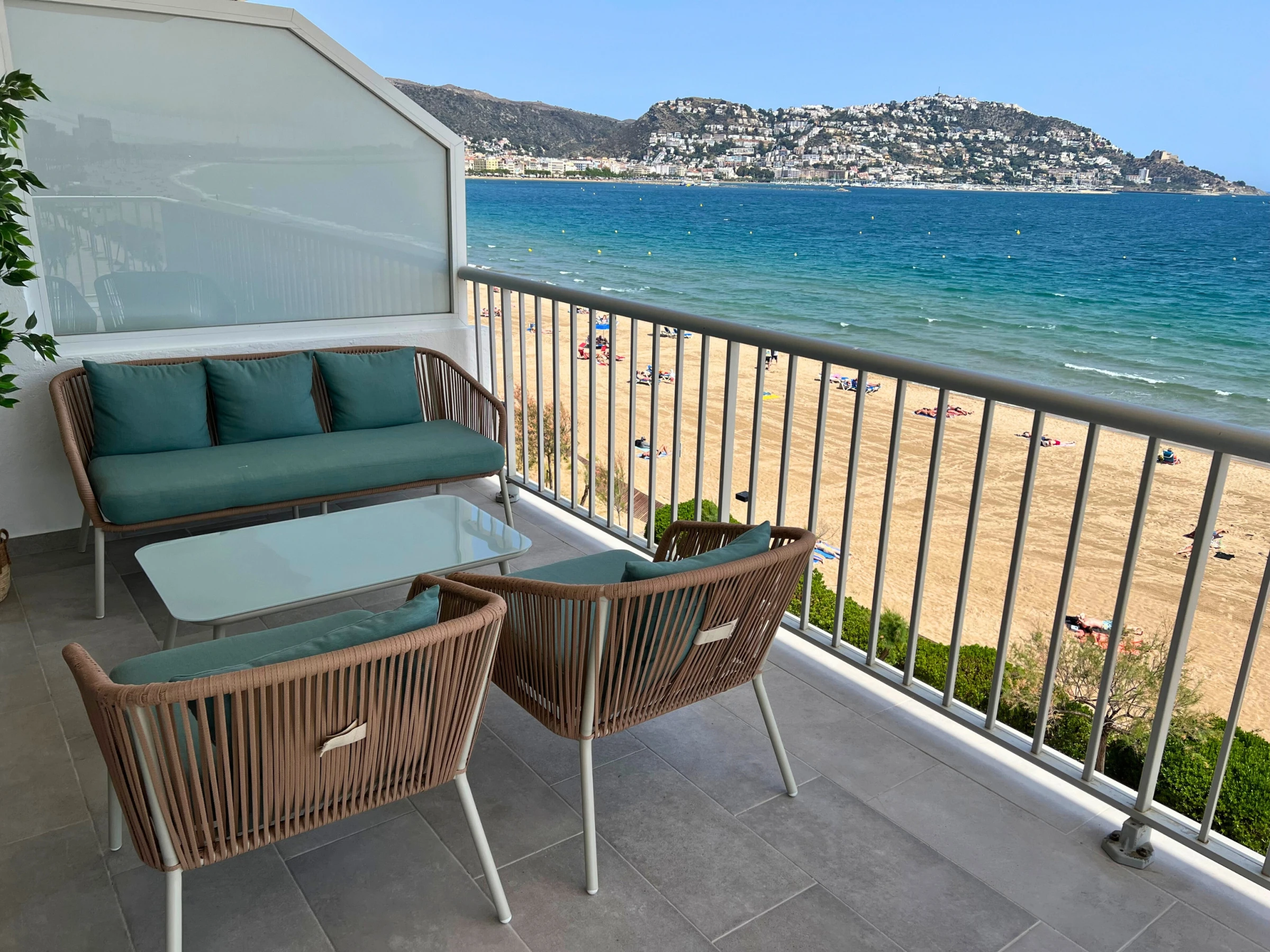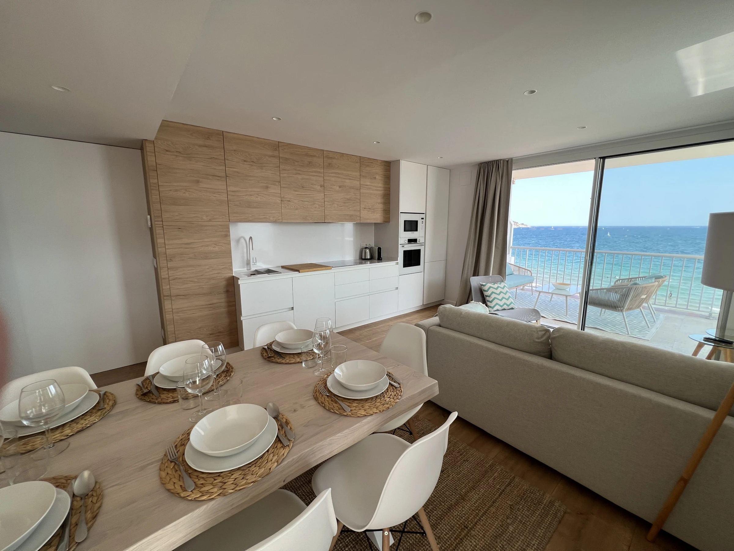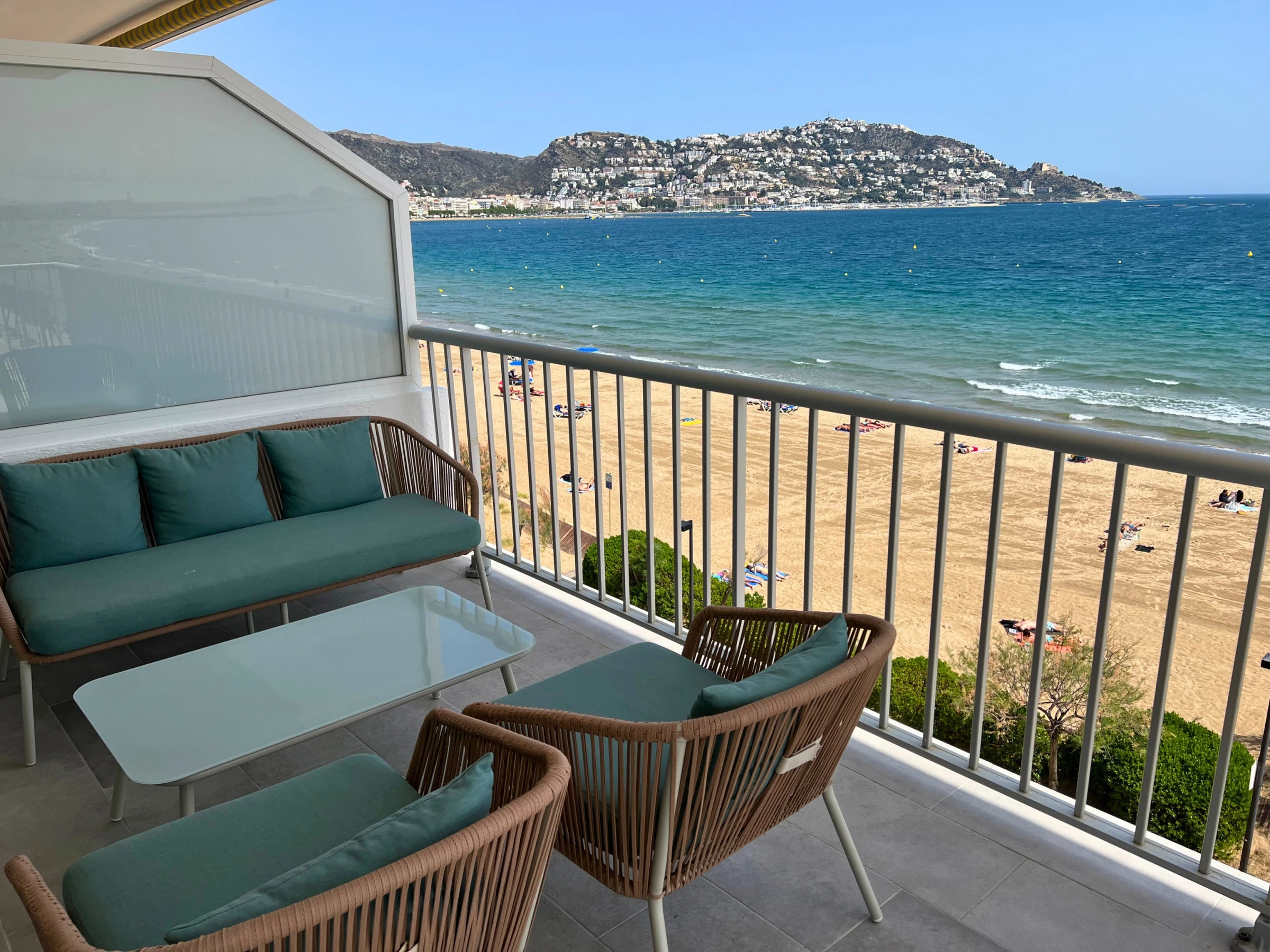 Fantastische, komplett renovierte Wohnung direkt am Strand, an der Promenade von Santa Margarita gelegen und mit einer 33 m² großen Terrasse mit Blick auf die Bucht von Roses.