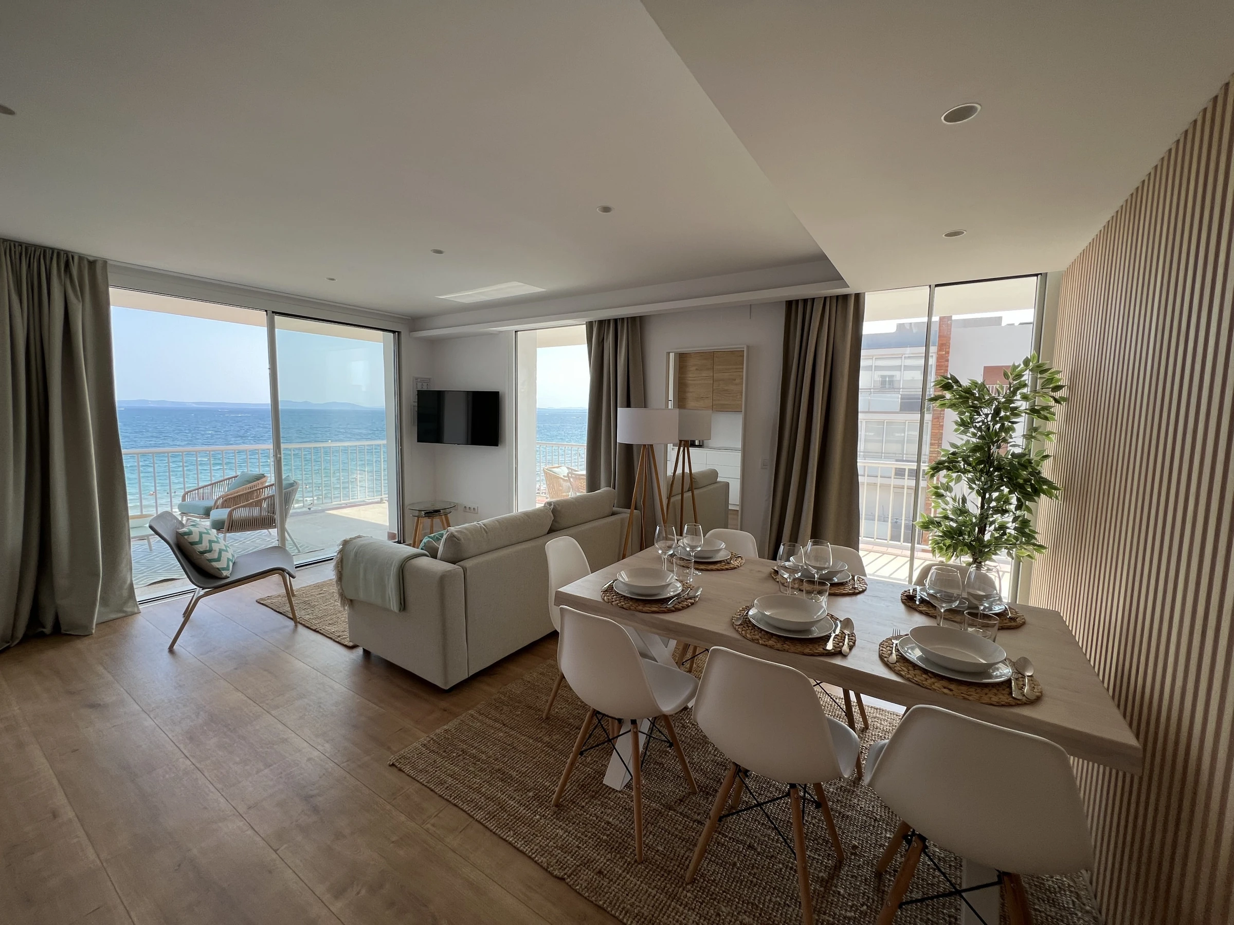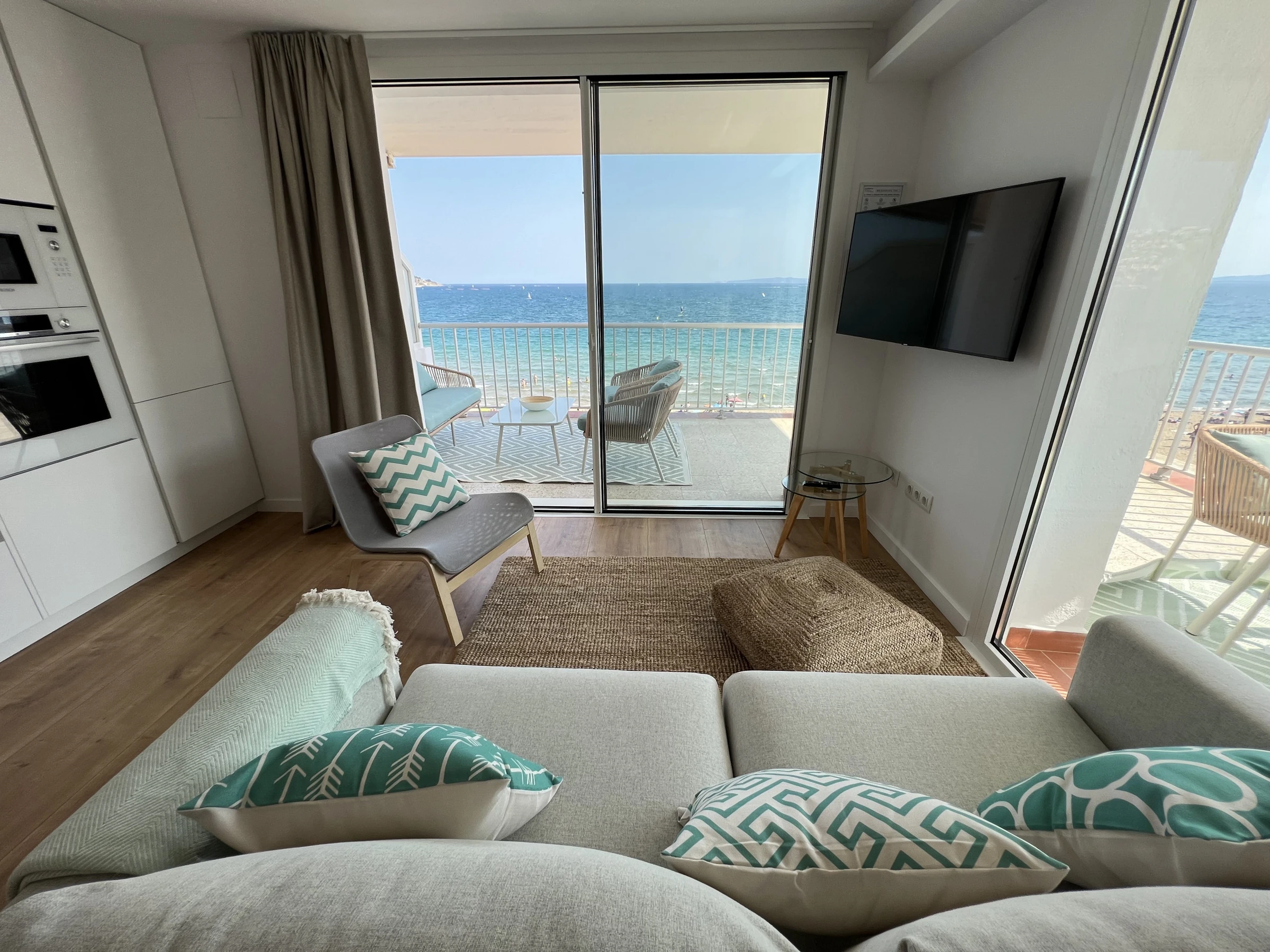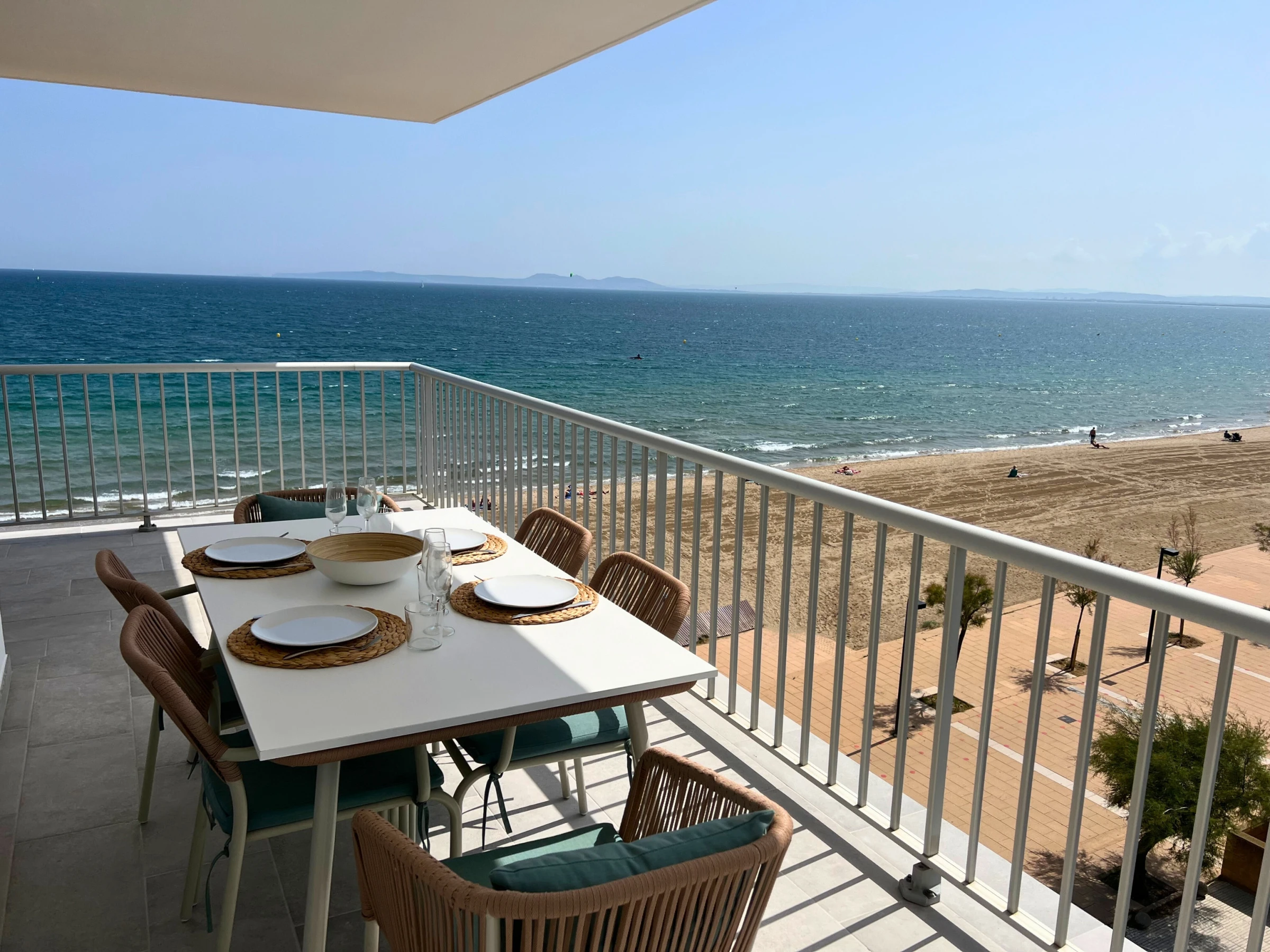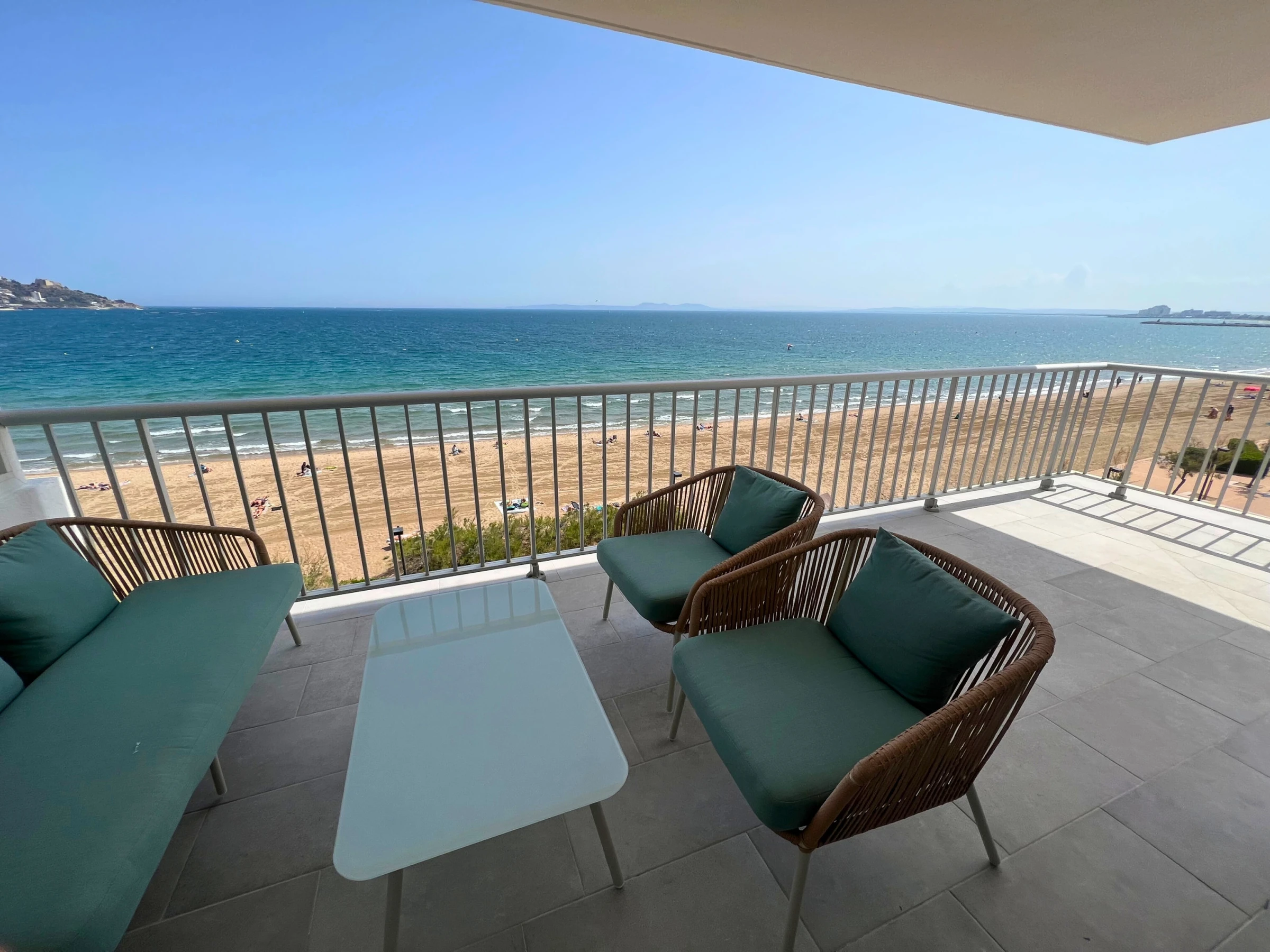Fantastische, komplett renovierte Wohnung direkt am Strand, an der Promenade von Santa Margarita gelegen und mit einer 33 m² großen Terrasse mit Blick auf die Bucht von Roses.