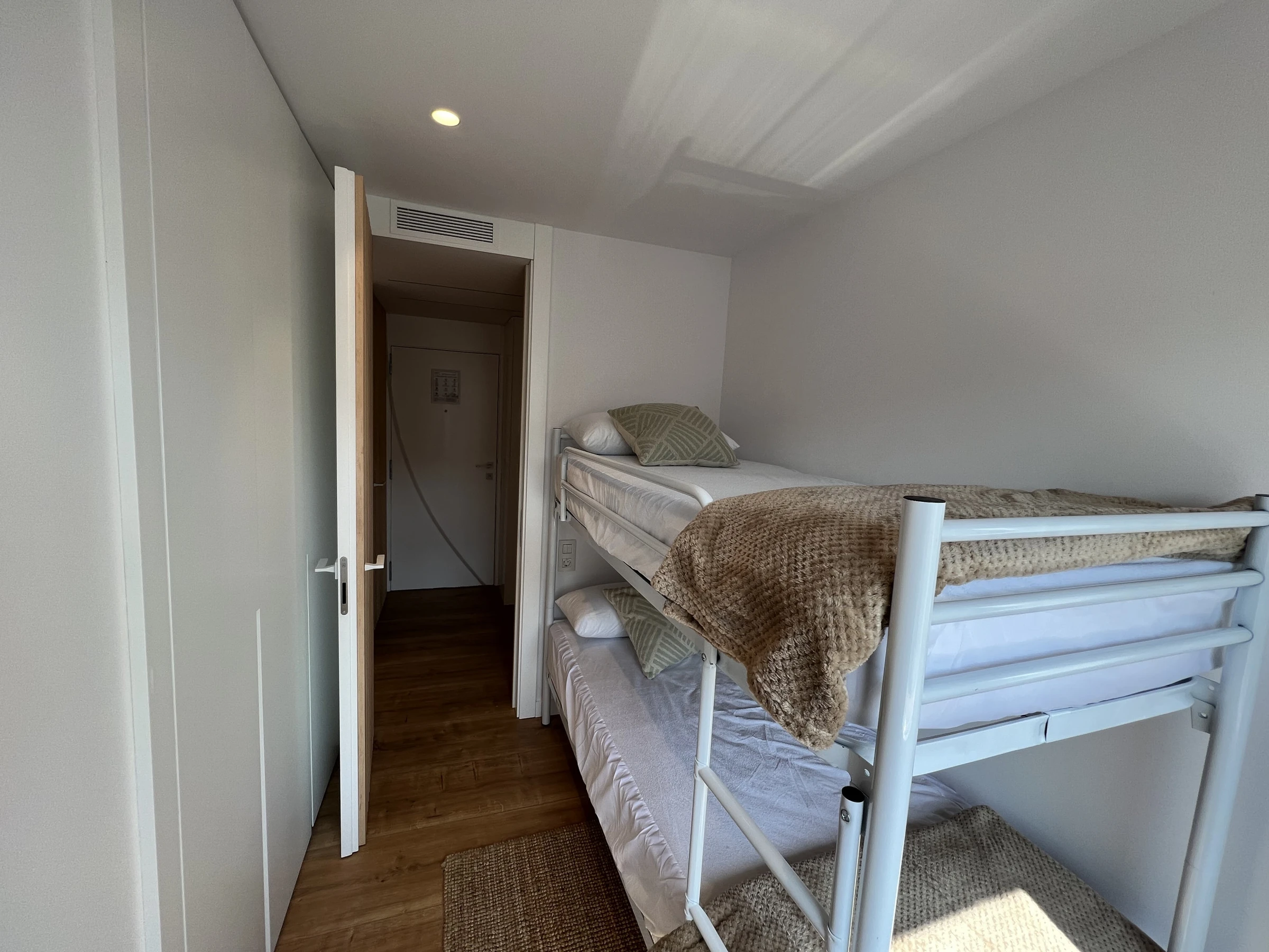 Es verfügt über 3 Doppelzimmer, eines davon Suite-Typ, mit Doppelbett und Bad, ein weiteres mit 2 kleinen Betten und ein weiteres mit 2 Etagenbetten. Die 3 Zimmer sind jeweils mit einem Flachbildfernseher ausgestattet.