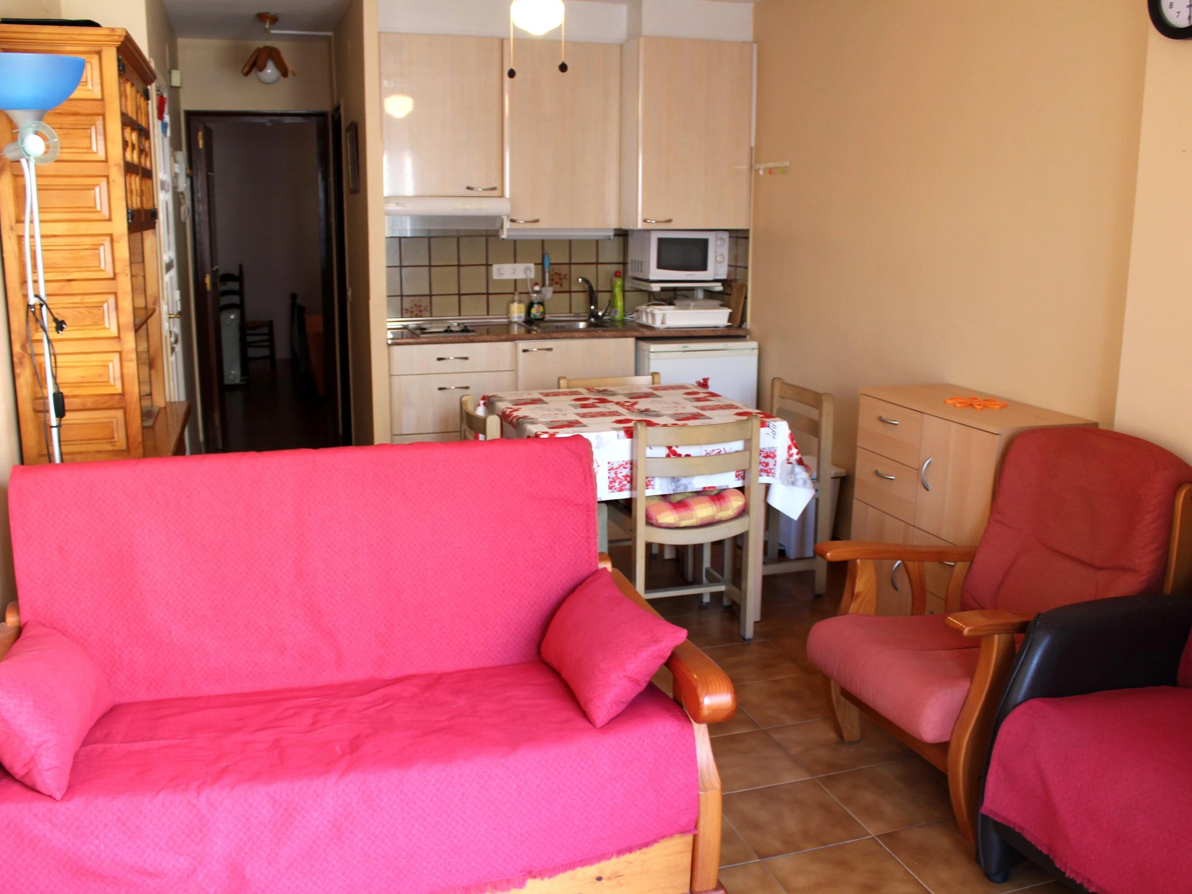 This cozy apartment is located in the center of Roses, just 50 meters from the beach. It features one bedroom with a 150 cm double bed and a sofa bed in the living room, ideal for couples or small families