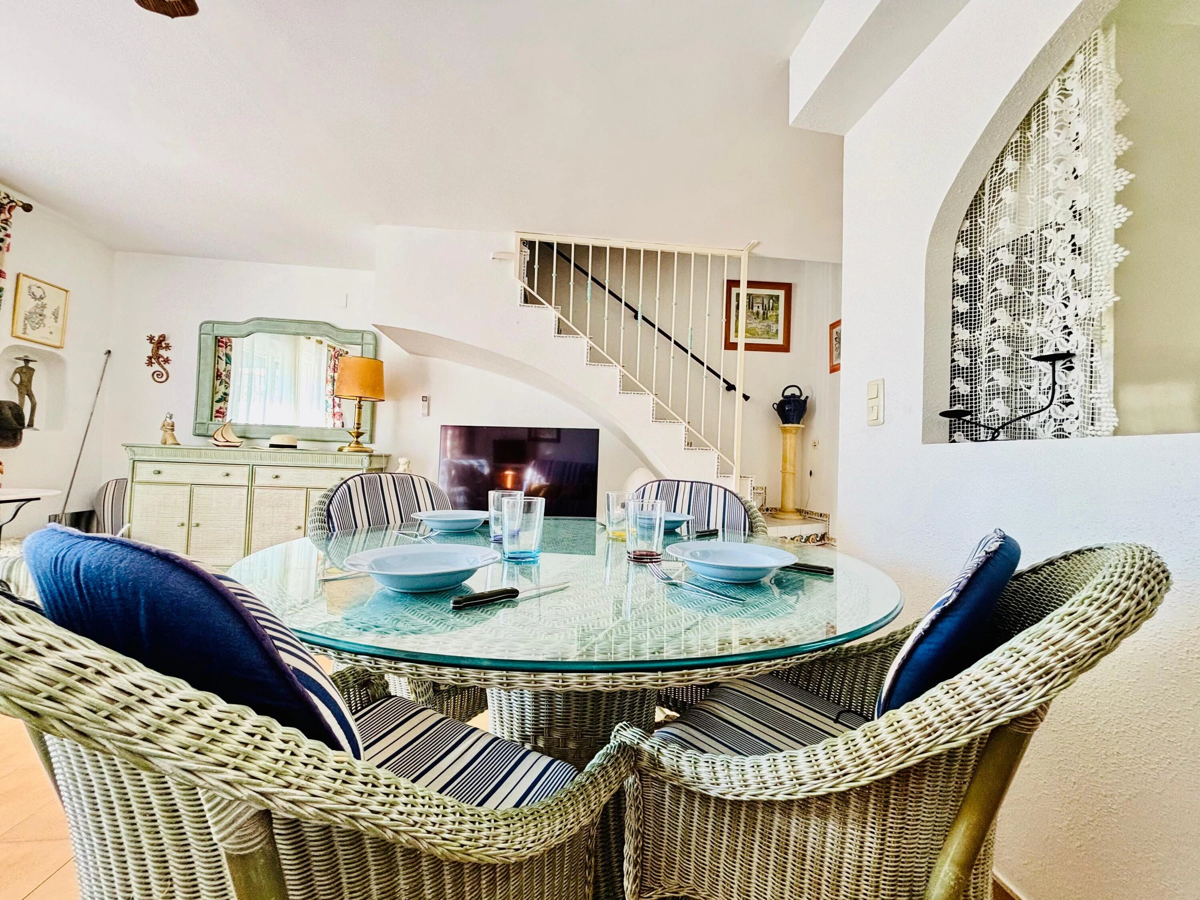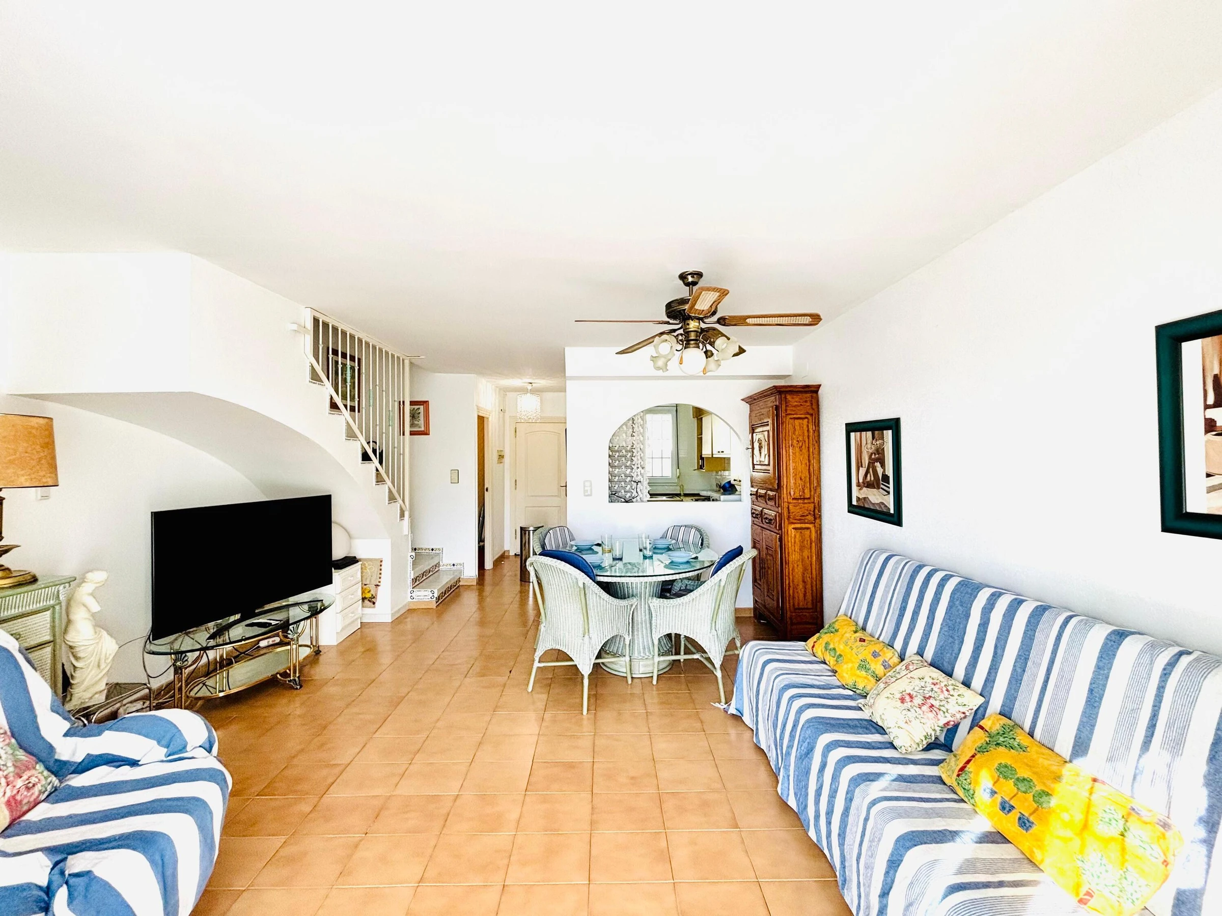 Entdecken Sie dieses charmante Refugium in Roses – ein wunderschönes Reihenhaus, nur [hidden] m vom Meer entfernt, perfekt zum Entspannen und Genießen des mediterranen Lebensgefühls. Mit[hidden] m² privatem Außenbereich bietet es Ruhe, Privatsphäre und Komfort für unvergessliche Urlaubstage. Das Haus bietet: * 70 m² Wohnfläche auf zwei Etagen (ca. 35 m² pro Etage) und Platz für bis zu 4 Personen. * Zwei Schlafzimmer (ein Doppelbett 1,40 m und zwei Einzelbetten 0,90 m) für erholsame Nächte. * Drei Terrassen: eine 10 m² Sonnenterrasse, eine 30 m² überdachte Terrasse und eine weitere15 m² Terrasse mit Zugang vom Esszimmer – perfekt für Frühstück im Freien, entspannte Nachmittage oder ein Glas Wein bei Sonnenuntergang. * Privater Außenparkplatz und eigener Gartenbereich, ideal für Gäste, die mit dem Auto anreisen. * Komplett ausgestattet mit Waschmaschine, Geschirrspüler, Backofen, Mikrowelle, Kaffeemaschine, Satelliten-TV, Markise und Internet – alles, was Sie für einen sorglosen Aufenthalt benötigen. In einer ruhigen Wohngegend gelegen, ist dieses Haus ideal für Paare oder kleine Familien, die Strand, Natur und Komfort miteinander verbinden möchten. Stellen Sie sich vor: Frühstück in der Sonne, eine Siesta auf der Terrasse, ein Spaziergang zum Strand und ein Abendessen unter den Sternen...