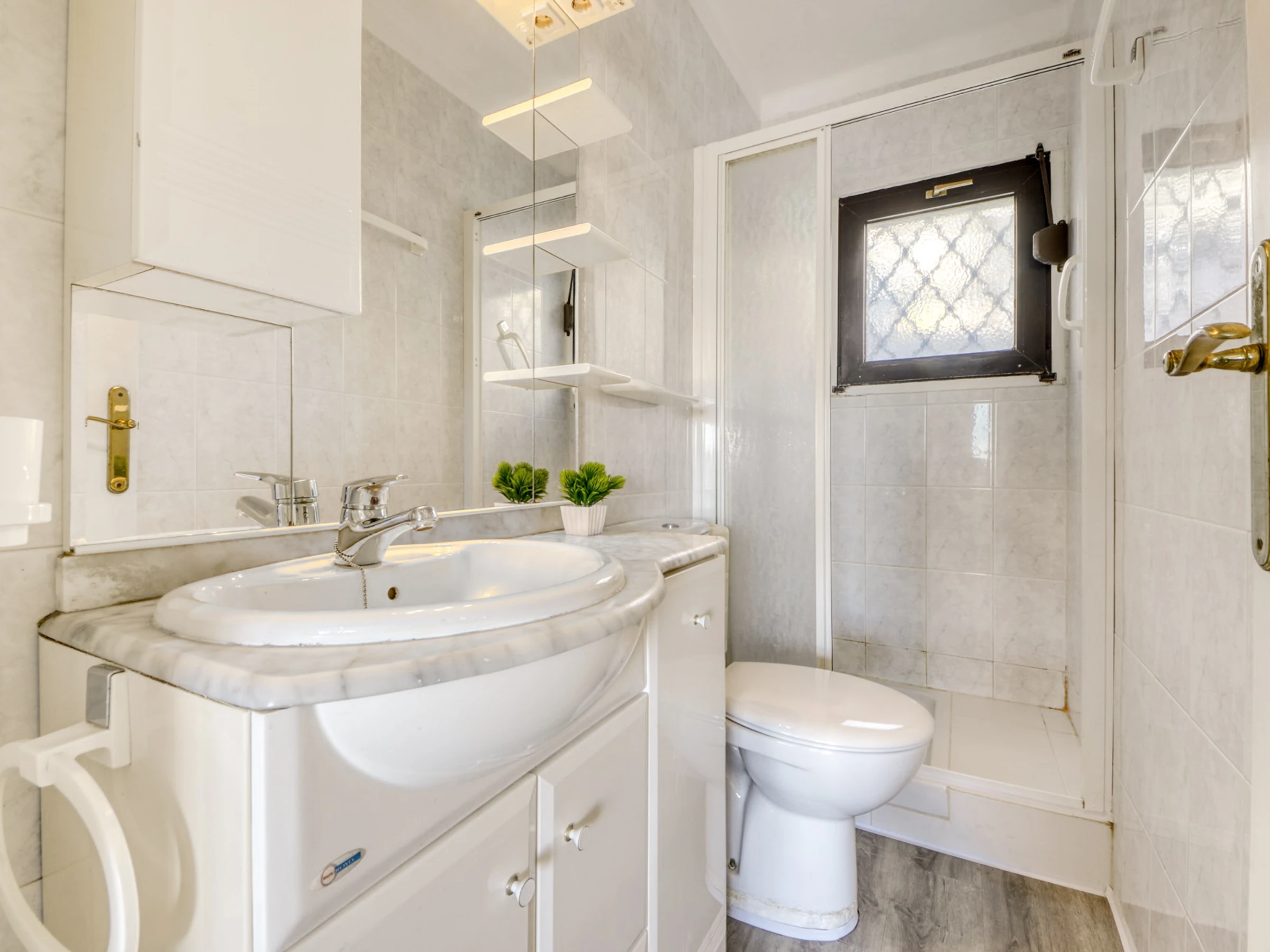 Die Wohnung verfügt über eine voll ausgestattete separate Küche mit Kühlschrank, Mikrowelle, Gefrierschrank, Waschmaschine, Geschirr, Besteck, Küchenutensilien und Kaffeemaschine. Darüber hinaus verfügt es über eine charmante 6 m² große Terrasse mit Gartenmöbeln und einem Bügeleisen, auf der Sie Ihre Mahlzeiten im Freien genießen können. Es verfügt außerdem über moderne Annehmlichkeiten wie Satellitenfernsehen und Parkplätze im Freien im selben Gebäude.