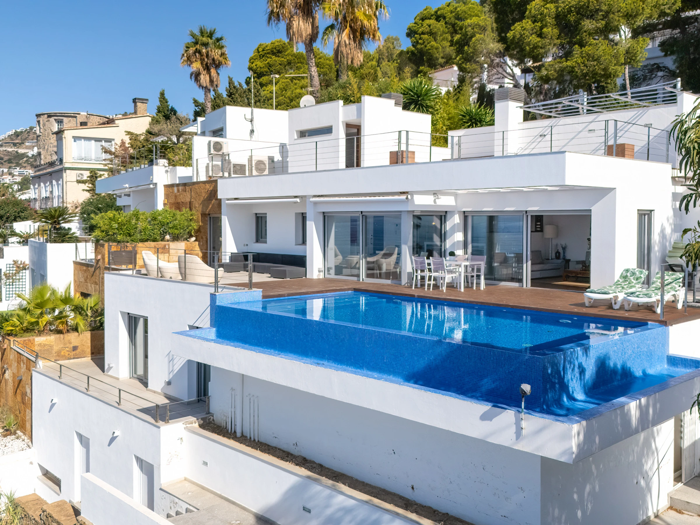 Die Villa befindet sich auf einem Grundstück von ungefähr 620 m², mit verschiedenen Außenbereichen, die darauf ausgelegt sind, das mediterrane Klima, die Erholung und den Blick aufs Meer zu genießen.