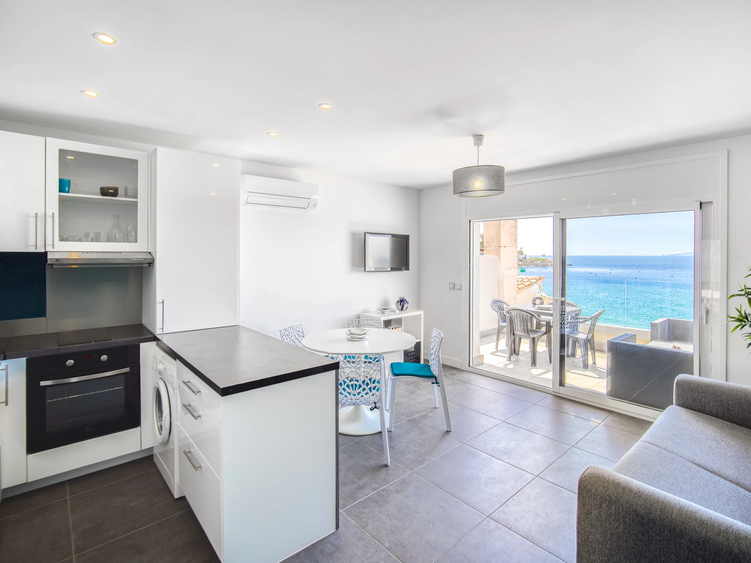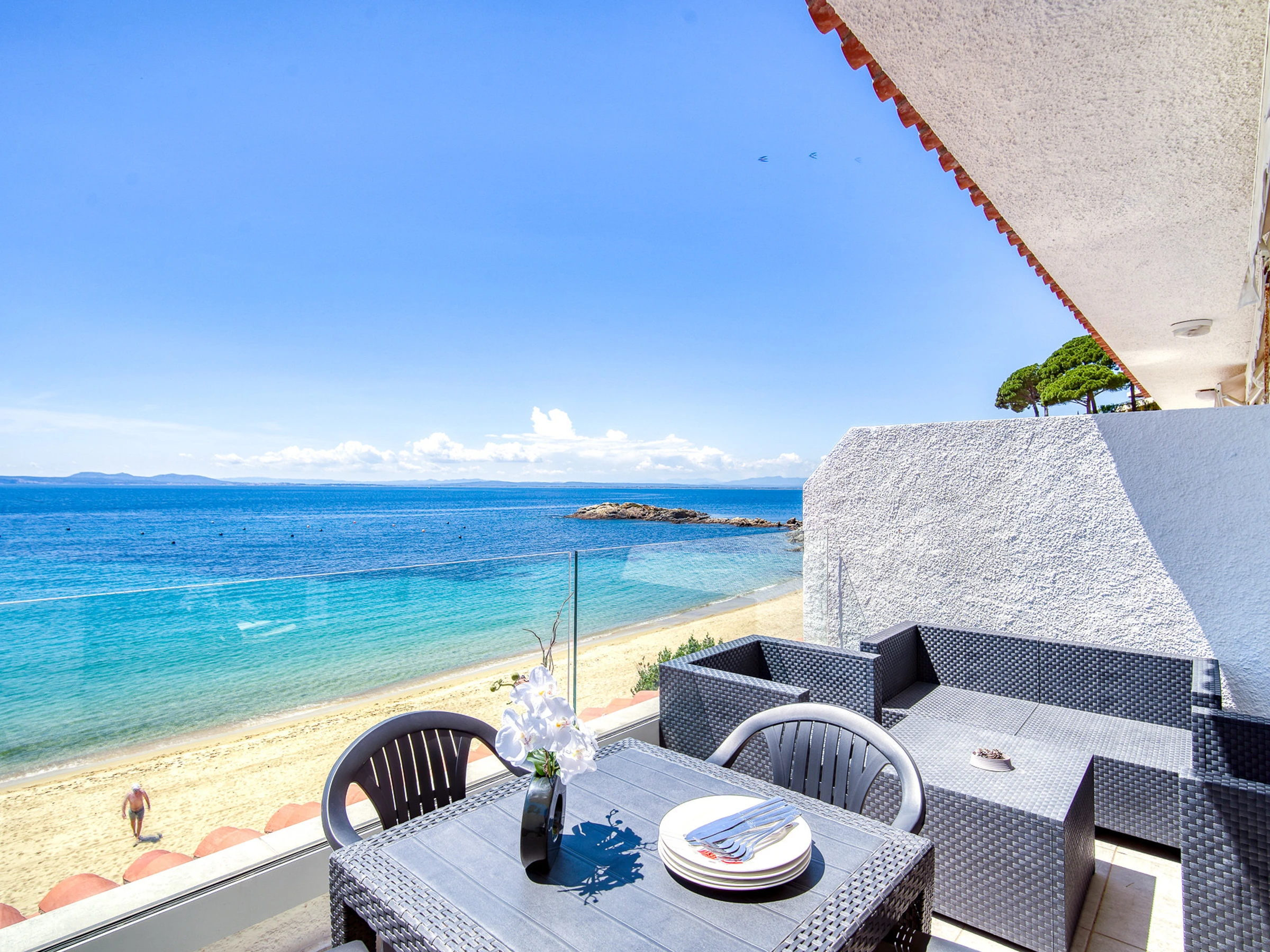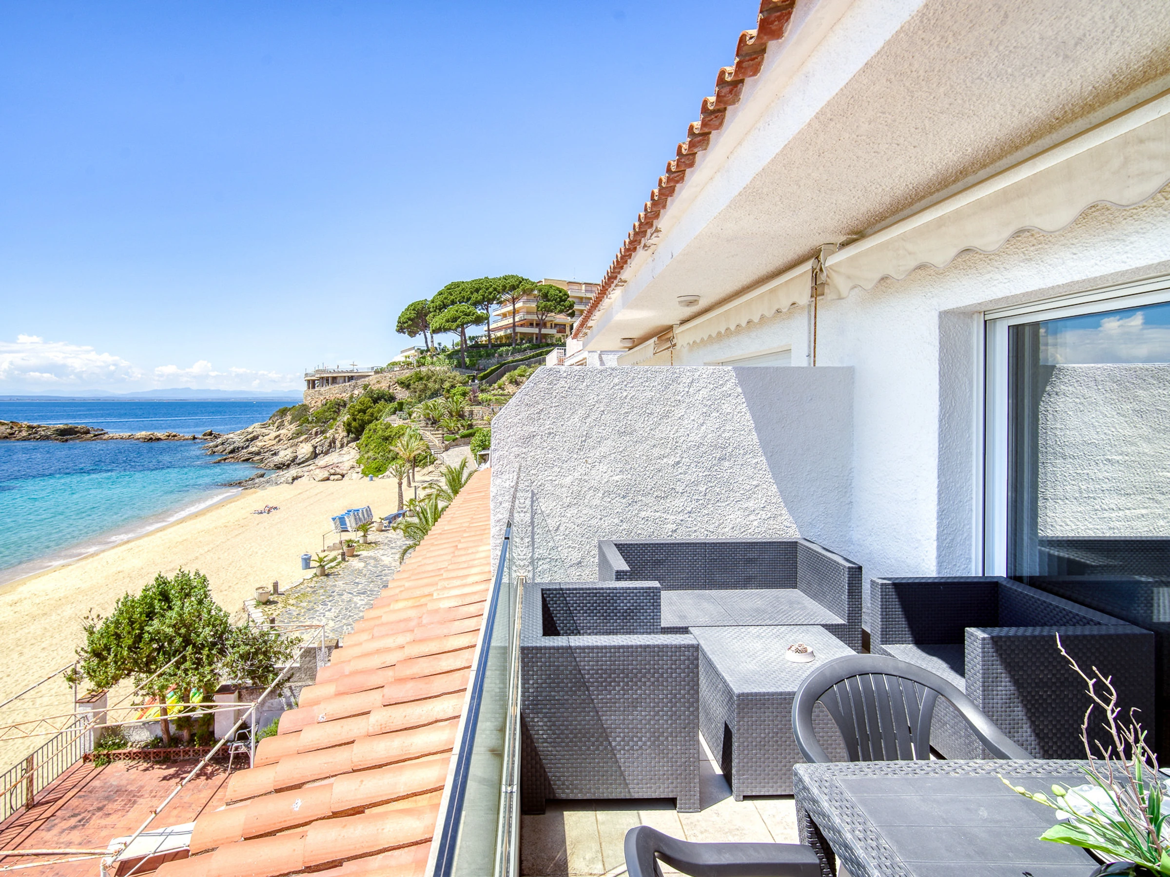 Die Wohnung bietet direkten Zugang zum Strand, ideal um einen entspannten Urlaub zu genießen, spektakuläre Sonnenauf- und Sonnenuntergänge zu betrachten und die mediterrane Atmosphäre zu erleben.