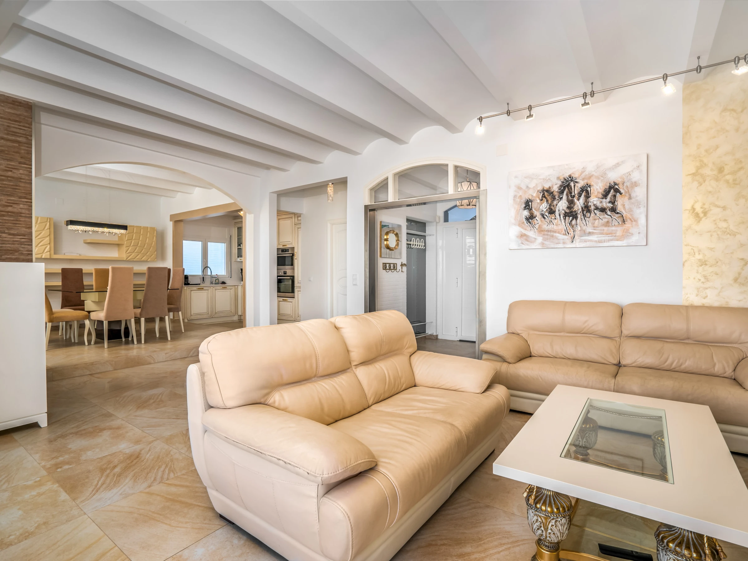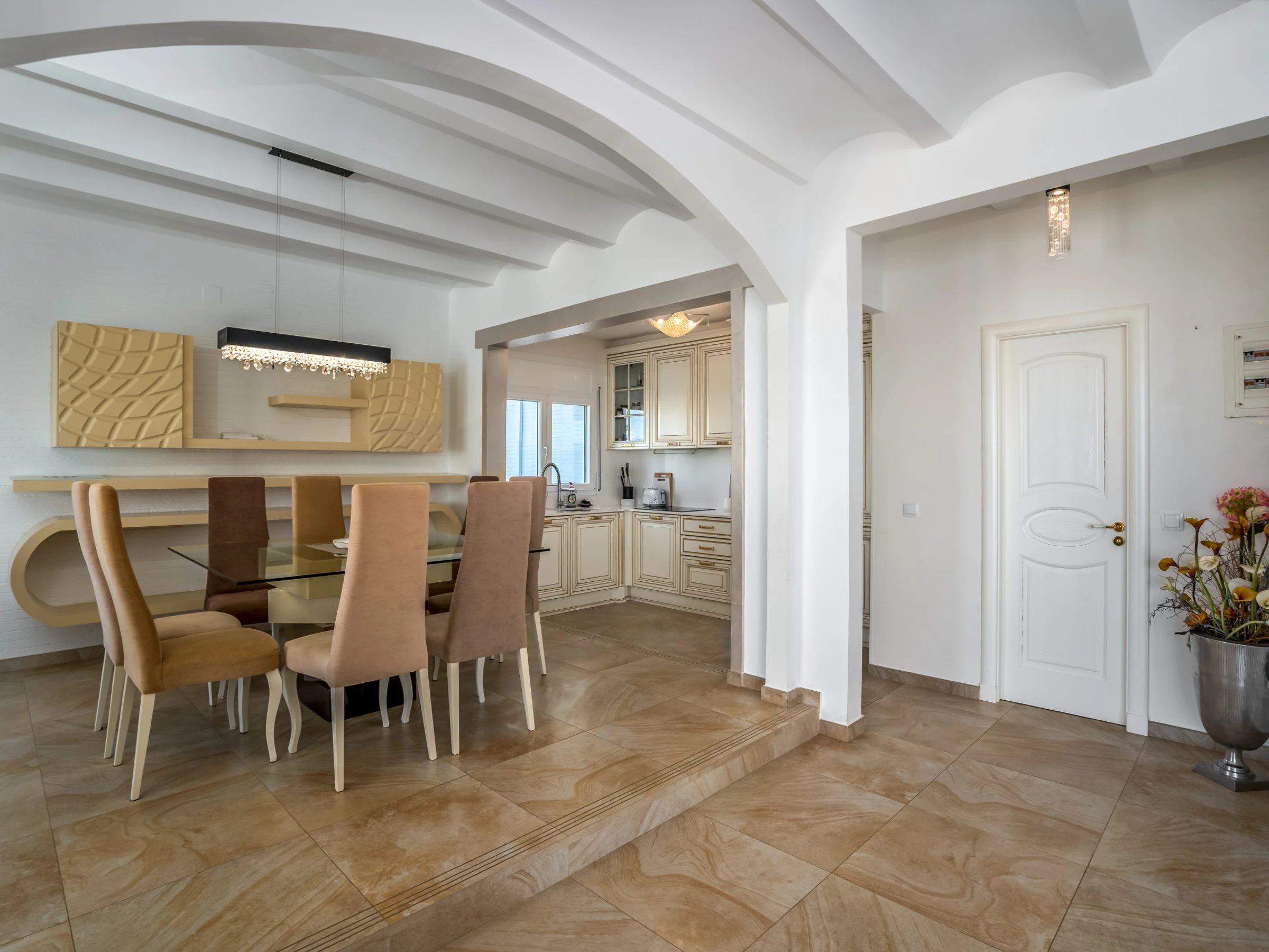 Luxuriöse Villa mit 250 m², stellt ein exklusives Haus dar, das für 8 Personen konzipiert ist. Die Villa verfügt über 3 Schlafzimmer mit Badezimmern: Zwei von ihnen teilen sich ein Badezimmer und das Hauptschlafzimmer verfügt über ein privates Badezimmer mit direktem Zugang zu einer Terrasse mit beeindruckendem Ausblick. Das Haus bietet einen geräumigen Wohn-Essbereich mit Sofa und Meerblick. Im Erdgeschoss befindet sich ein Bereich mit offener Küche, einem kleinen Wohnzimmer und einem Schlafzimmer mit Doppelbett. Die Küche ist mit Materialien von höchster Qualität ausgestattet und komplett ausgerüstet, um jedes Gericht zuzubereiten und alle Geschmäcker zu befriedigen!