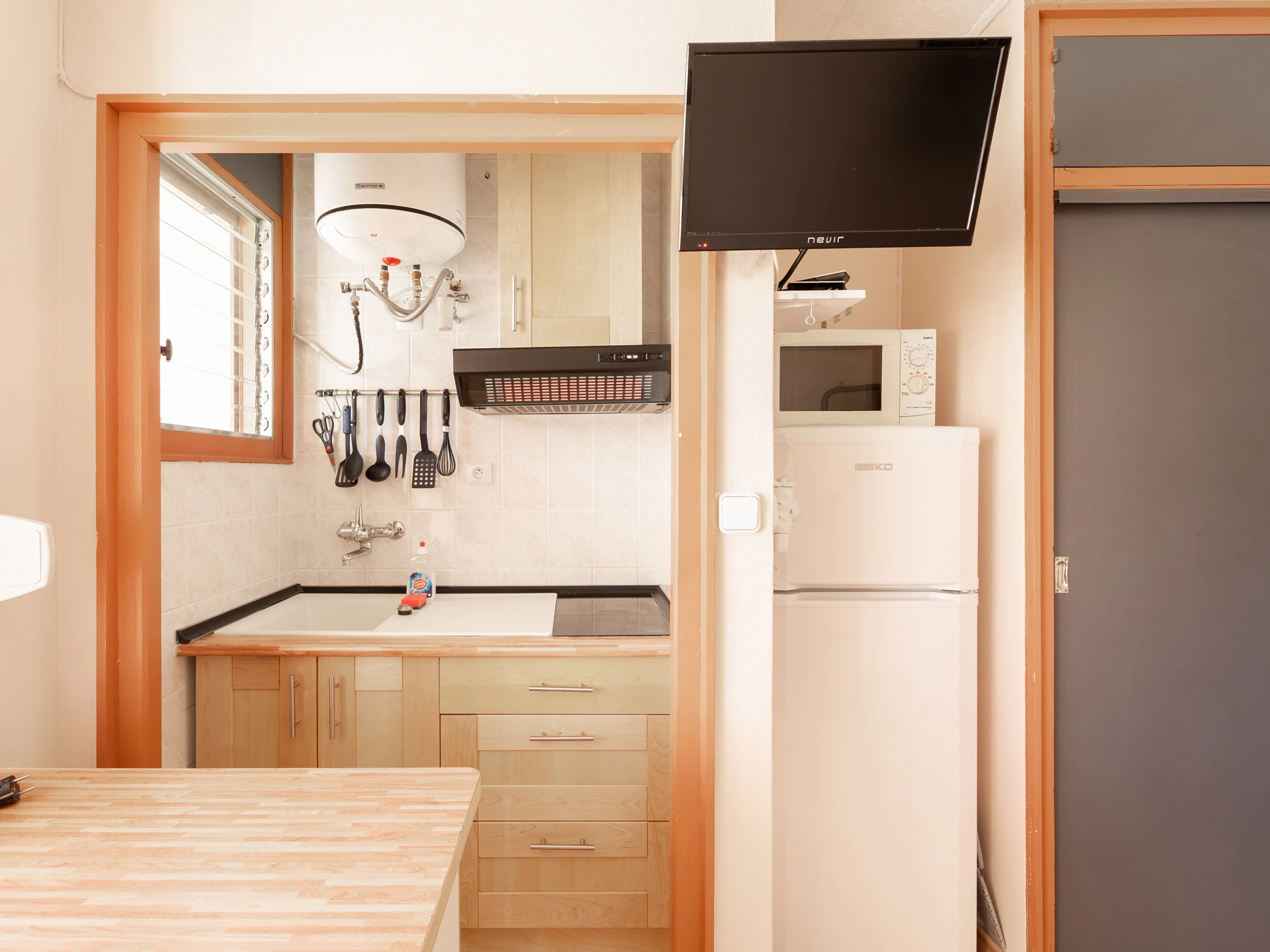 Dieses gemütliche 25 m² große Studio in Roses bietet Platz für 2 Personen. Es ist komplett ausgestattet mit einer funktionalen Küche, die Kühlschrank, Herd, Mikrowelle und Kaffeemaschine umfasst, perfekt um Ihre Lieblingsgerichte zuzubereiten. Der Raum verfügt über ein bequemes Klappbett, grundlegende Möbel und einen Smart-TV.