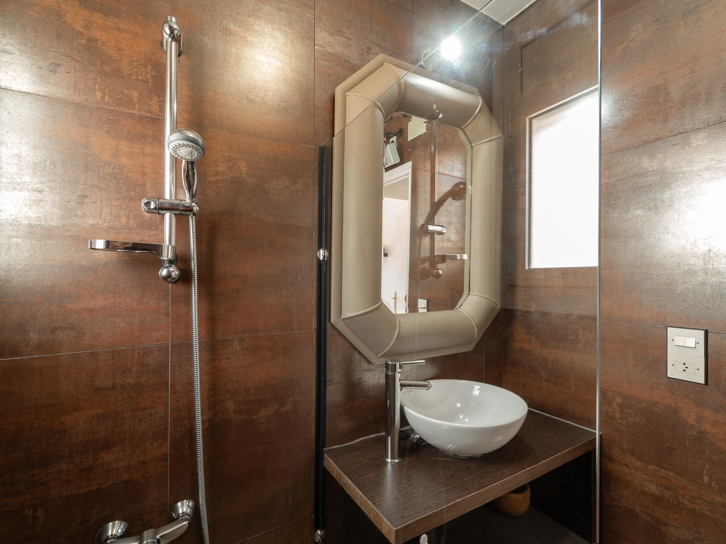 Im ersten Stock befindet sich ein geräumiges Wohnzimmer, das mit einem bequemen Sofa und einem Fernseher ausgestattet ist, was es zu einem idealen Ort zum Entspannen macht. Hier befindet sich auch die Esszone, von der aus man einen Ausgang zur Terrasse mit einem atemberaubenden Meerblick hat. Im Wohnzimmer ist zudem eine Klimaanlage installiert, die an heißen Tagen für ein angenehmes Klima sorgt. Die Küche ist mit allem Notwendigen zum Kochen ausgestattet, sodass die Gäste Heimgekochtesvor der Meereskulisse genießen können.