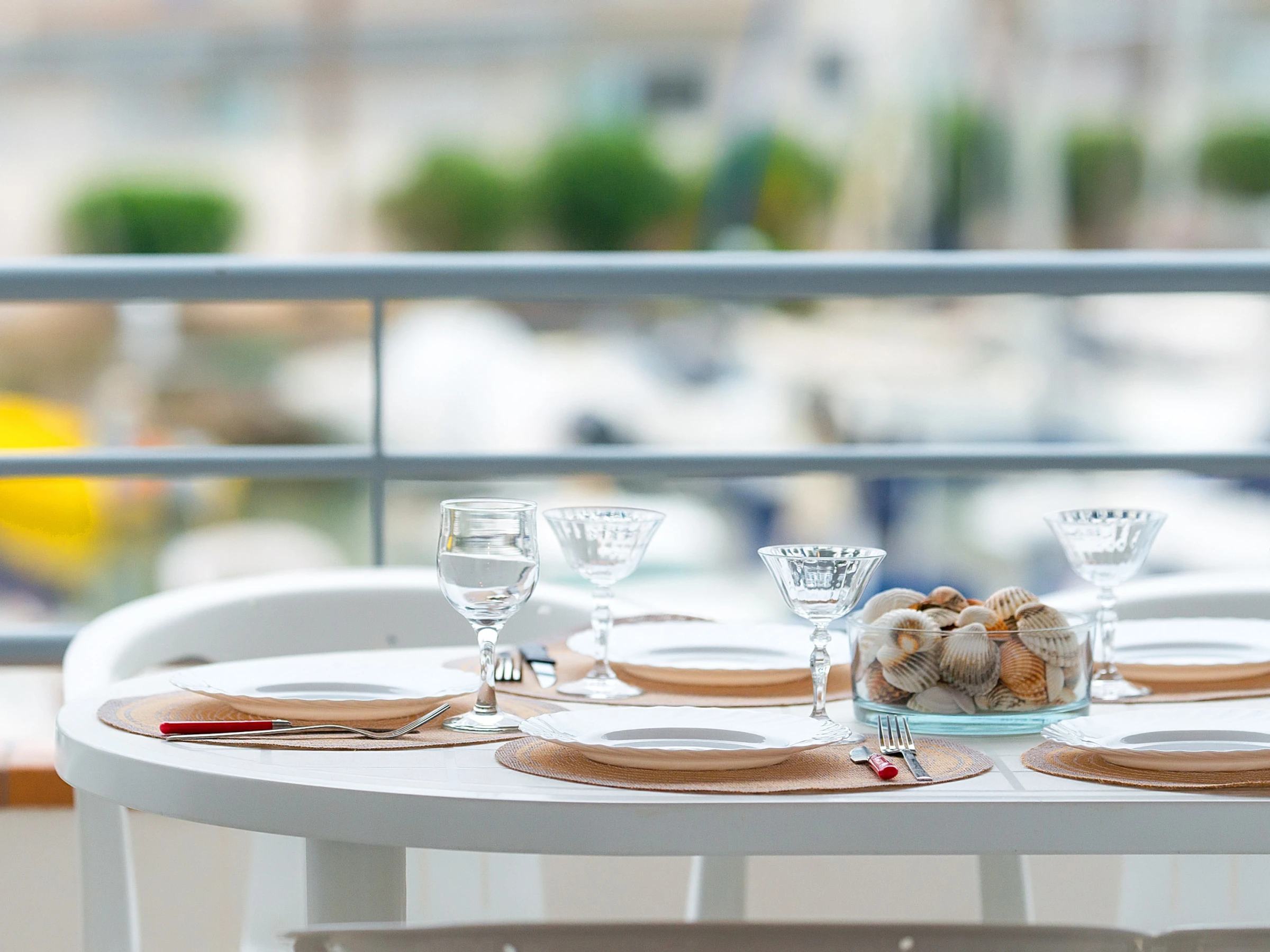 Die Wohnung bietet Platz für vier Gäste und verfügt über ein Schlafzimmer und eine Terrasse. Das Wohnzimmer bietet einen atemberaubenden Blick auf den Kanal, wo schneeweiße Boote über das Wasser gleiten und eine einzigartige Atmosphäre eines Seeabenteuers schaffen. Große Sichtfenster füllen den Raum mit Licht und ermöglichen es, die malerische Aussicht bequem von Ihrem temporären Zuhause aus zu genießen.