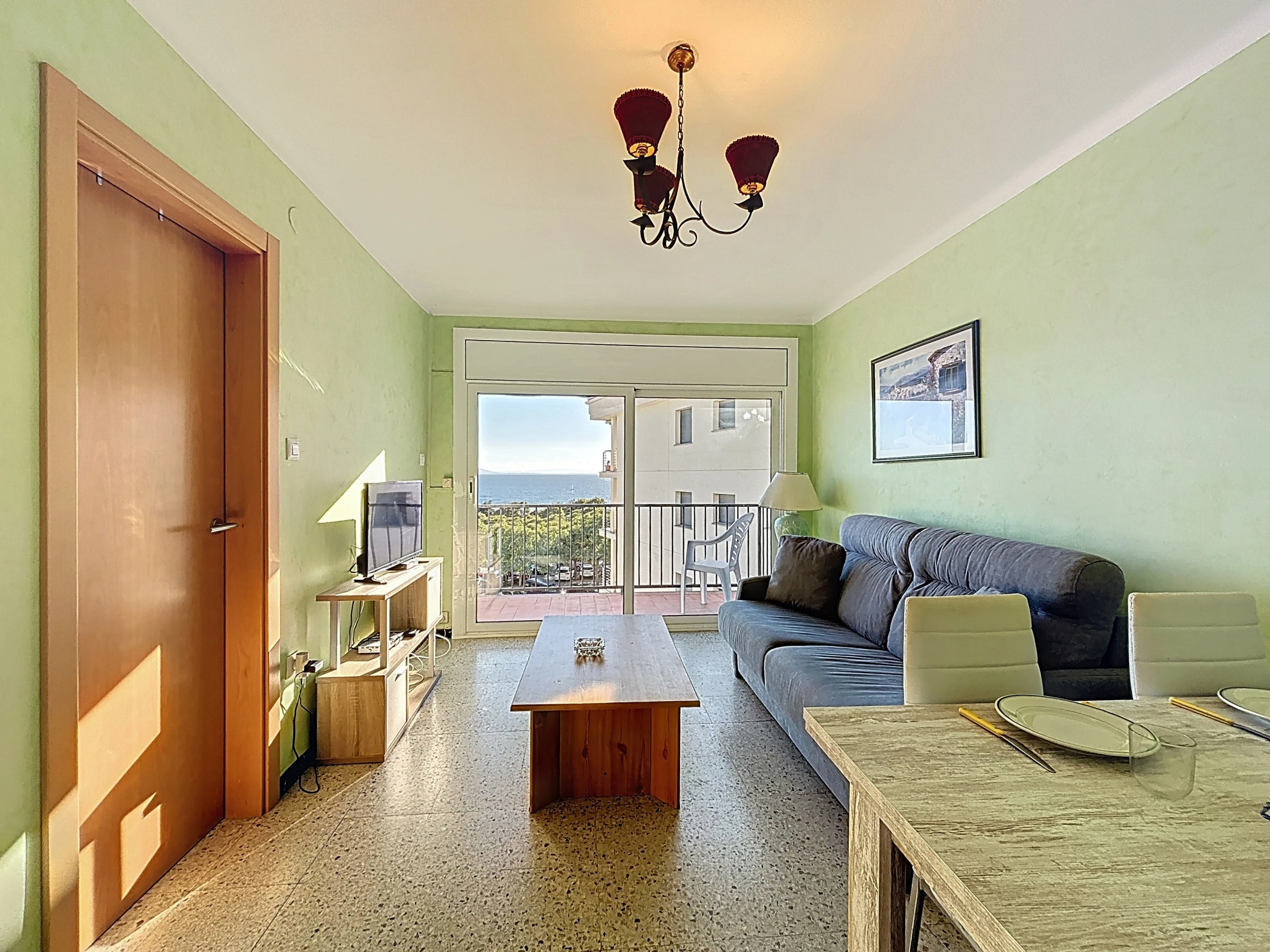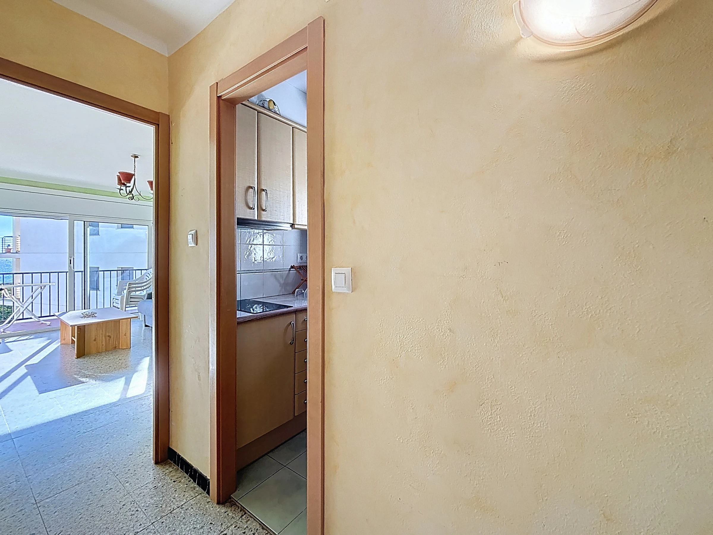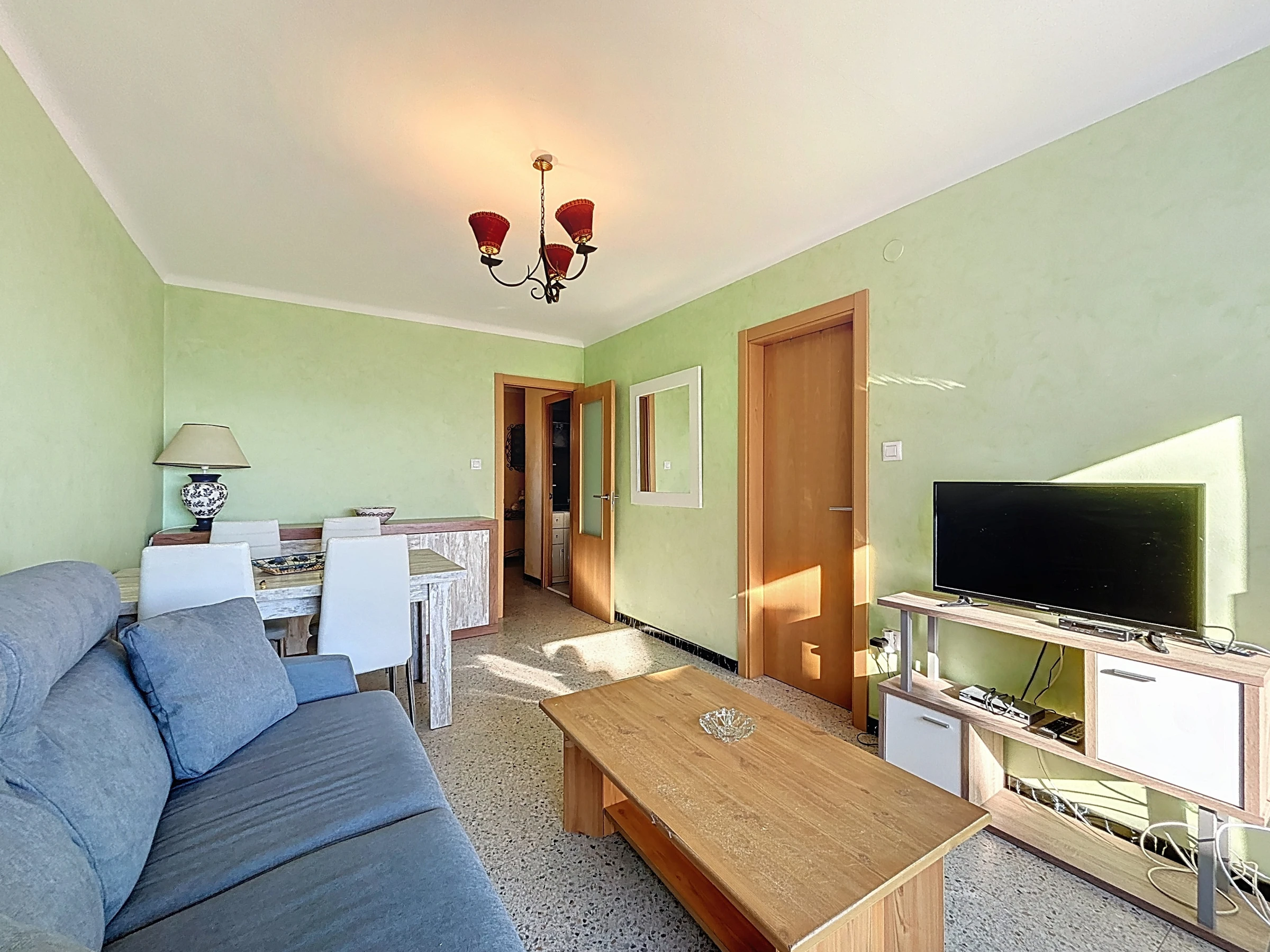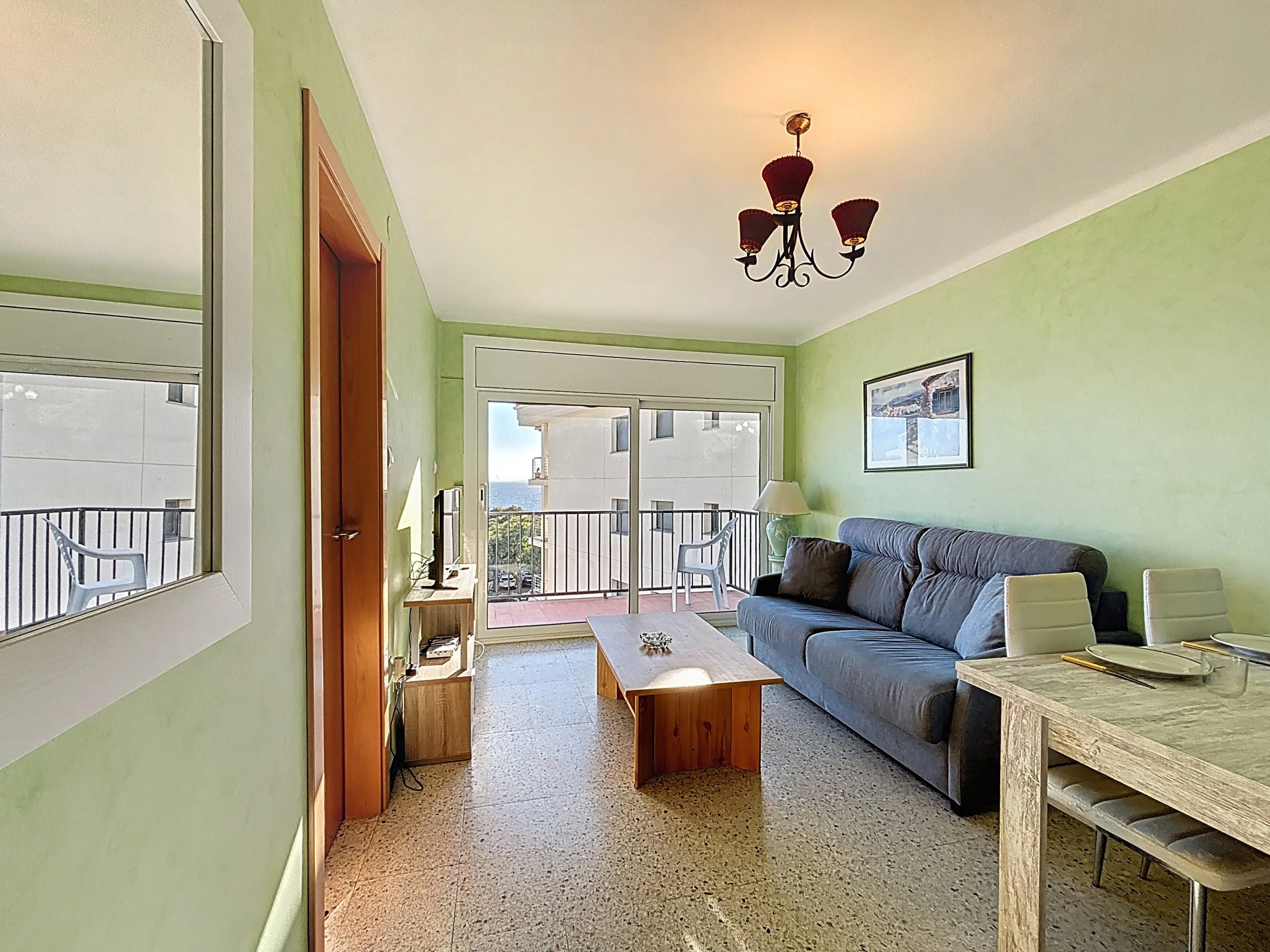 Das Apartment verfügt über eine separate, vollständig ausgestattete Küche: Elektroherd, Kühlschrank, Gefrierschrank, Mikrowelle, Geschirr, Küchenutensilien und Kaffeemaschine. Es besteht aus einem Eingang, Badezimmer mit Dusche und Toilette, einem Schlafzimmer und einem Wohn-Esszimmer mit Zugang zur Terrasse.