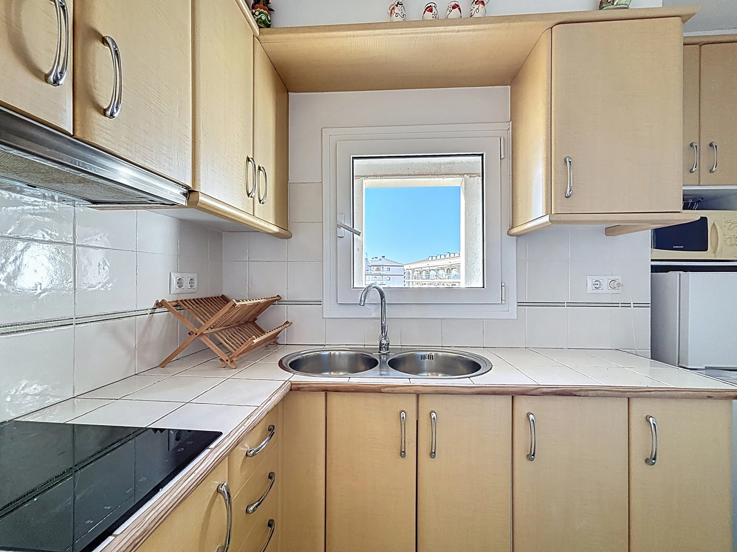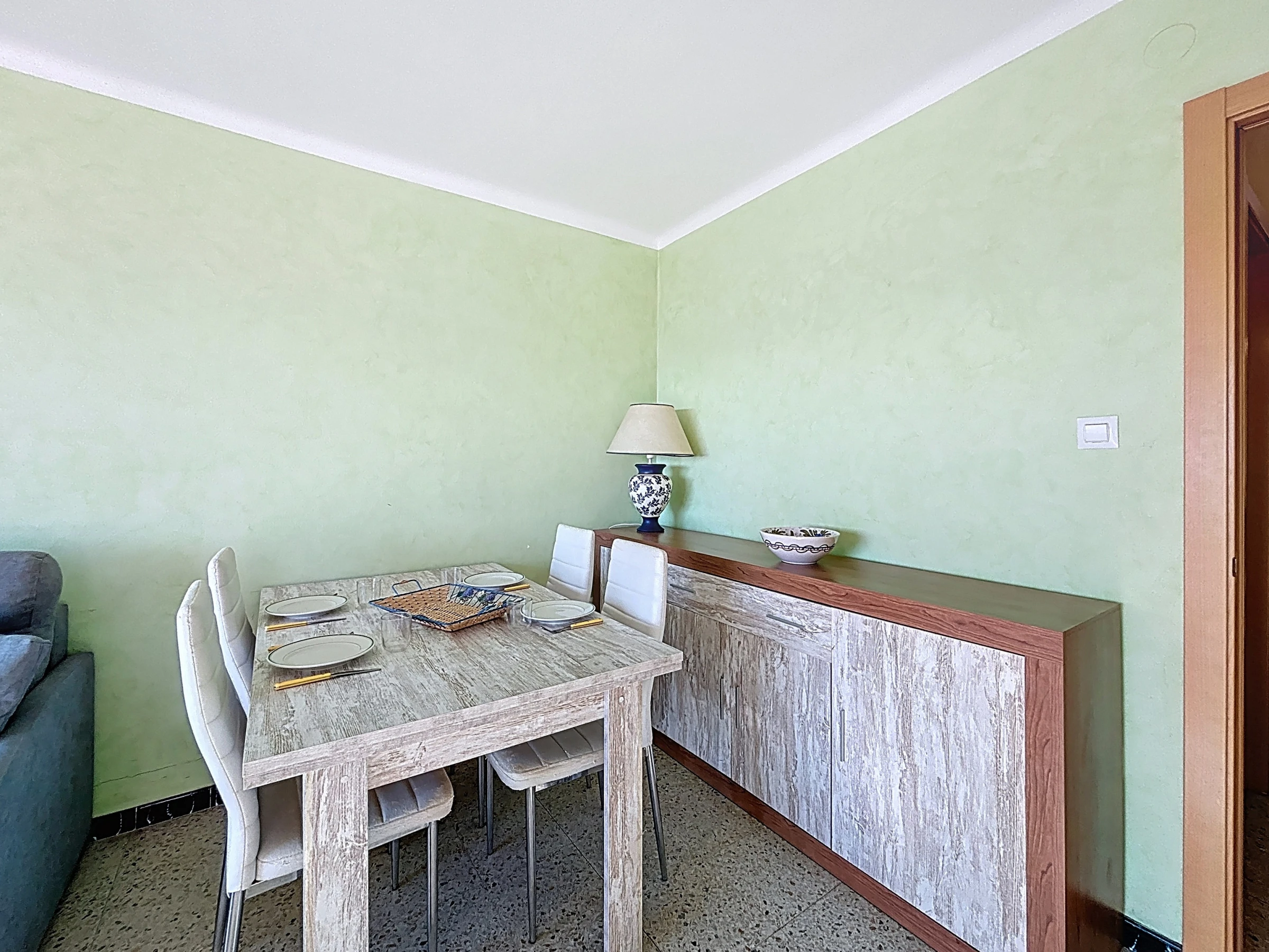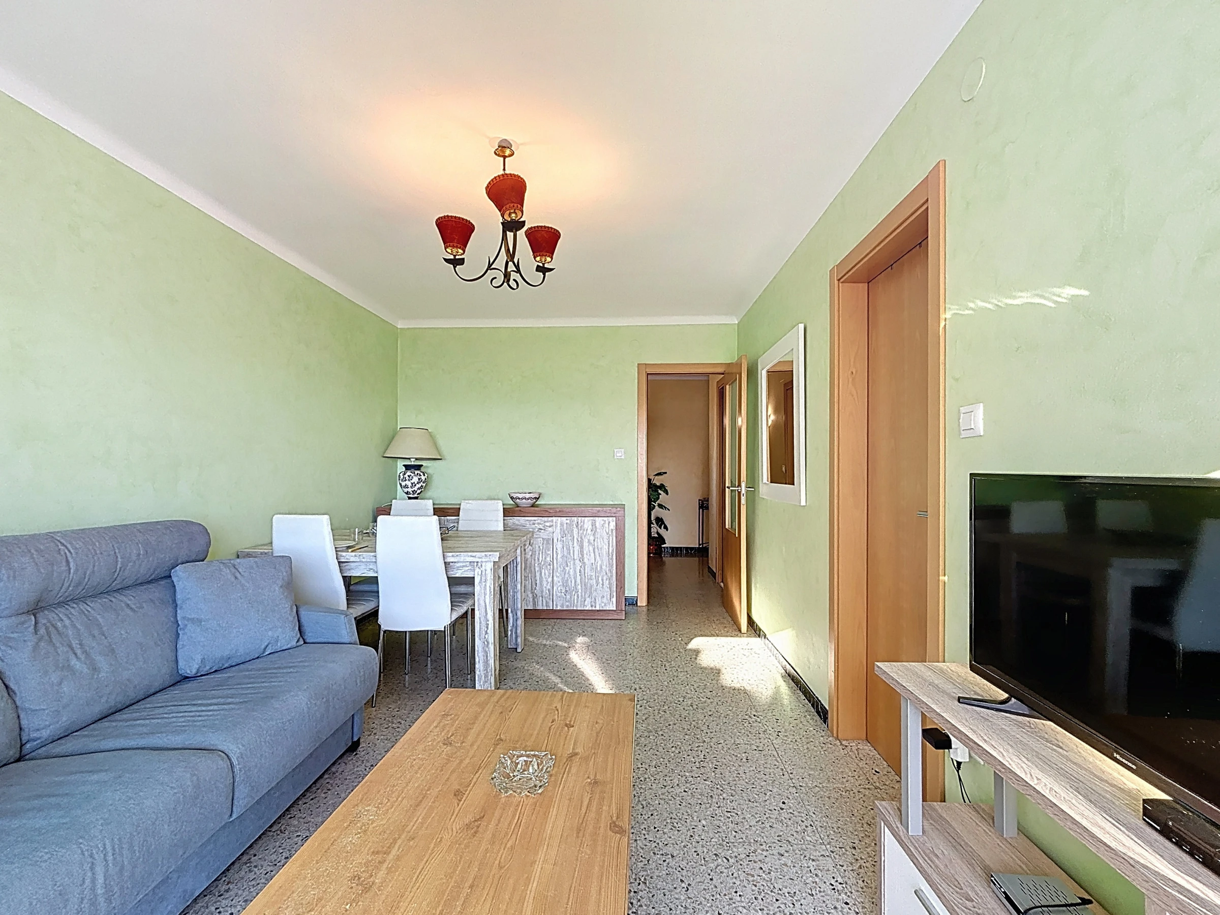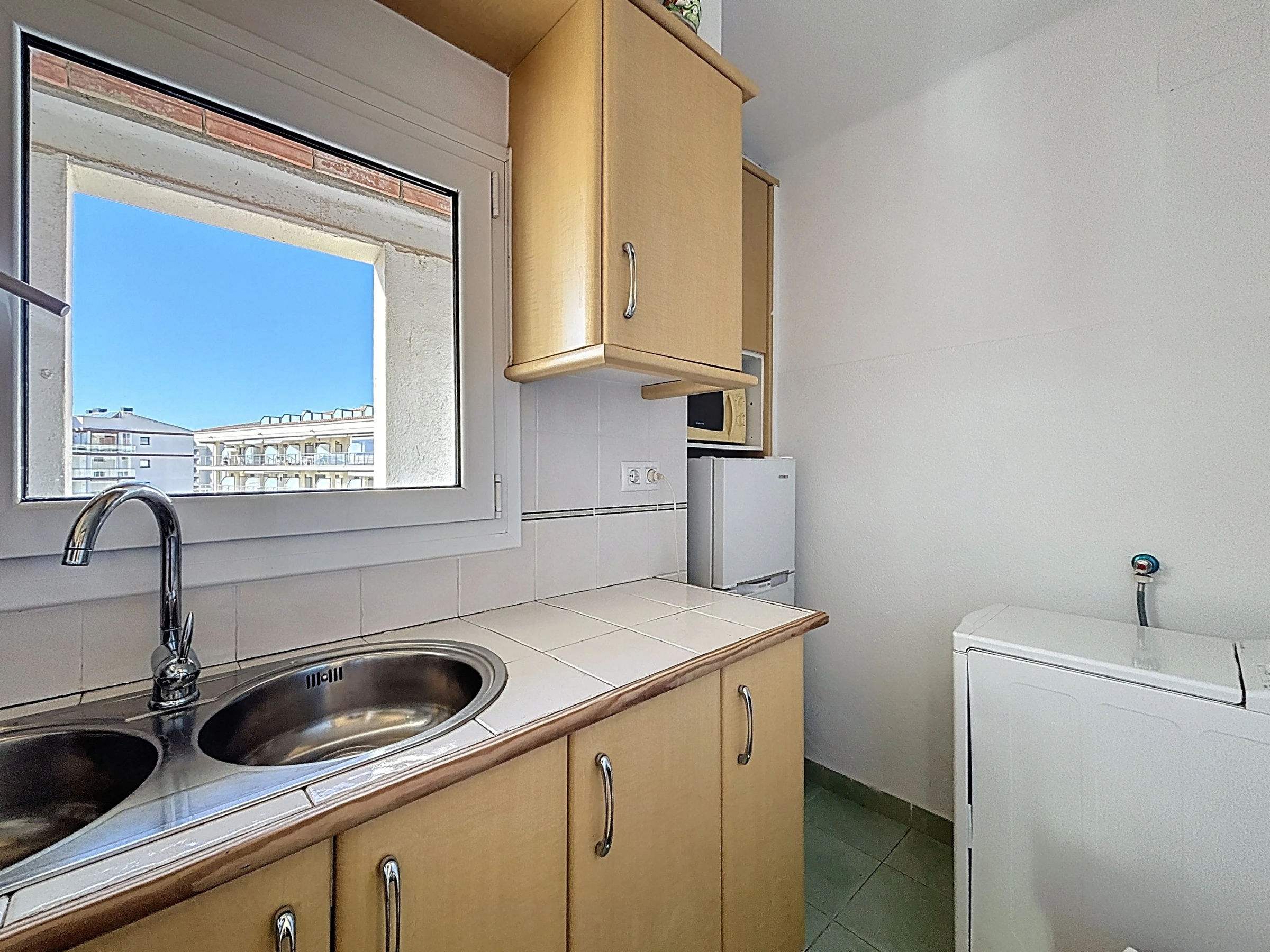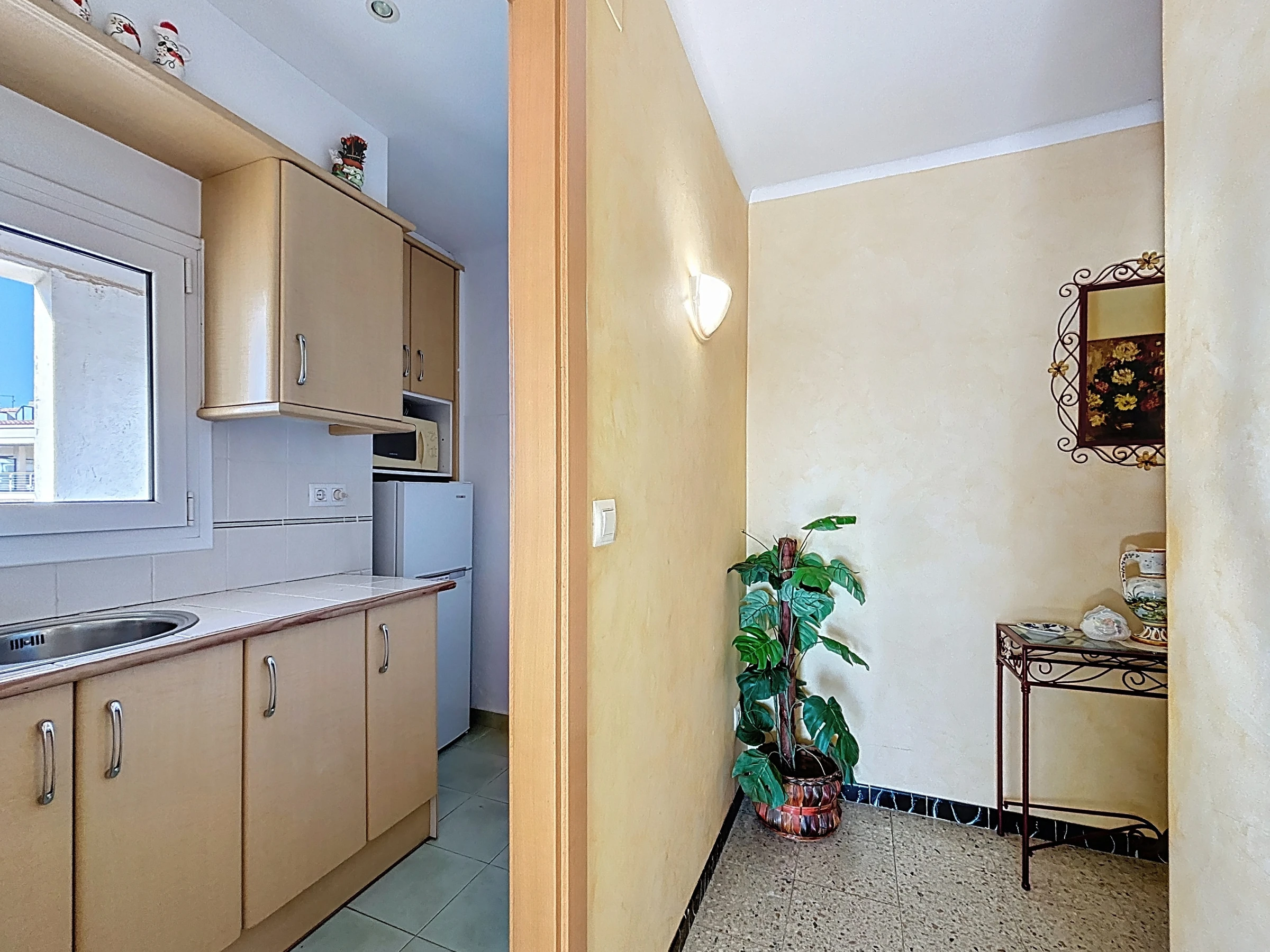 Das Apartment verfügt über eine separate, vollständig ausgestattete Küche: Elektroherd, Kühlschrank, Gefrierschrank, Mikrowelle, Geschirr, Küchenutensilien und Kaffeemaschine. Es besteht aus einem Eingang, Badezimmer mit Dusche und Toilette, einem Schlafzimmer und einem Wohn-Esszimmer mit Zugang zur Terrasse.