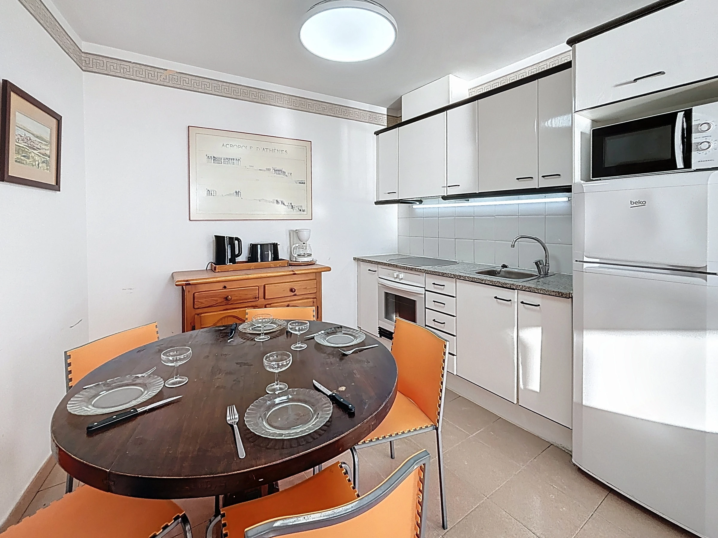 Wunderbares Apartment ideal gelegen im Herzen von Roses, mit atemberaubendem Blick auf die Bucht vom Balkon aus. Nur wenige Schritte vom Strand, Geschäften und Restaurants entfernt, genießt es eine außergewöhnliche Lage. Im ersten Stock mit Aufzug gelegen, kann es bis zu 6 Personen beherbergen und besteht aus einem Schlafzimmer mit Doppelbett, einem Schlafzimmer mit Etagenbett sowie einem großen, hellen Wohnzimmer mit Schlafsofa. Die zum Wohnzimmer offene Küche ist vollständig ausgestattet mit Kühl-Gefrierkombination, Kochplatte, Mikrowelle, Backofen, Kaffeemaschine, Toaster, Geschirr und notwendigem Besteck.