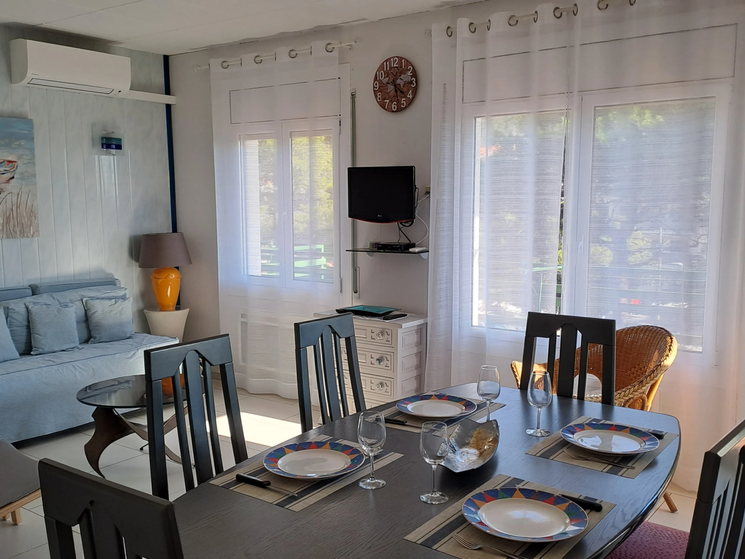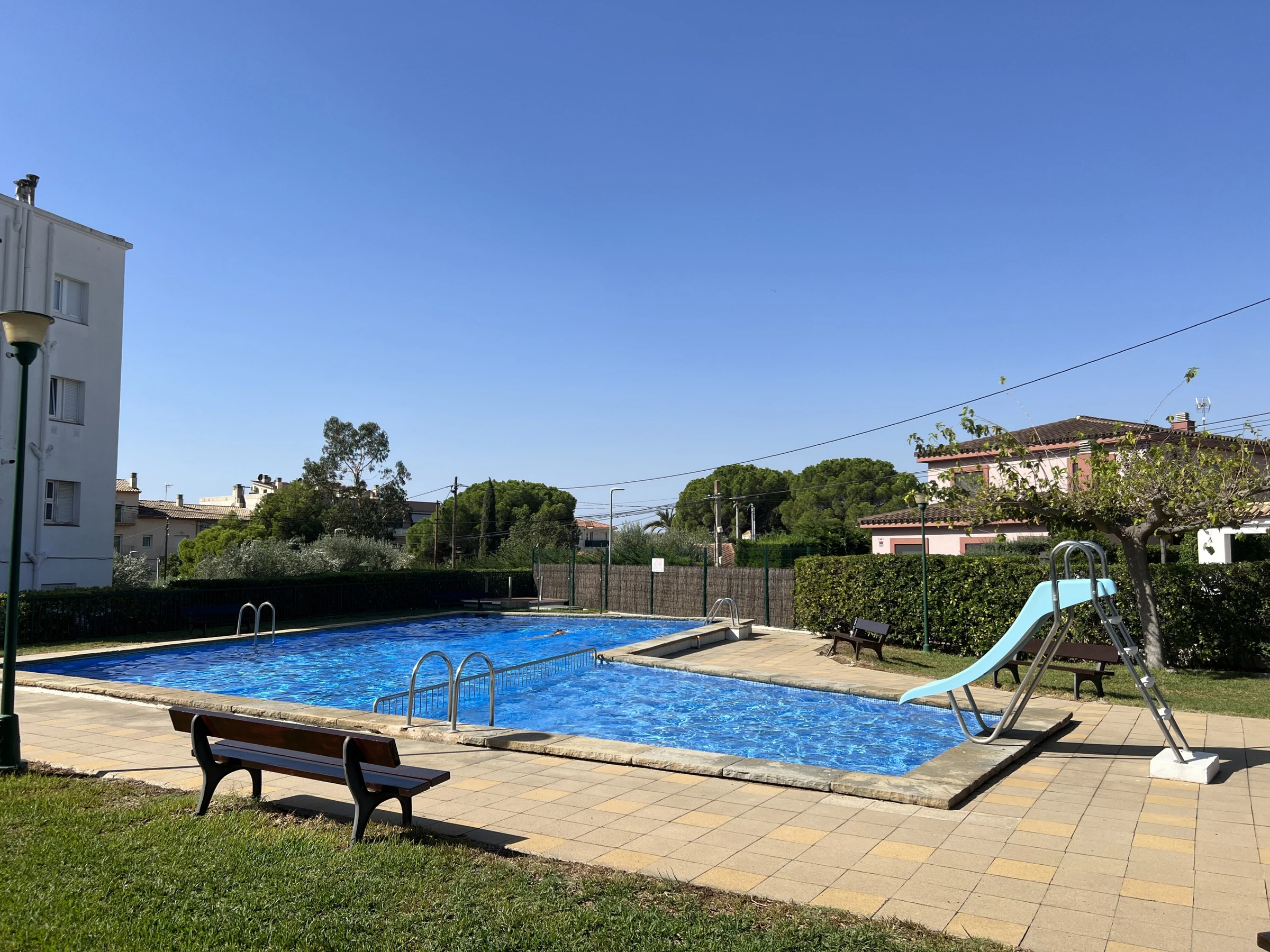 Superber, heller 41 m² Apartment, gelegen in Rosas - Viertel Mas Oliva, mit 2 Schlafzimmern und einem großen Balkon, ideal zum Sonnenbaden. Sie werden die Klimaanlage im Esszimmer sowie das französische und spanische Fernsehen schätzen.
