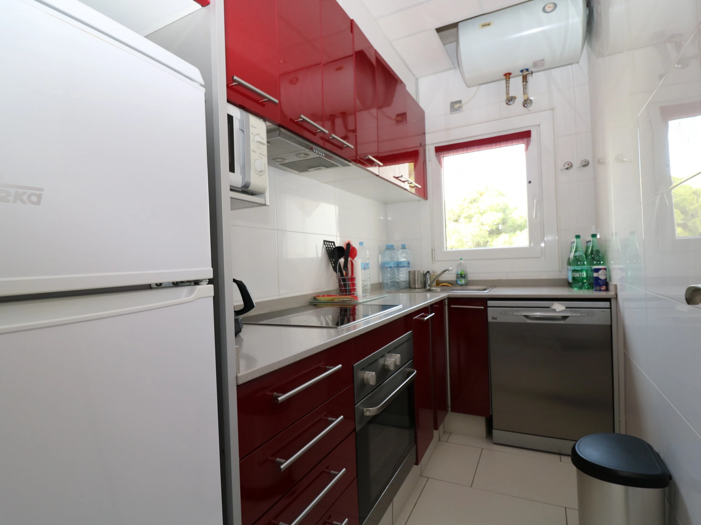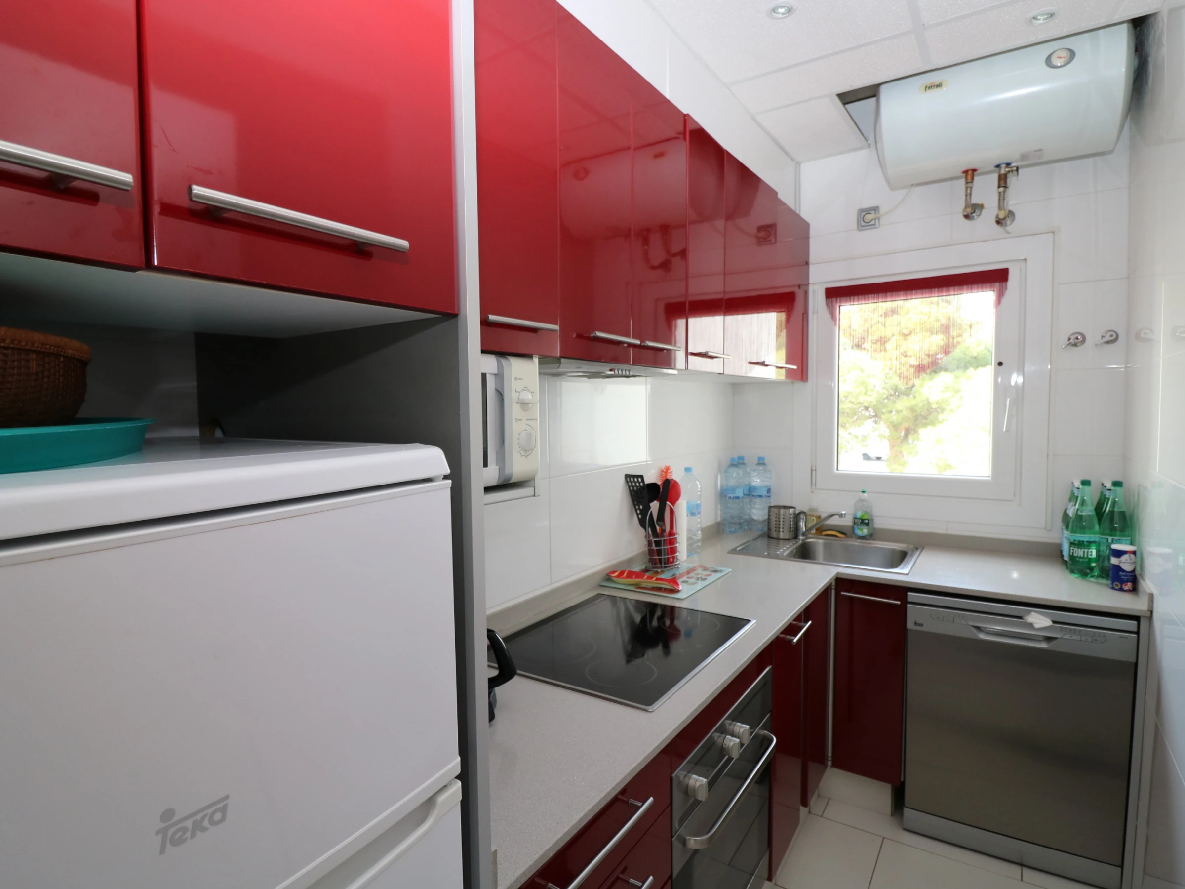Die separate, voll ausgestattete Küche umfasst: Glaskeramikkochfeld, Kühlschrank, Mikrowelle, Gefrierschrank, Geschirr, Küchenutensilien, Kaffeemaschine, Ofen und Toaster.