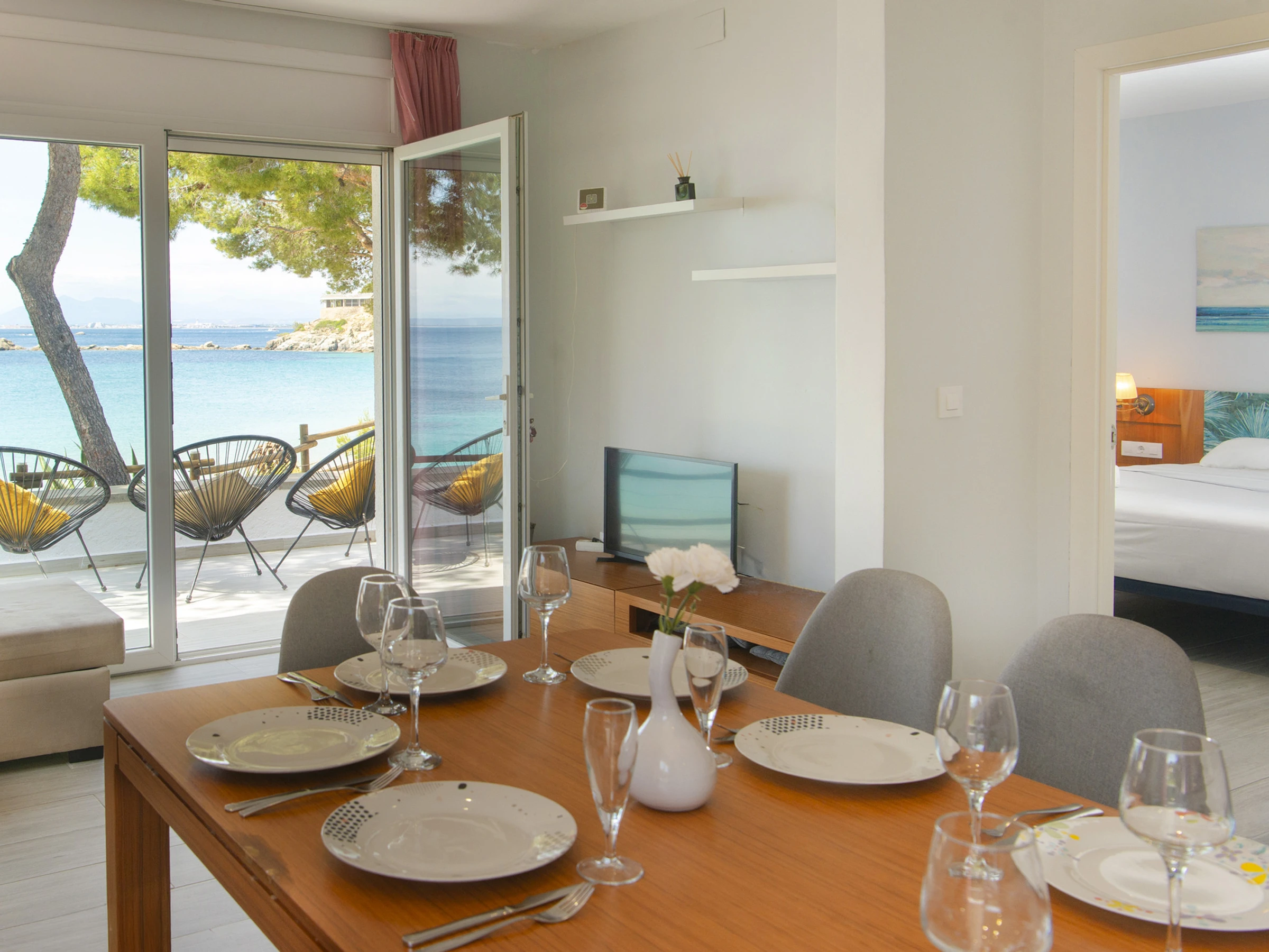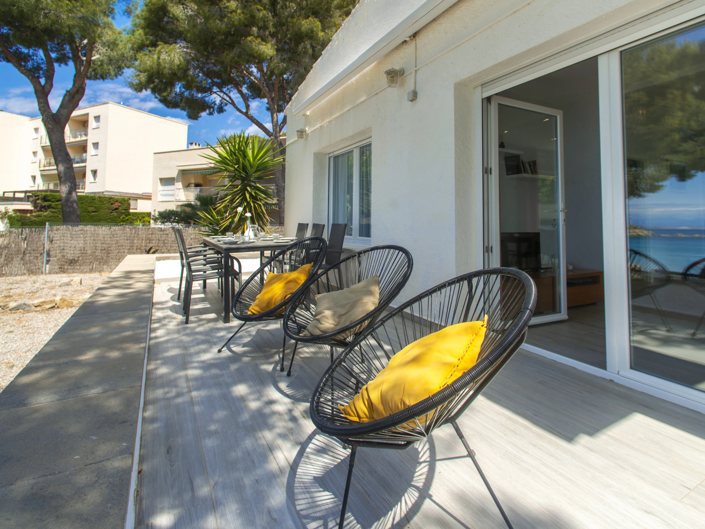 Von der Terrasse aus hat man direkten Zugang zum Strand.