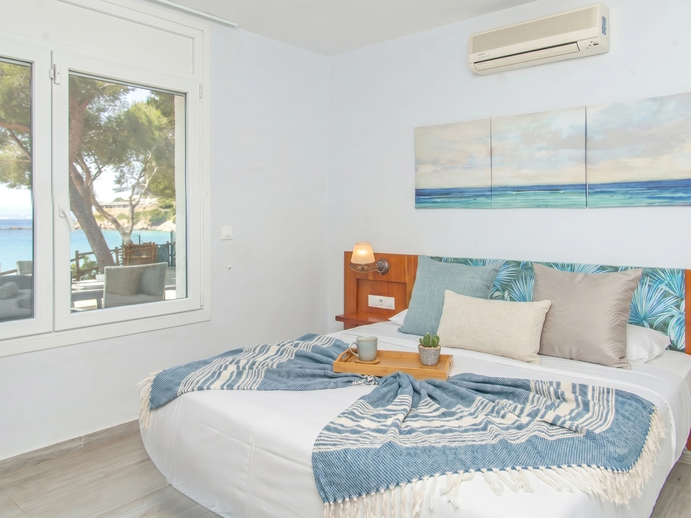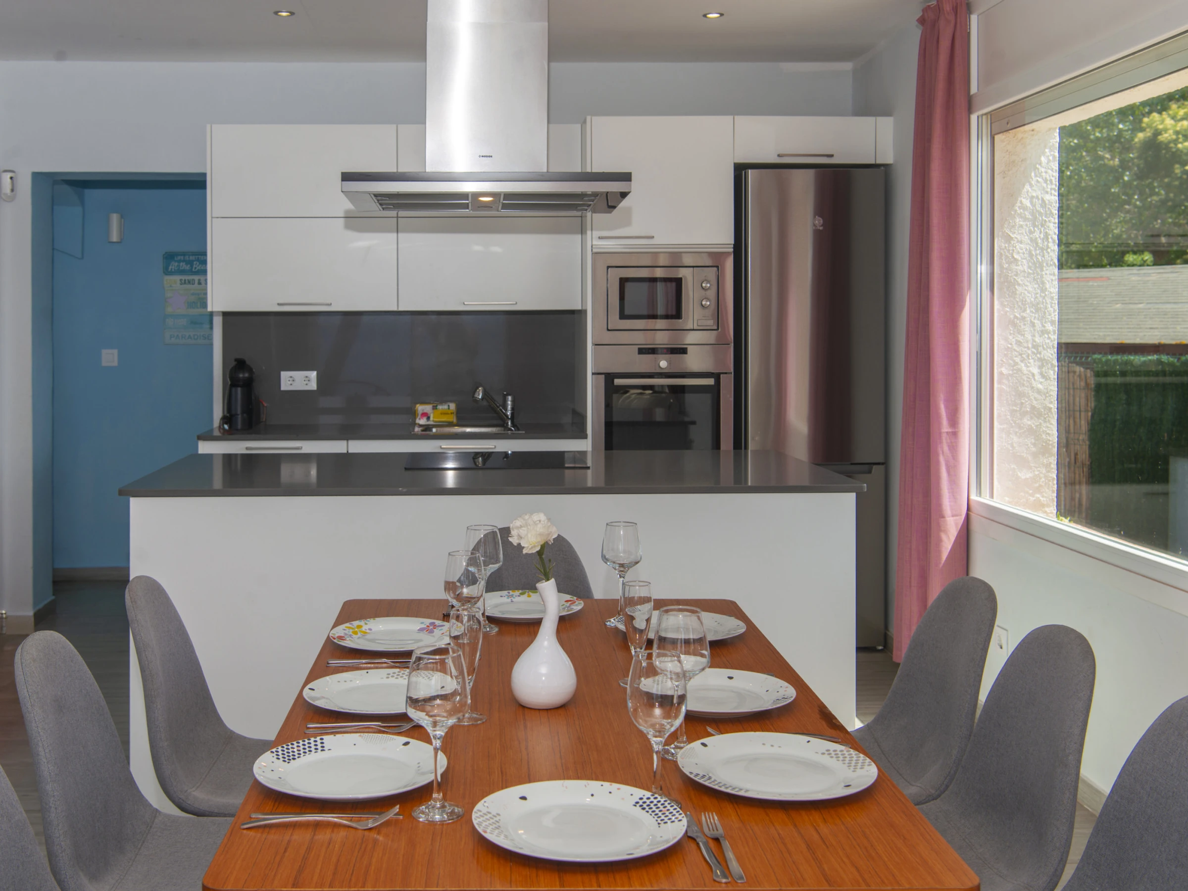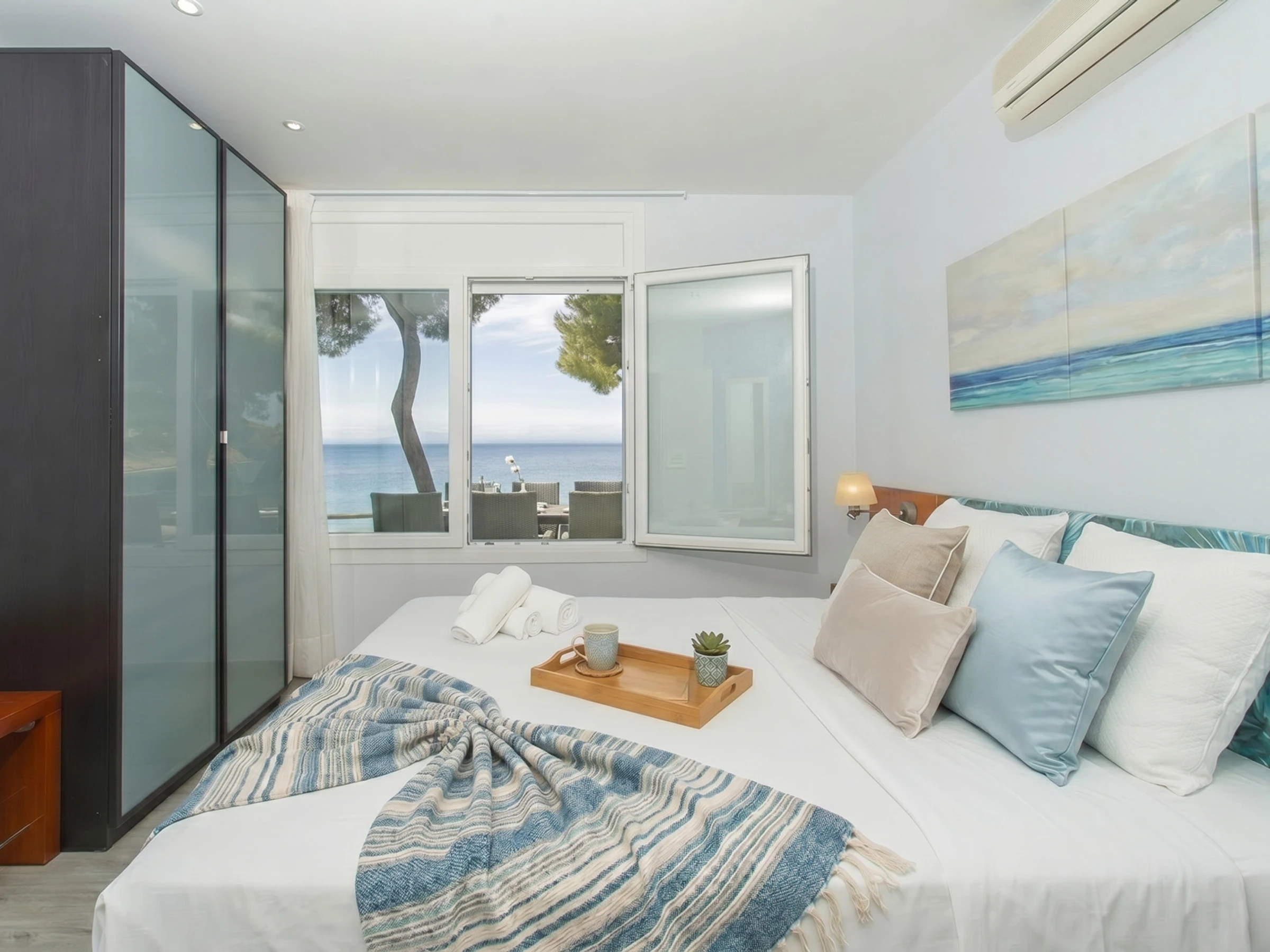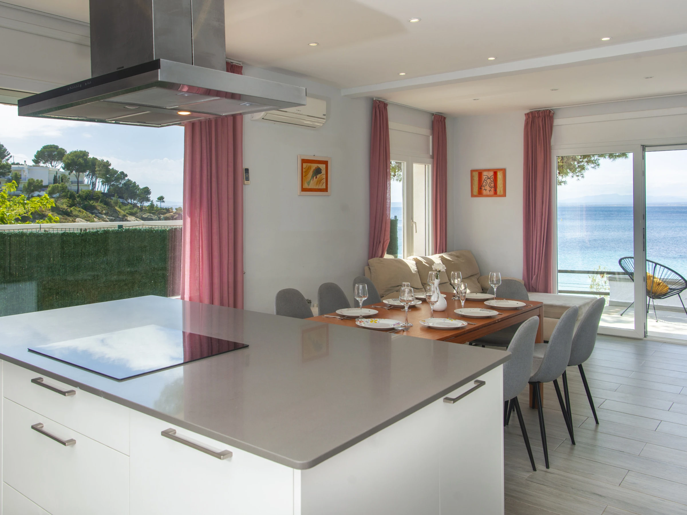 WiFi, Klimaanlage, Waschmaschine, Geschirrspüler, ausgestattete Küche, Außengrill, Bettwäsche und Handtücher.