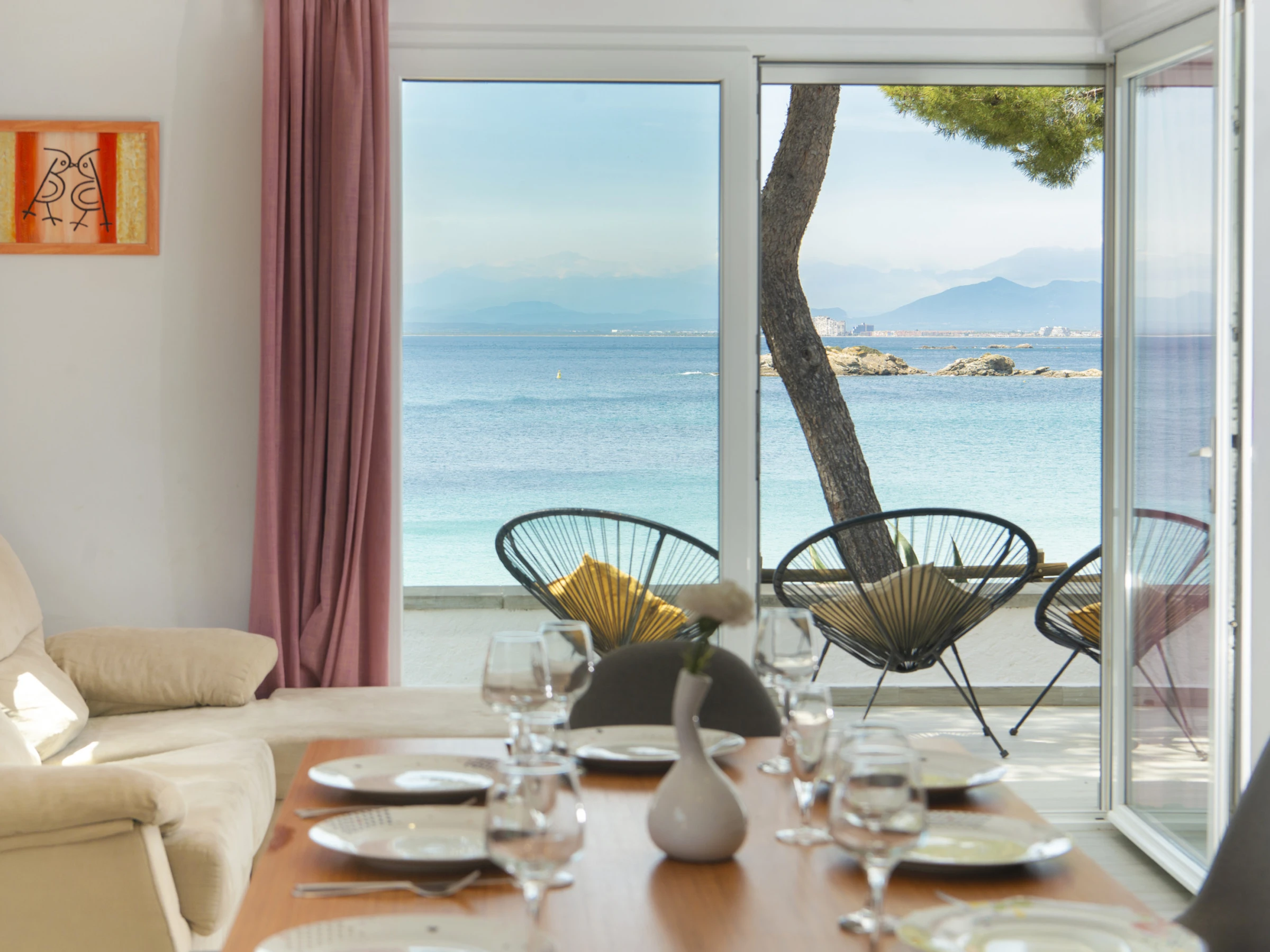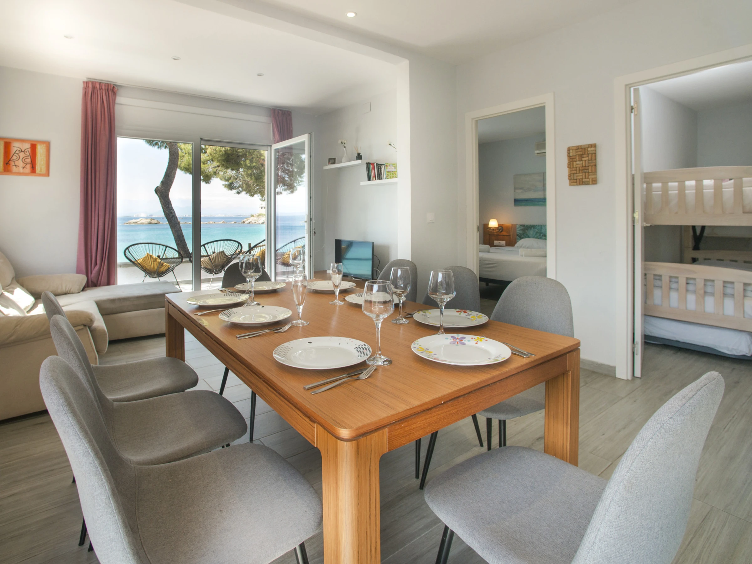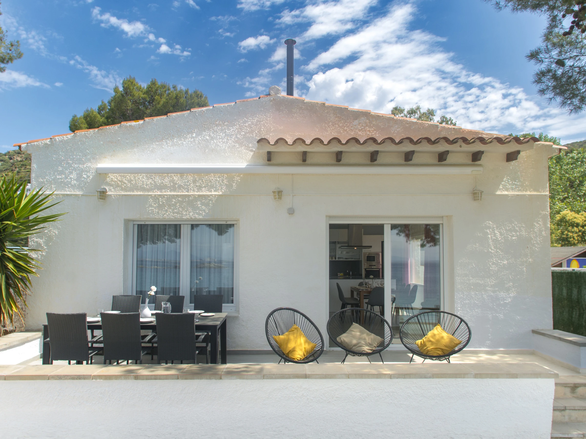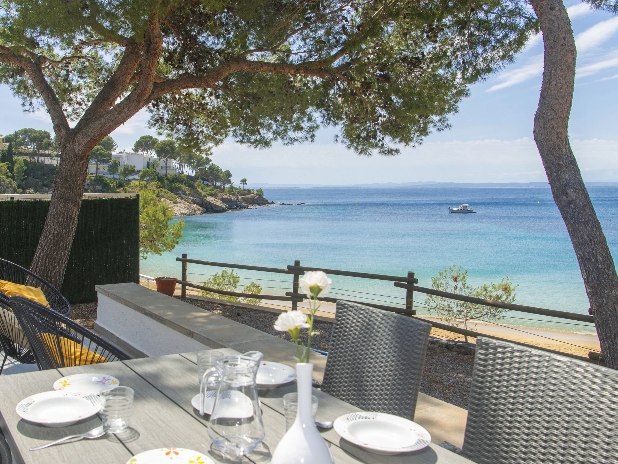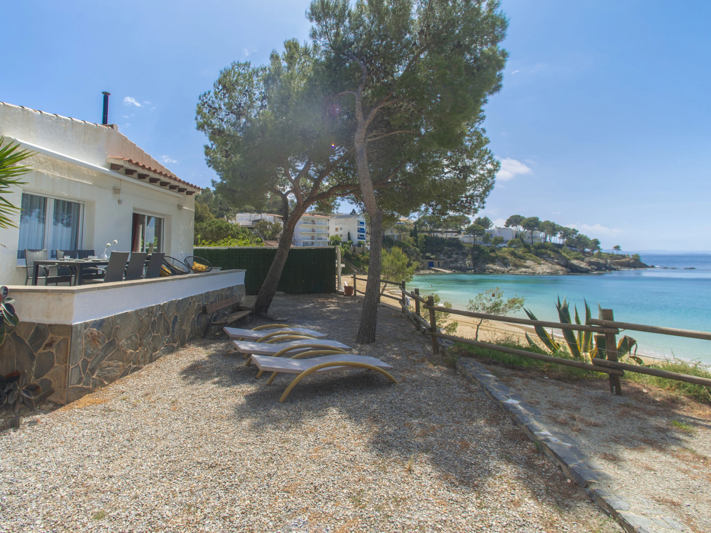 Villa in Roses, in der L'Almadrava-Gegend, für bis zu 7 Gäste, mit Terrasse und direktem Strandzugang. Sie verfügt über 3 Schlafzimmer, 2 Badezimmer, Klimaanlage, WiFi, Waschmaschine, Geschirrspüler, Außengrill und privaten Parkplatz für 2 Autos auf dem Grundstück.