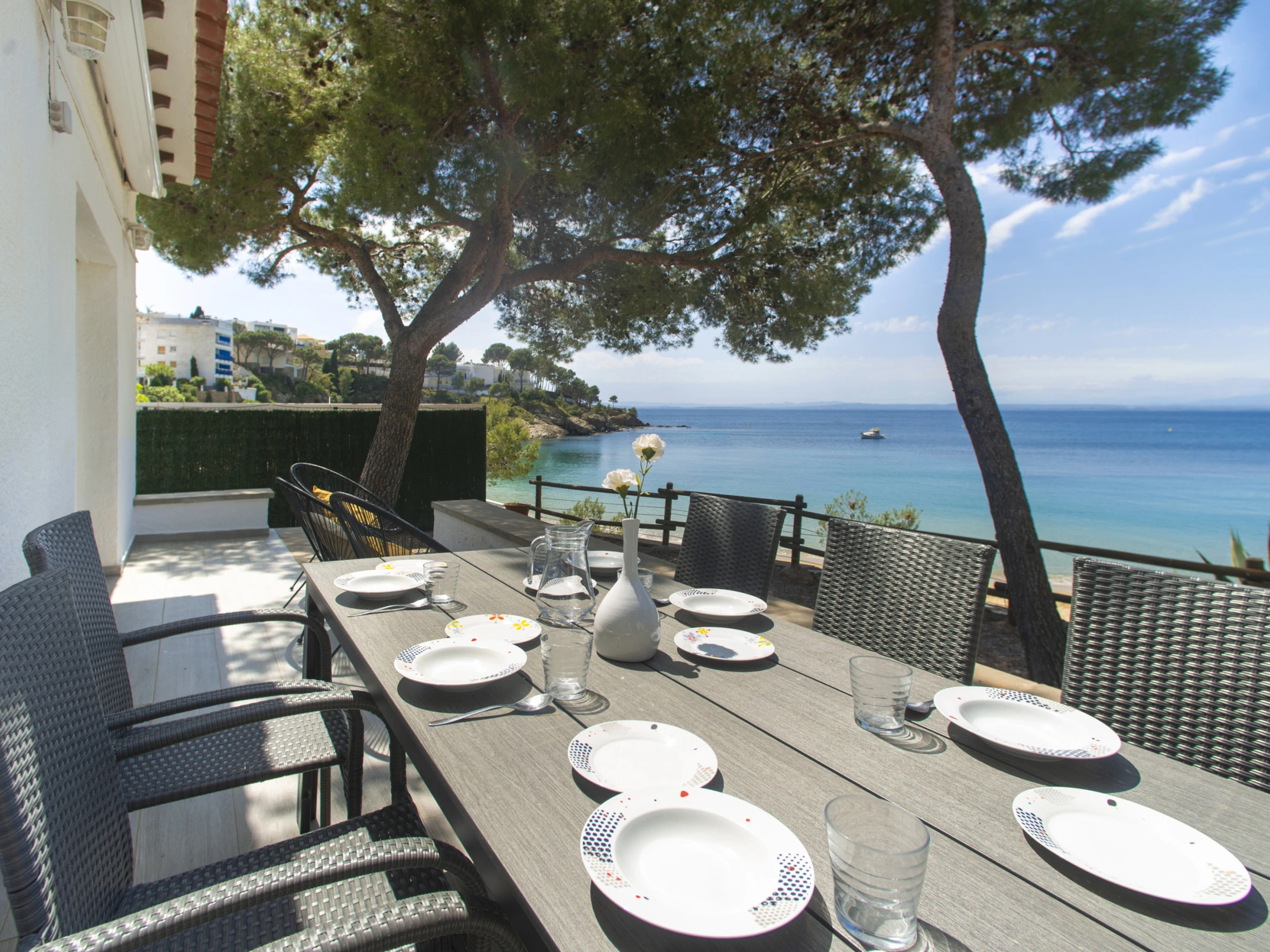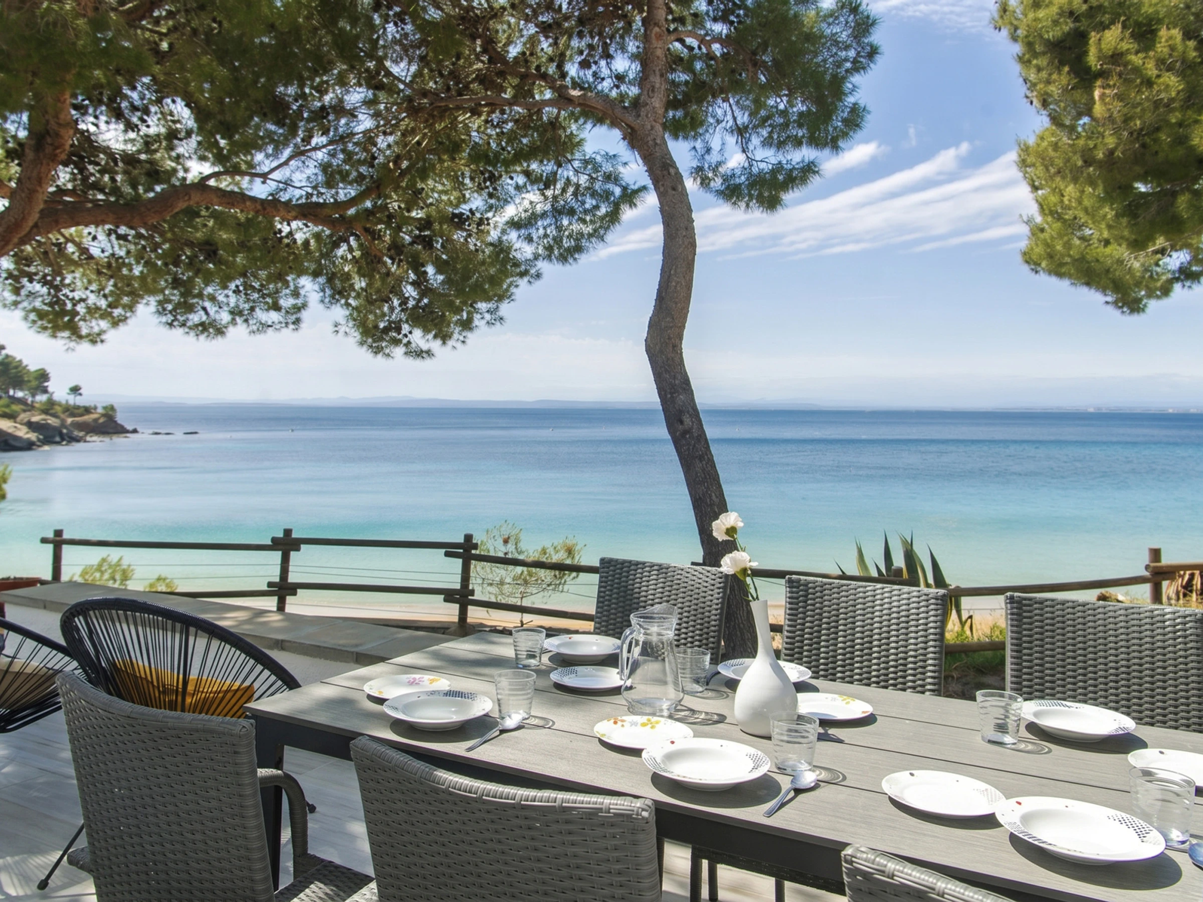 Außenbereich: Terrasse mit direktem Strandzugang und direktem Meerblick.
