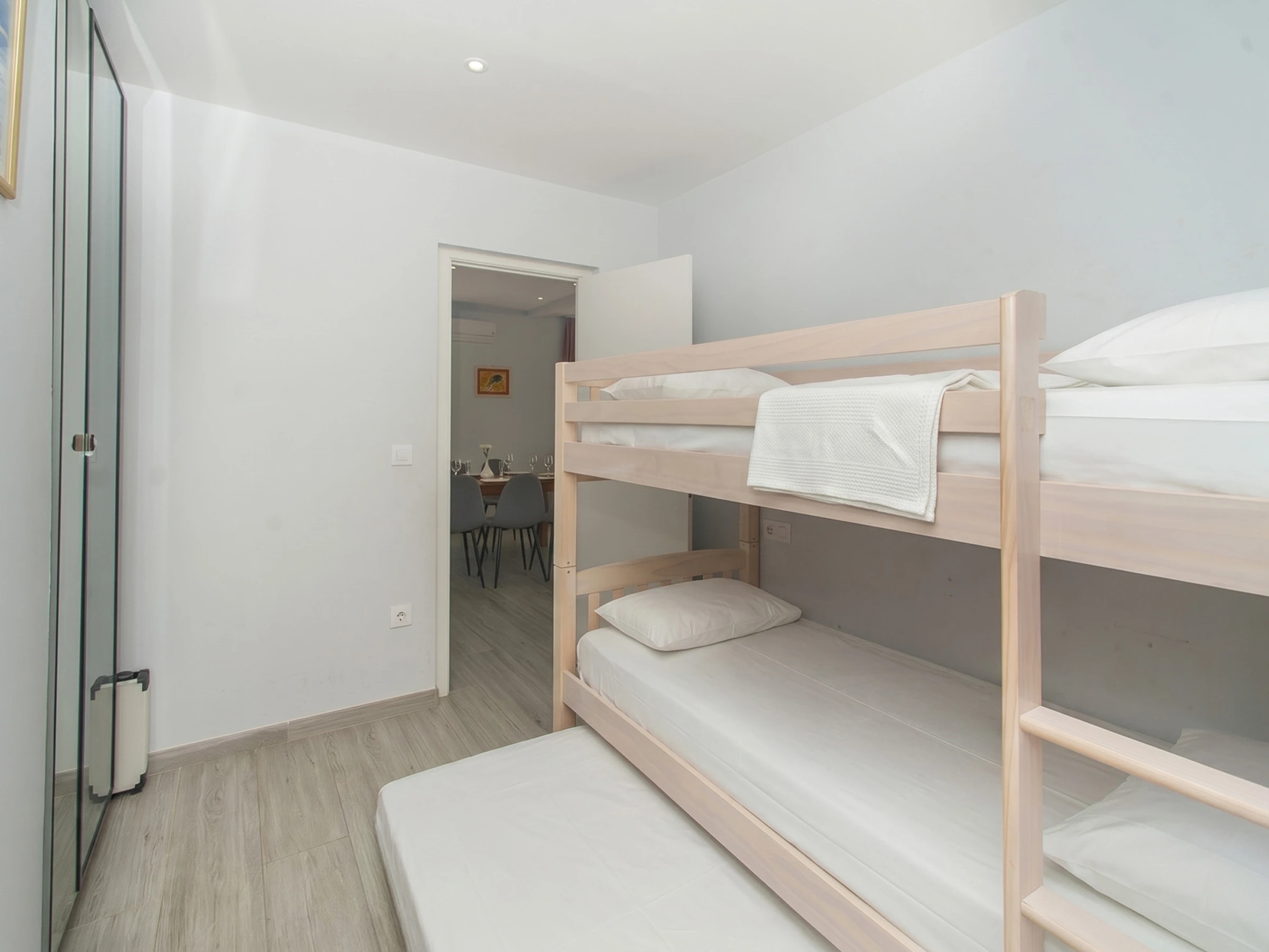 Schlafzimmer 3: 1 Etagenbett und 1 Kinderbett.