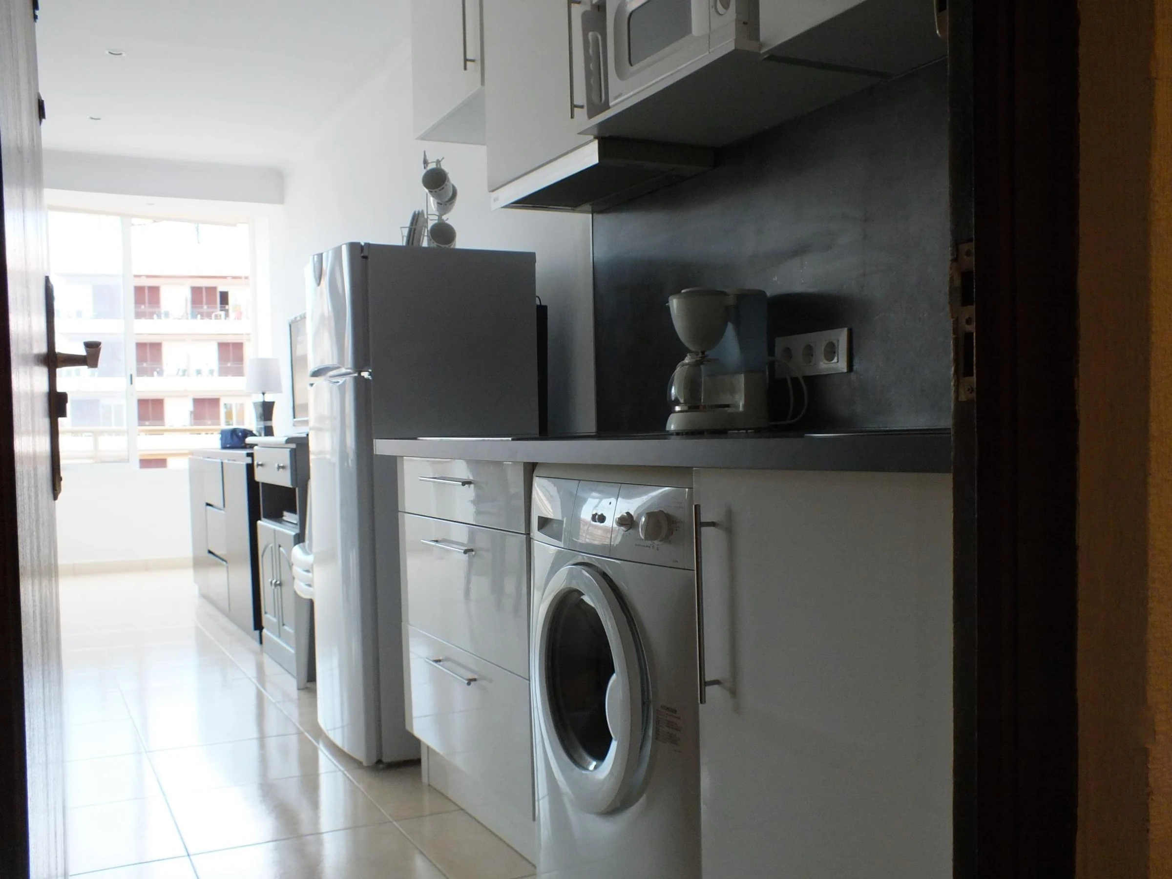 Residence Rosas Holiday Center, Apartment 3413, in Roses Santa-Margarita av de la plage Nr. 17-stöckige Residenz am Strand mit Aussicht und Zugang zum Meer. Apartment für 4 Personen im 4. Stock mit Aufzügen. Bestehend aus: ausgestatteter Küche (Kaffeemaschine, Kühlschrank, Herd, Herd, Mikrowelle, Waschmaschine), Badezimmer mit Dusche und WC, Wohnzimmer mit Schlafsofa für 2 Personen, 1 Schlafzimmer mit Doppelbett, TV mit französischen und spanischen Kanälen, Swimmingpool (vom 1.6. bis 01.10.) und Garten.