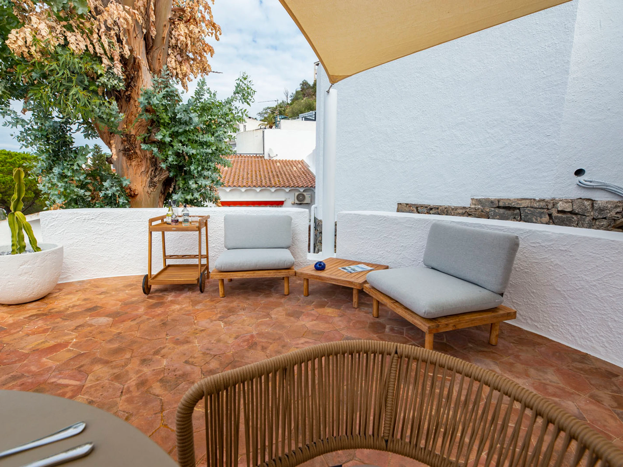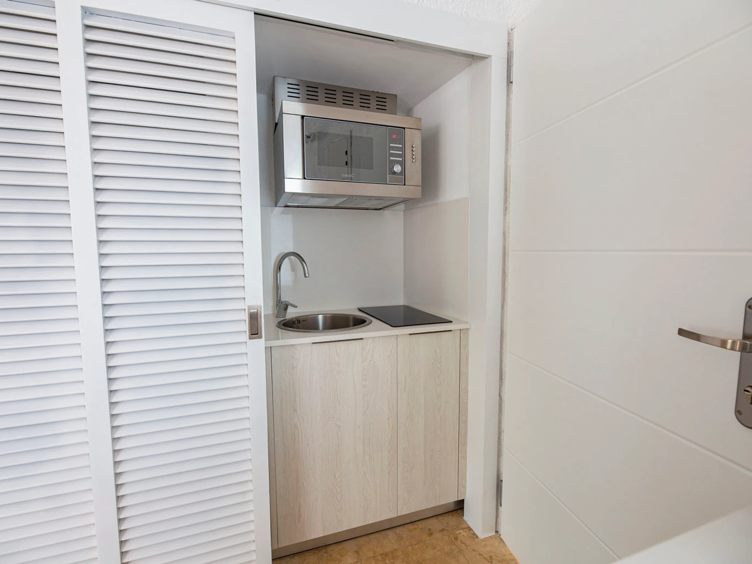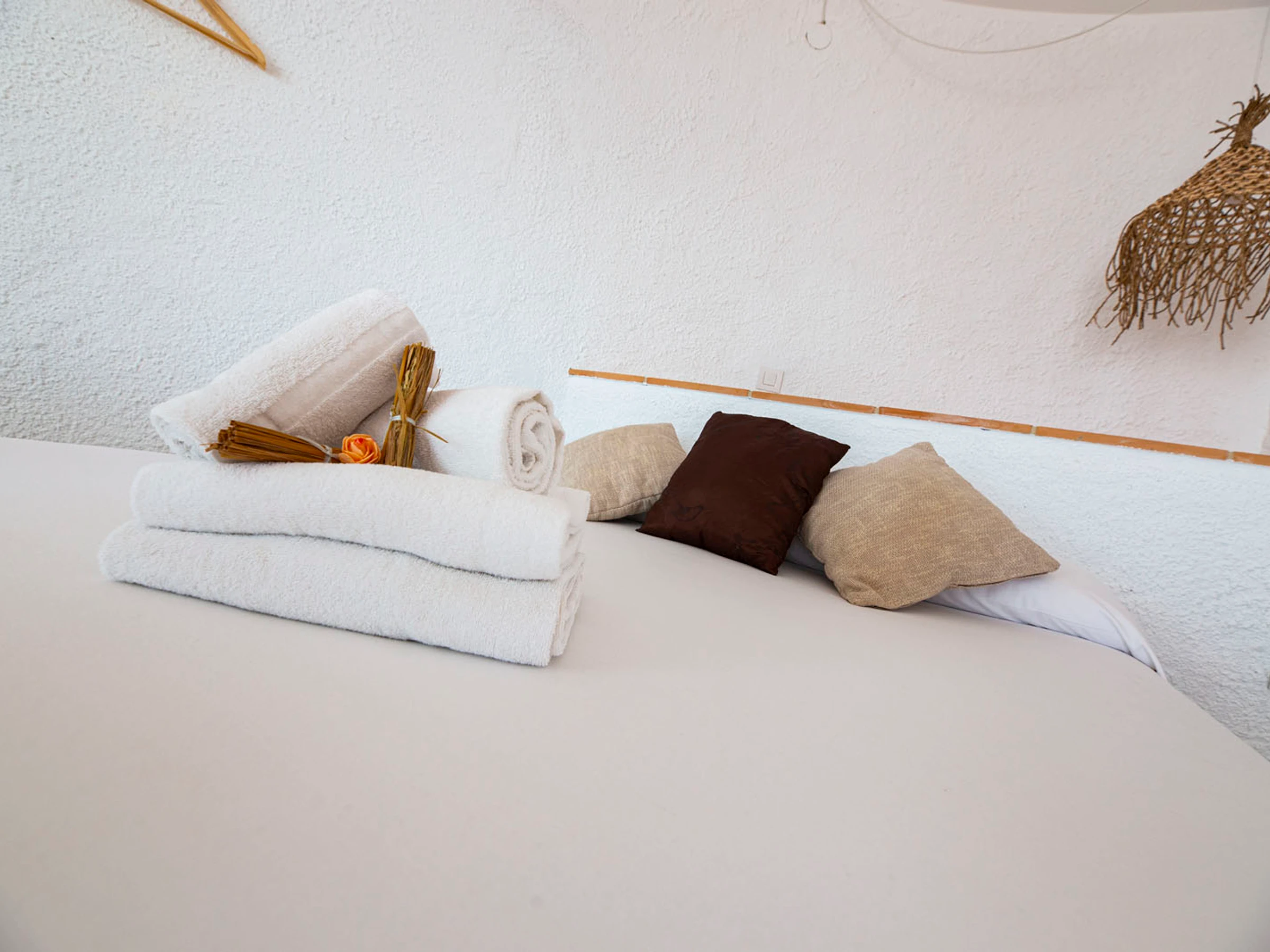 Exklusives Studio für zwei Personen, ideal für Paare oder Reisende, die ein einzigartiges und stilvolles Erlebnis in Roses suchen. Dieser Raum ist offen und modern gestaltet. Von der Terrasse aus genießen Sie einen unvergleichlichen Blick über die Bucht von Roses, wo die Sonnenuntergänge für einen wundervollen Abend sorgen.