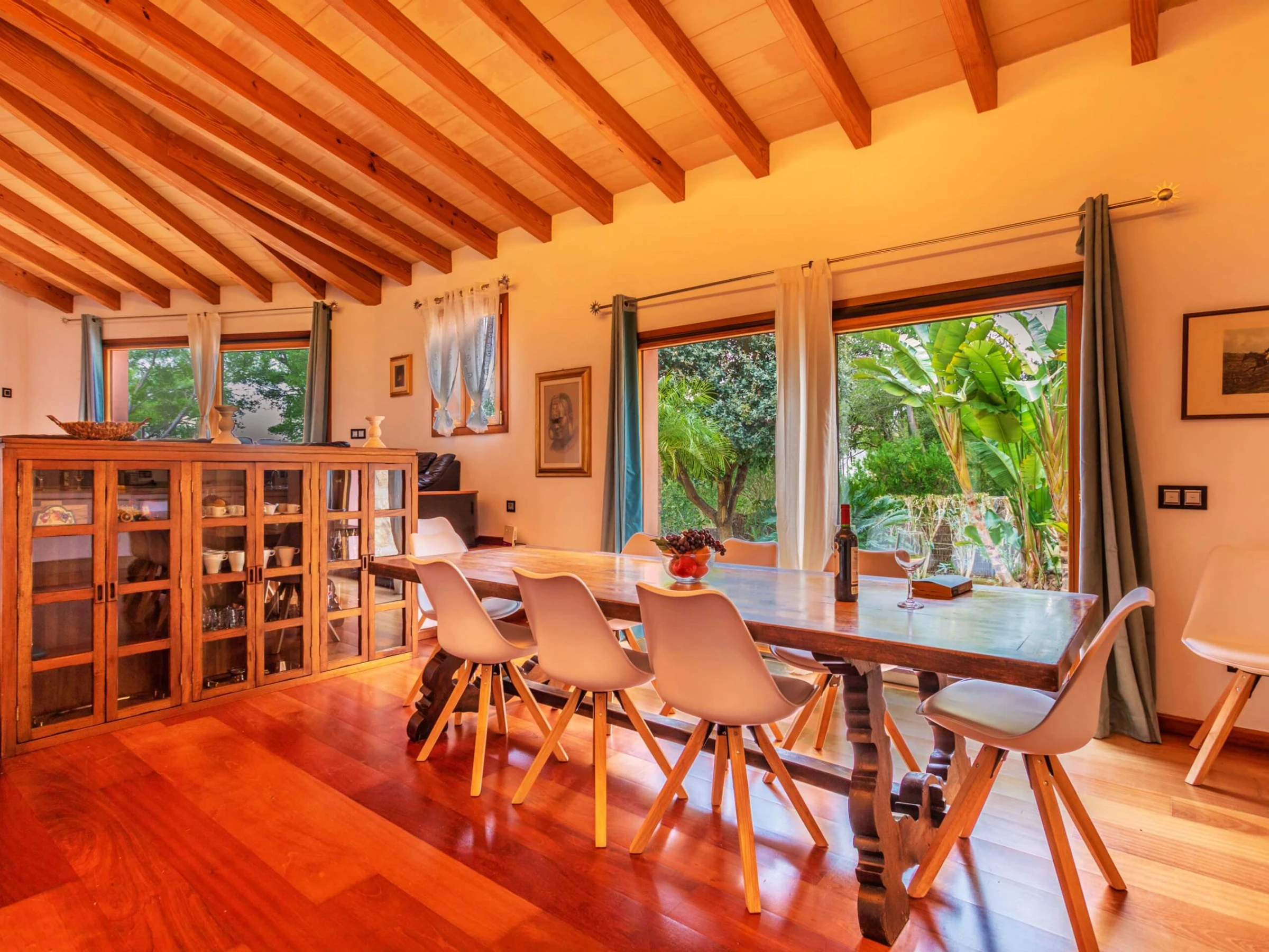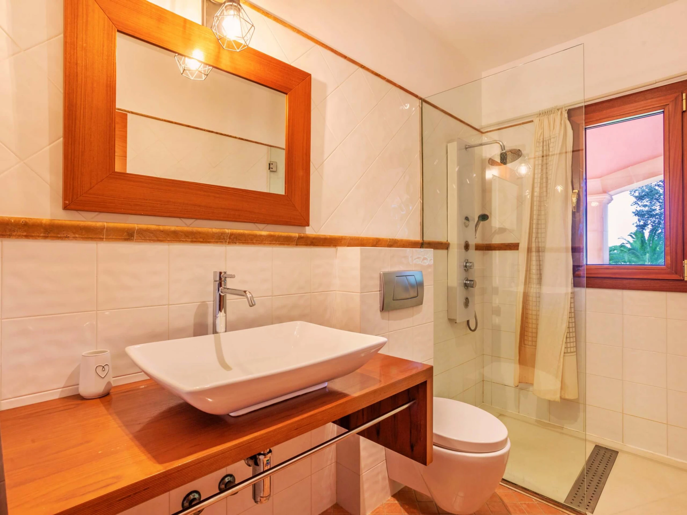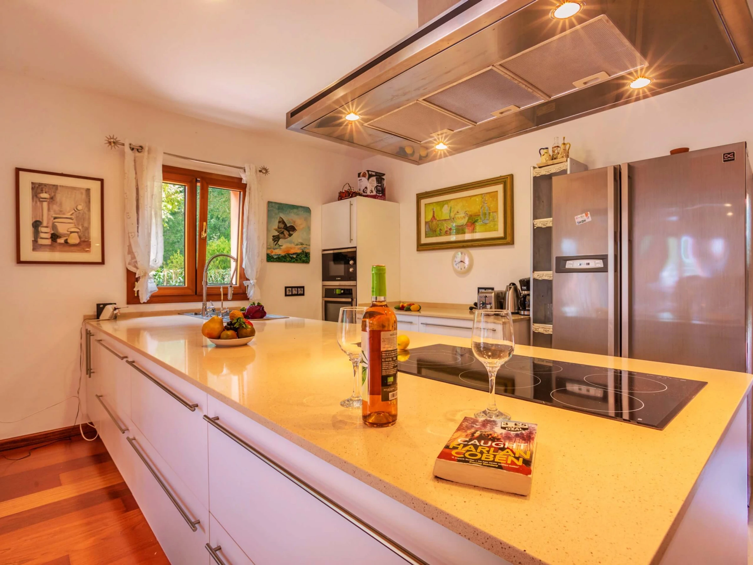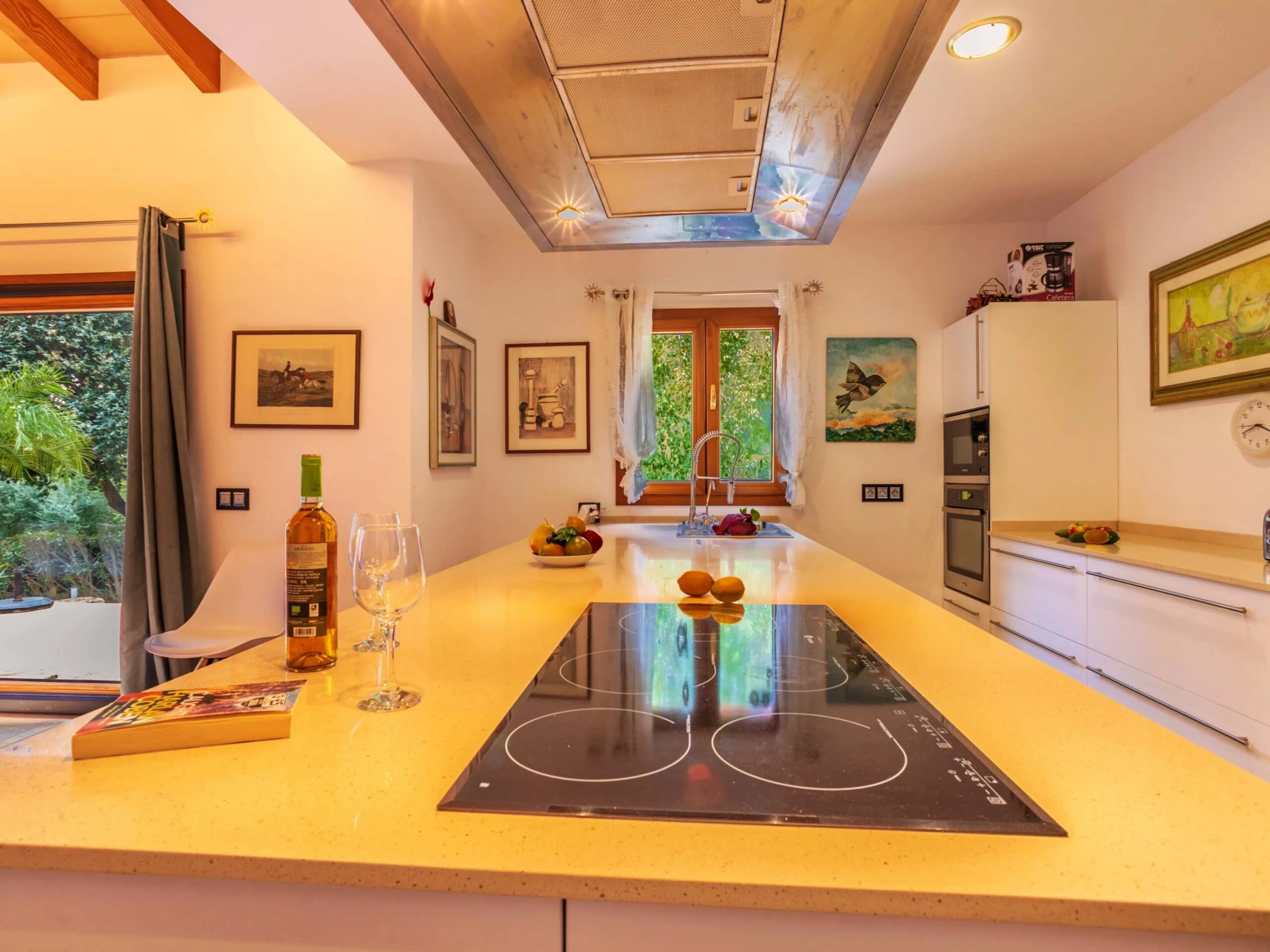 Das Innere der Villa ist in zwei Zonen unterteilt, und ihr Design wurde darauf ausgelegt, sowohl Komfort als auch Stil zu bieten. Beim Betreten findet man ein geräumiges Wohn-Esszimmer, das mit einer großen Terrasse verbunden ist. Daneben befindet sich eine moderne, voll ausgestattete Küche. In diesem Stockwerk gibt es auch ein Doppelzimmer mit Badezimmer en suite, das ein Jacuzzi enthält, sowie ein Zimmer mit zwei Einzelbetten. Über eine Treppe gelangt man zu drei weiteren Doppelzimmern: eines mit Badezimmer en suite und ein weiteres Badezimmer, das von den anderen beiden Zimmern gemeinsam genutzt wird.