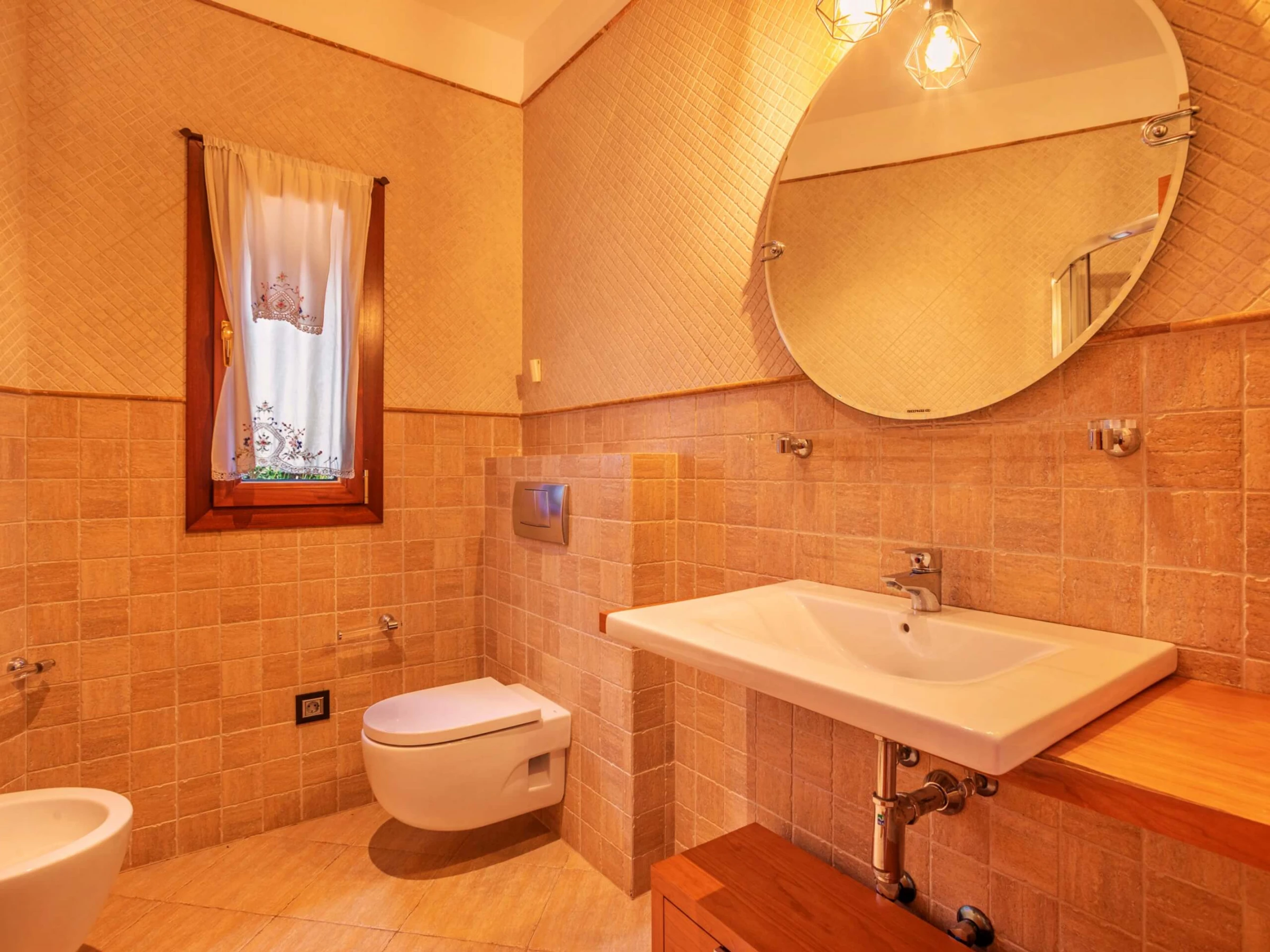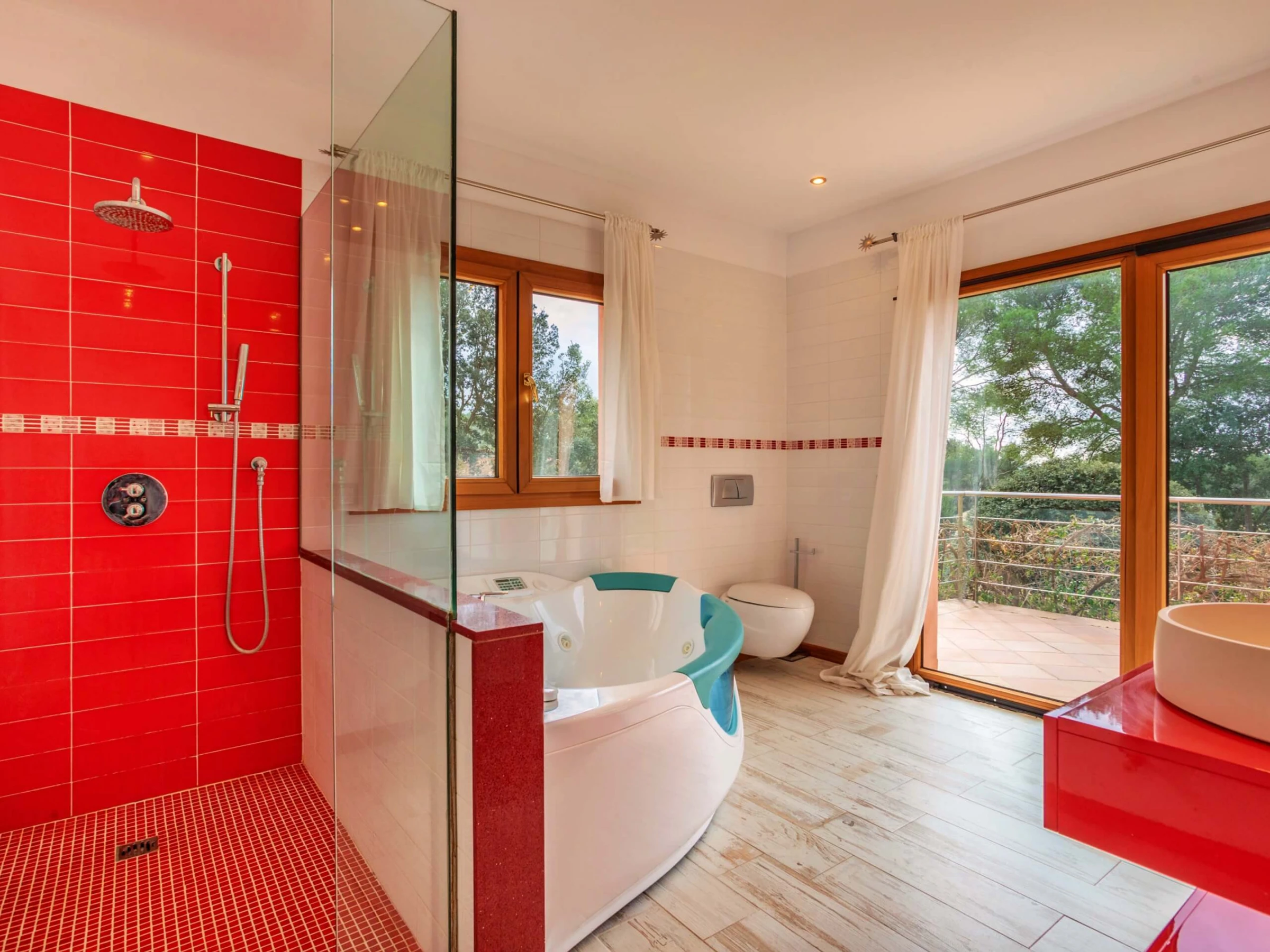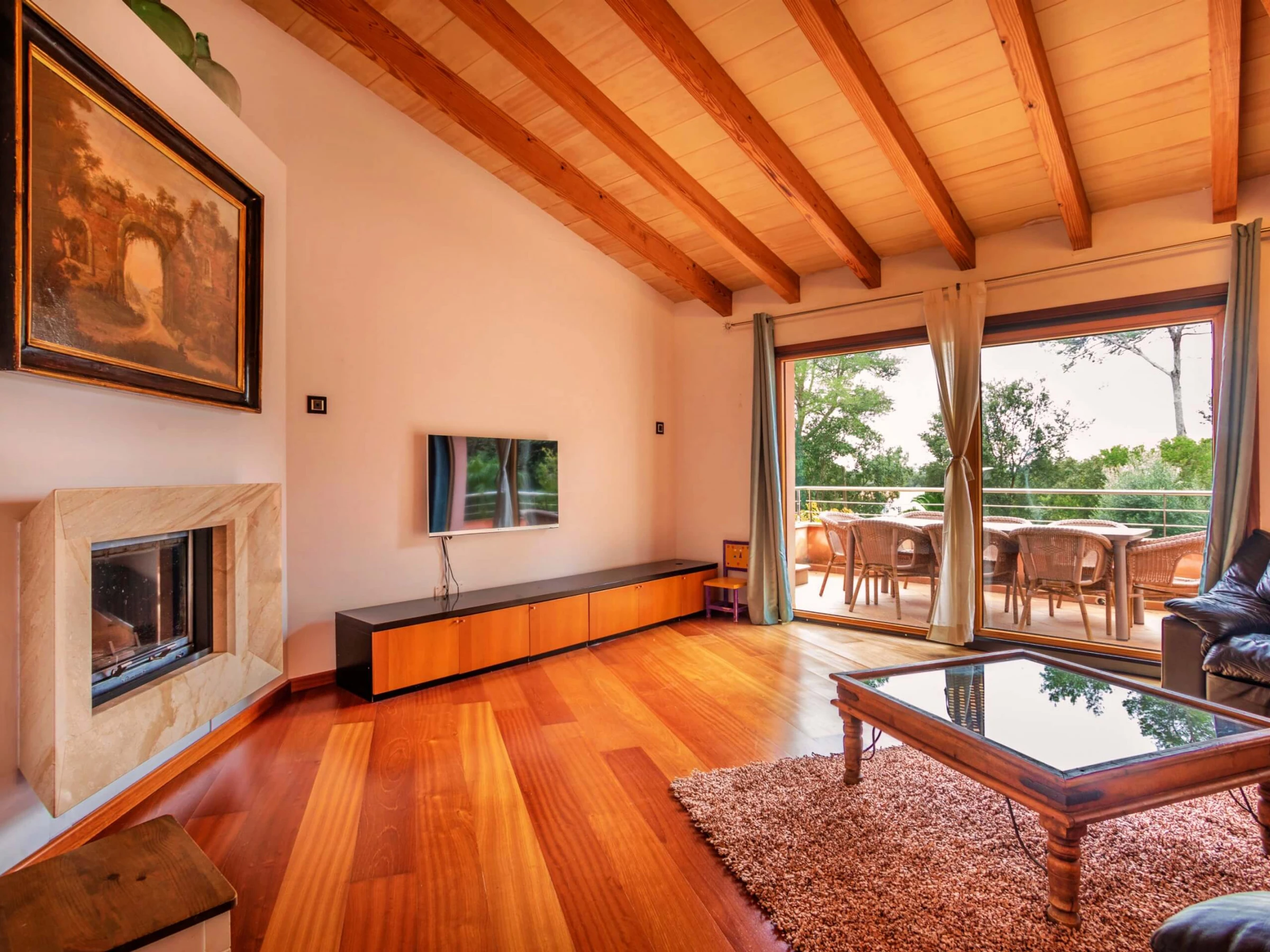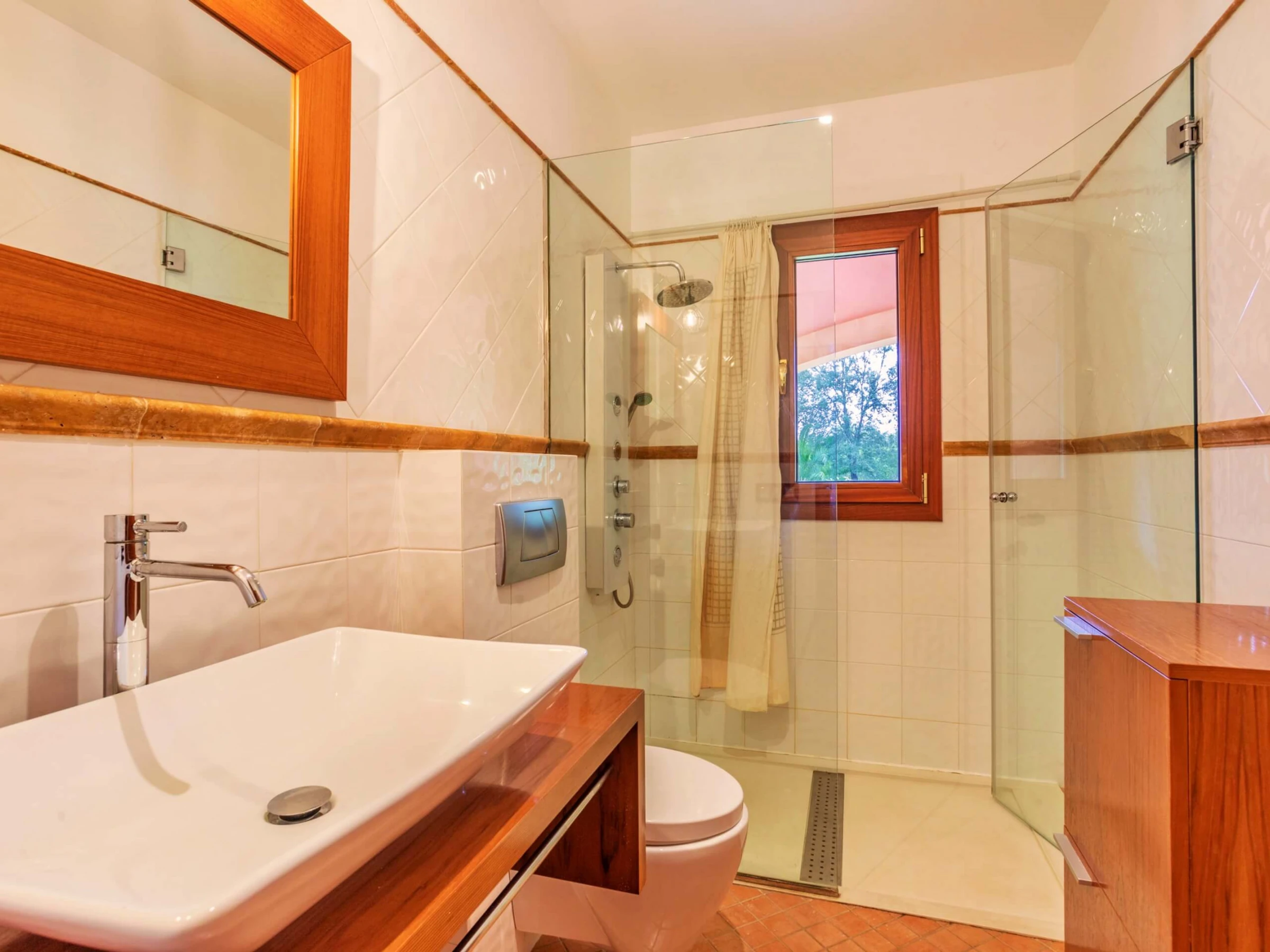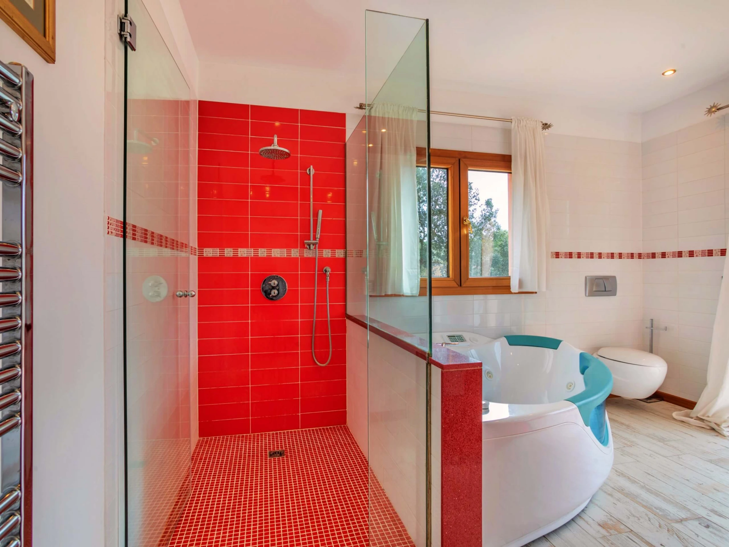 Das Innere der Villa ist in zwei Zonen unterteilt, und ihr Design wurde darauf ausgelegt, sowohl Komfort als auch Stil zu bieten. Beim Betreten findet man ein geräumiges Wohn-Esszimmer, das mit einer großen Terrasse verbunden ist. Daneben befindet sich eine moderne, voll ausgestattete Küche. In diesem Stockwerk gibt es auch ein Doppelzimmer mit Badezimmer en suite, das ein Jacuzzi enthält, sowie ein Zimmer mit zwei Einzelbetten. Über eine Treppe gelangt man zu drei weiteren Doppelzimmern: eines mit Badezimmer en suite und ein weiteres Badezimmer, das von den anderen beiden Zimmern gemeinsam genutzt wird.