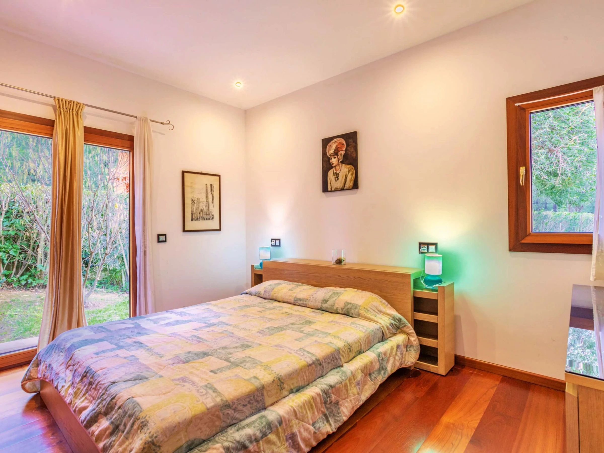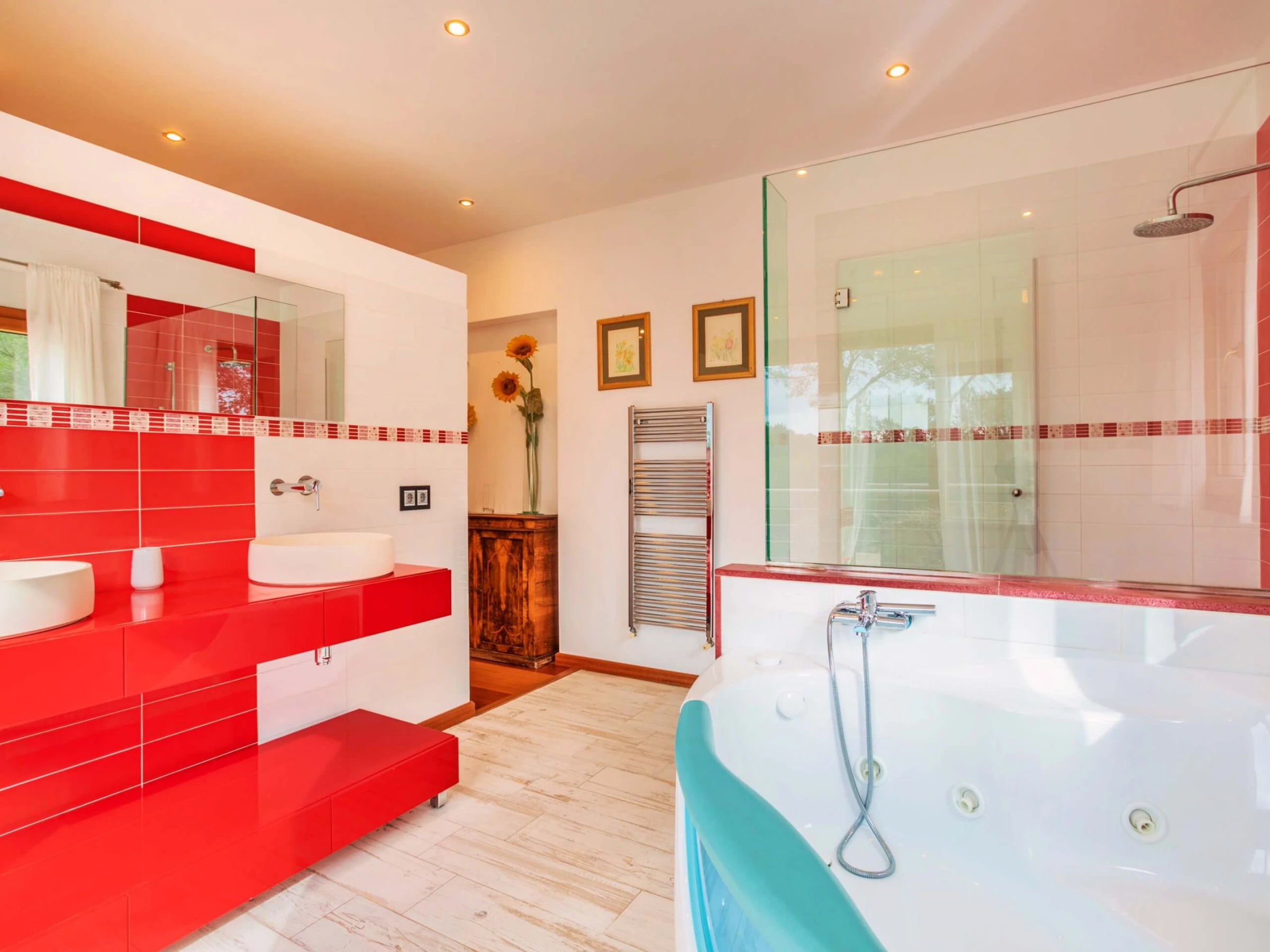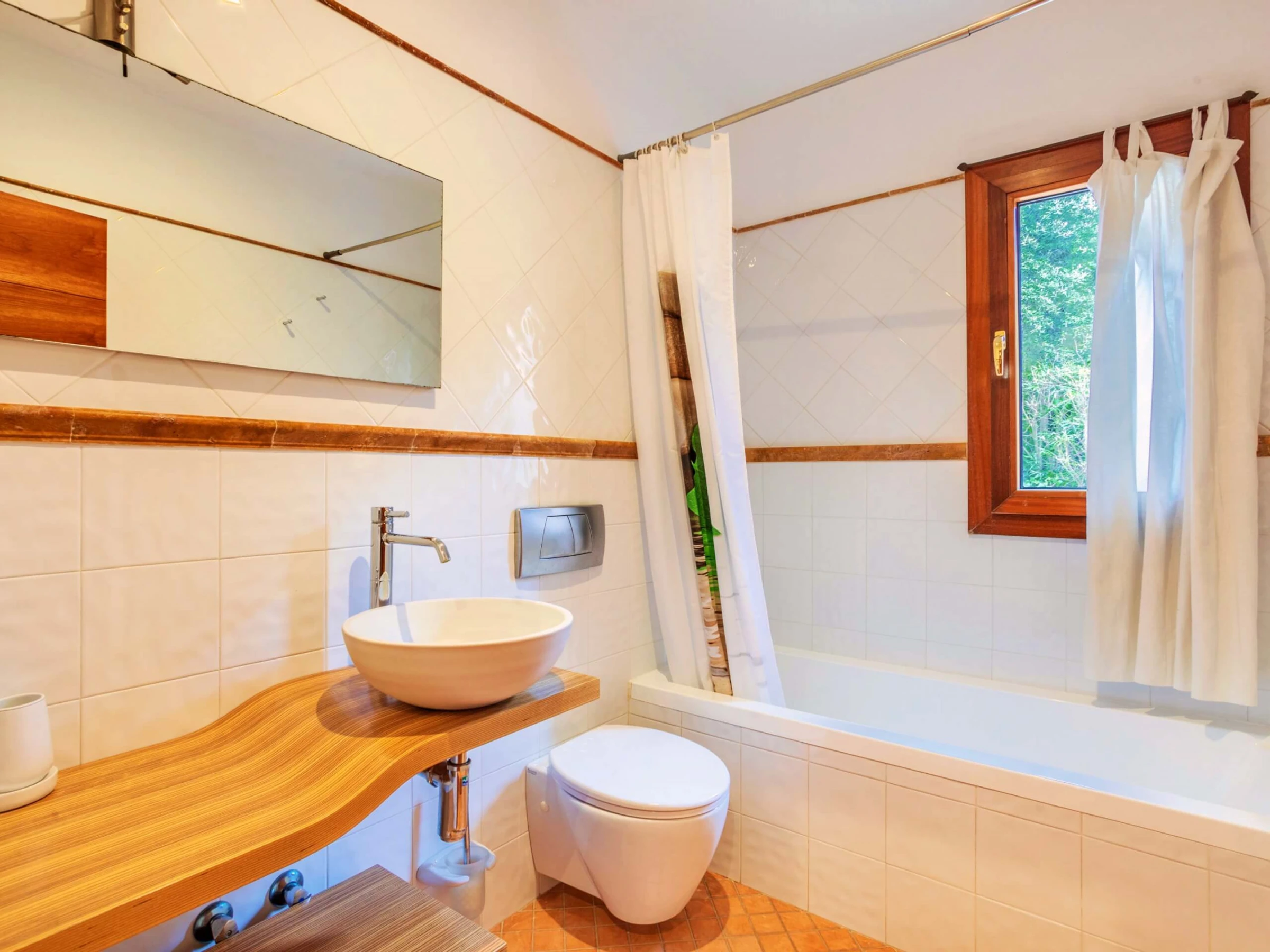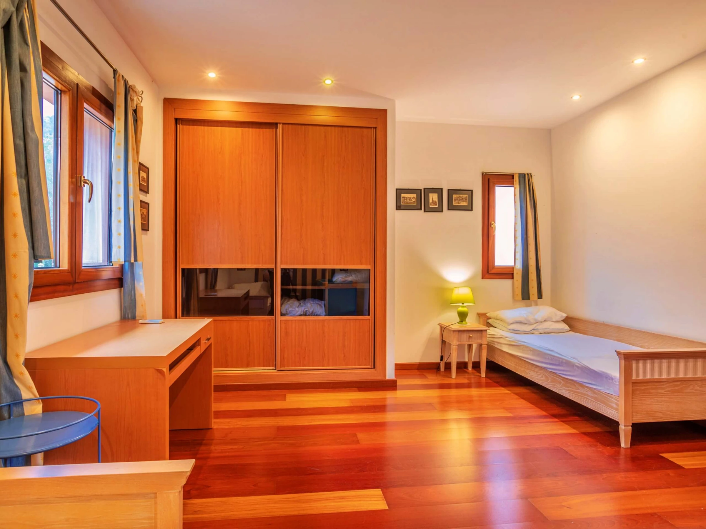 Das Innere der Villa ist in zwei Zonen unterteilt, und ihr Design wurde darauf ausgelegt, sowohl Komfort als auch Stil zu bieten. Beim Betreten findet man ein geräumiges Wohn-Esszimmer, das mit einer großen Terrasse verbunden ist. Daneben befindet sich eine moderne, voll ausgestattete Küche. In diesem Stockwerk gibt es auch ein Doppelzimmer mit Badezimmer en suite, das ein Jacuzzi enthält, sowie ein Zimmer mit zwei Einzelbetten. Über eine Treppe gelangt man zu drei weiteren Doppelzimmern: eines mit Badezimmer en suite und ein weiteres Badezimmer, das von den anderen beiden Zimmern gemeinsam genutzt wird.