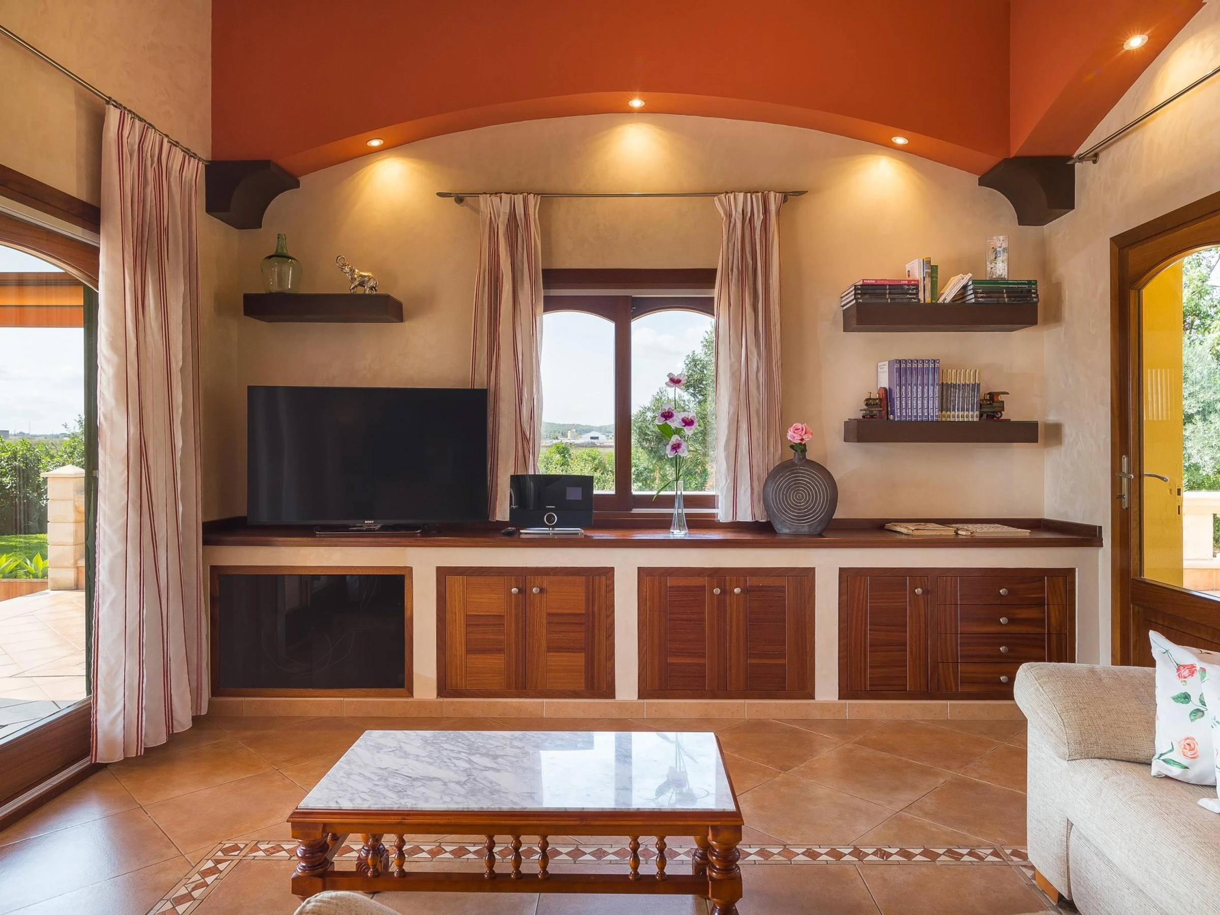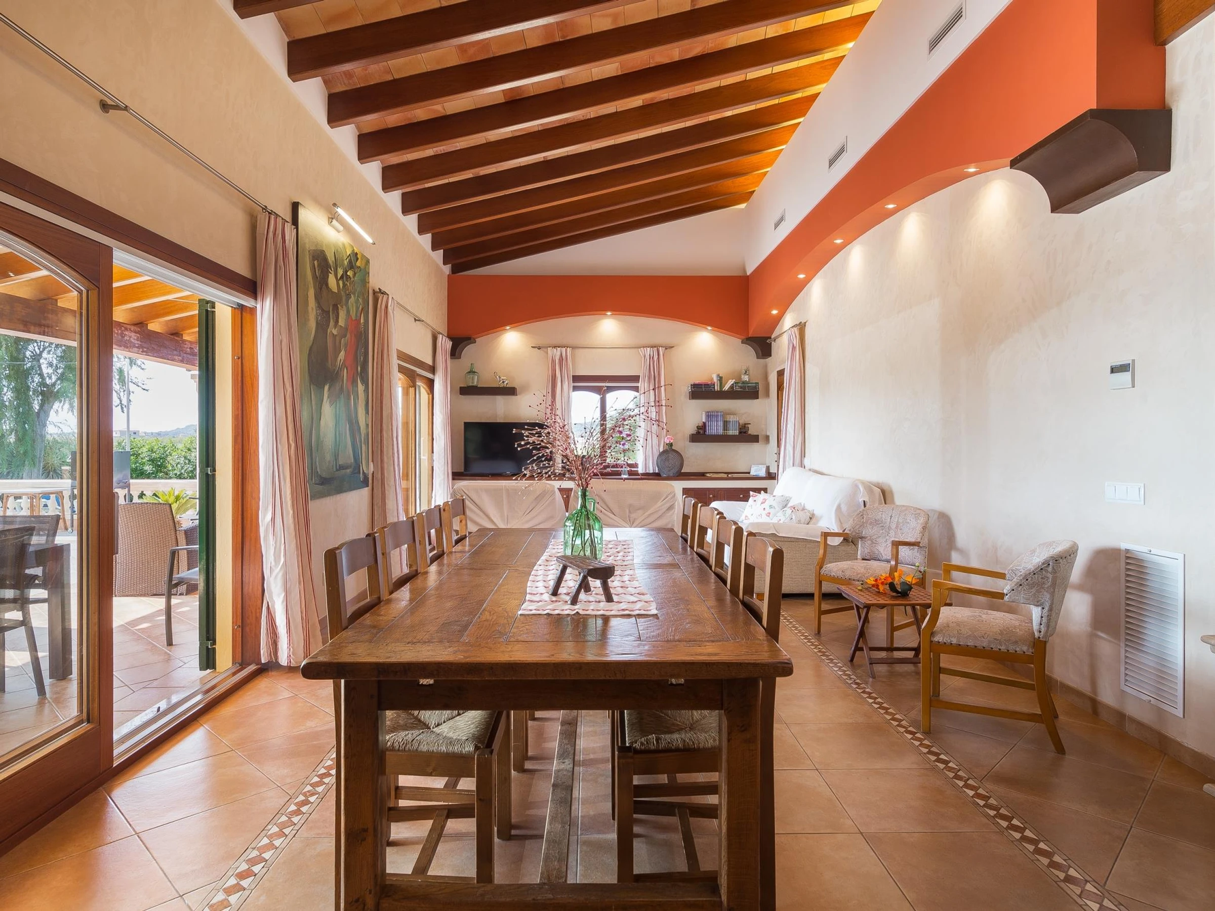 Das Haus von mehr als 200m² ist in zwei Höhen unterteilt. Im Erdgeschoss ist die voll ausgestattete Küche mit Zugang zur Terrasse, das große und gemütliche Wohnzimmer, ein Schlafzimmer mit Doppelbett mit Blick und Ausgang zum Garten und ein Badezimmer. Sowohl die Küche als auch das Wohnzimmer und das Schlafzimmer haben Zugang nach draußen. Die Terrasse und der Poolbereich sind komplett möbliert und ideal zum Entspannen und Genießen der Sonne und des wunderbaren Klimas der Insel Mallorca. Auf der ersten Etage befinden sich zwei Schlafzimmer, ein Badezimmer und ein weiteres Schlafzimmer mit Ankleide und Bad. Alle Zimmer sind nach außen und mit sehr klarer Aussicht.