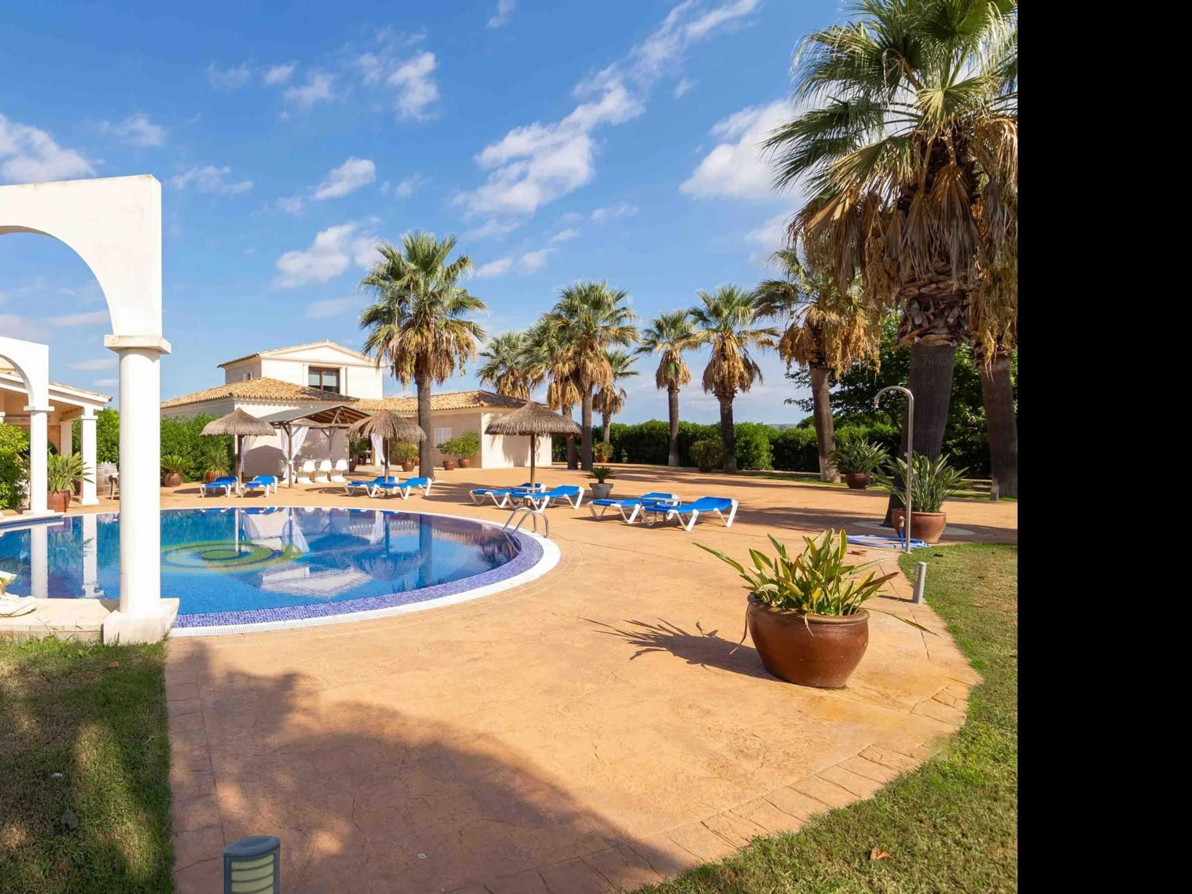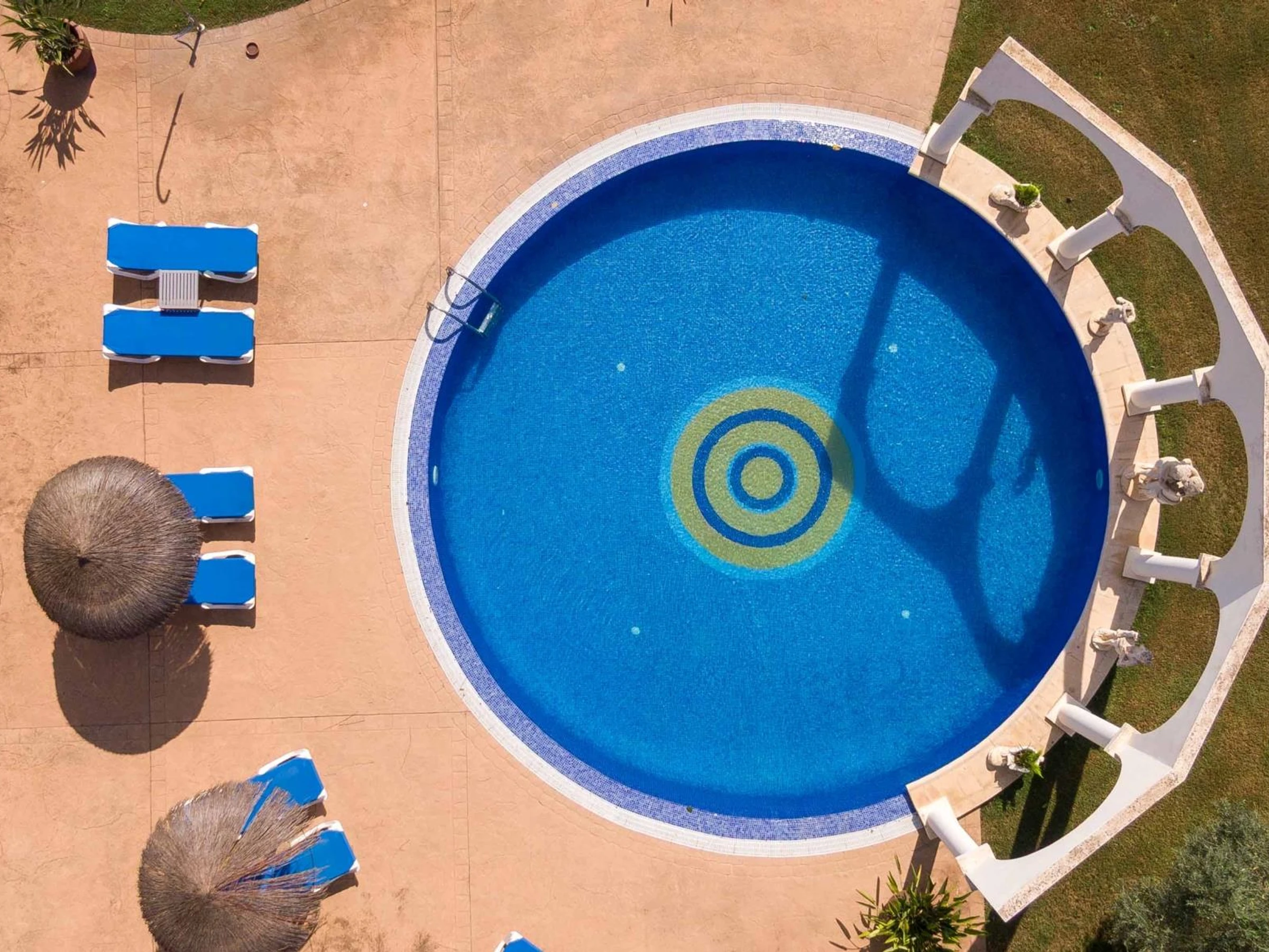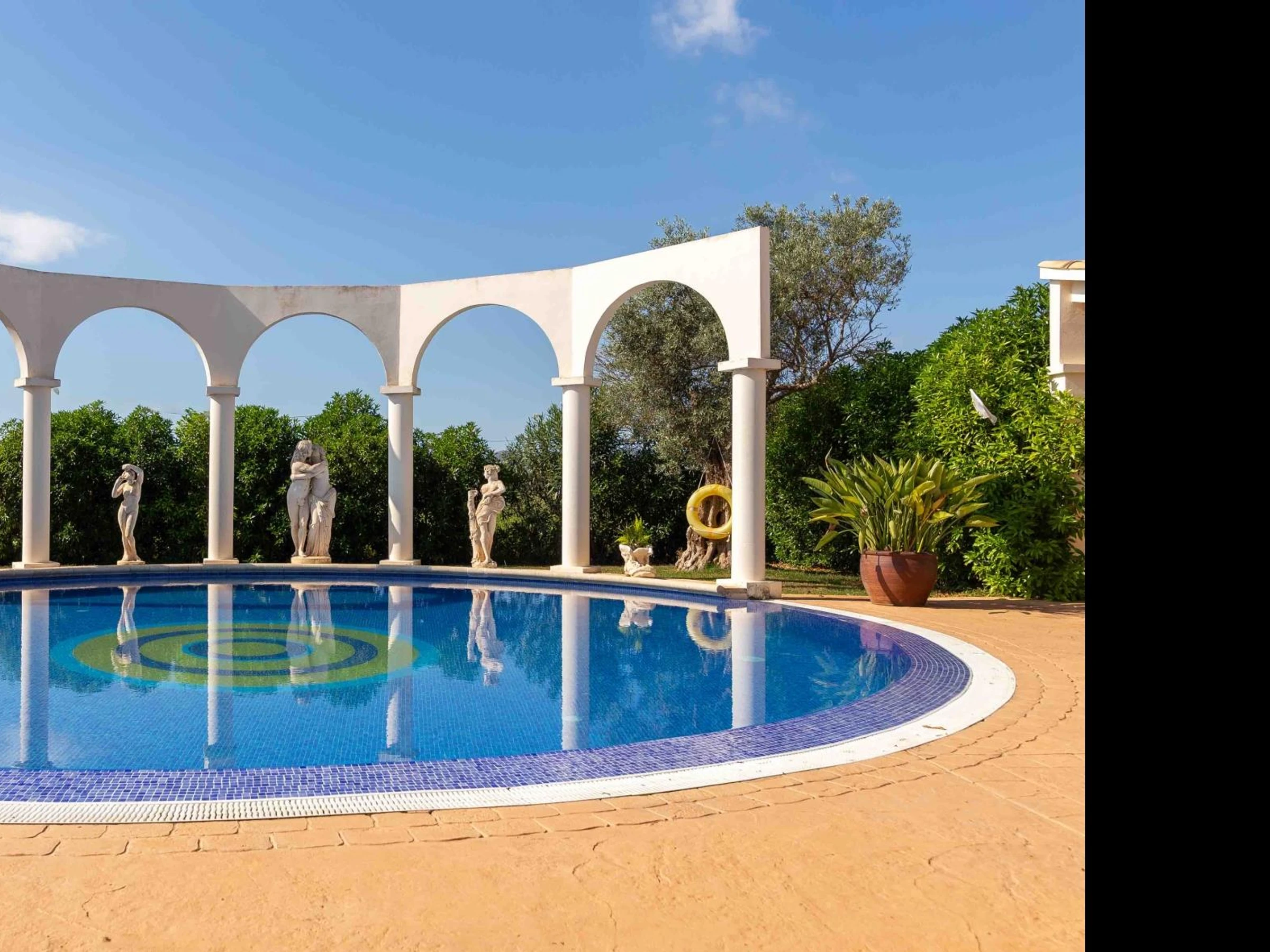 Der Außenbereich lädt dazu ein, das mediterrane Klima in vollen Zügen zu genießen: Ein großer runder Pool mit Sonnenliegen, ein Grillplatz, ein Kinderspielplatz, ein Volleyballfeld und eine Tischtennisplatte garantieren Spaß und Entspannung mit Familie oder Freunden. Das Anwesen verfügt außerdem über eine Garage.