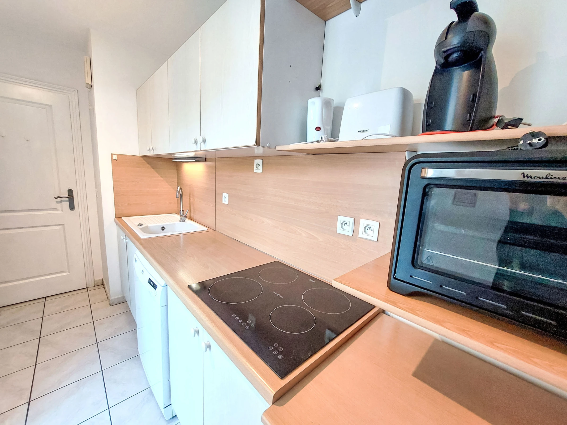2-Zimmer-Wohnung 48 m2 im 4. Stock, Nordlage. Geräumig, komfortabel eingerichtet: Wohn-/Esszimmer mit 1 Doppeldiwanbett (1 x 140 cm, Länge 190 cm), TV (Flachbildschirm), Klimaanlage und elektrischem Rollladen. Ausgang zur Terrasse. 1 Zimmer mit begehbarem Kleiderschrank mit 1 franz. Bett (1 x 160 cm, Länge 200 cm), Klimaanlage. Küche (Mini-Backofen, Geschirrspüler, 4 Induktionskochplatten, Toaster, Wasserkocher, Mikrowelle, Tiefkühler, elektrische Kaffeemaschine, Kapseln für die Kaffeemaschine (DOLCE GUSTO) extra). Ausgang zur Terrasse. Bad, sep. WC. Heizung. Balkon 17 m2, Nordlage. Balkonmöbel. Fernsicht auf das Meer und das Schwimmbad. Zur Verfügung: Waschmaschine, Bügeleisen, Haartrockner. Internet (WLAN, extra). Parkplatz (überdacht, 1 Auto). Bitte beachten: 1 kleines Haustier/Hund erlaubt. TV nur FR. Rauchmelder. Inserat einer Privatperson nach Artikel 155, IV, CGI. [hidden]
