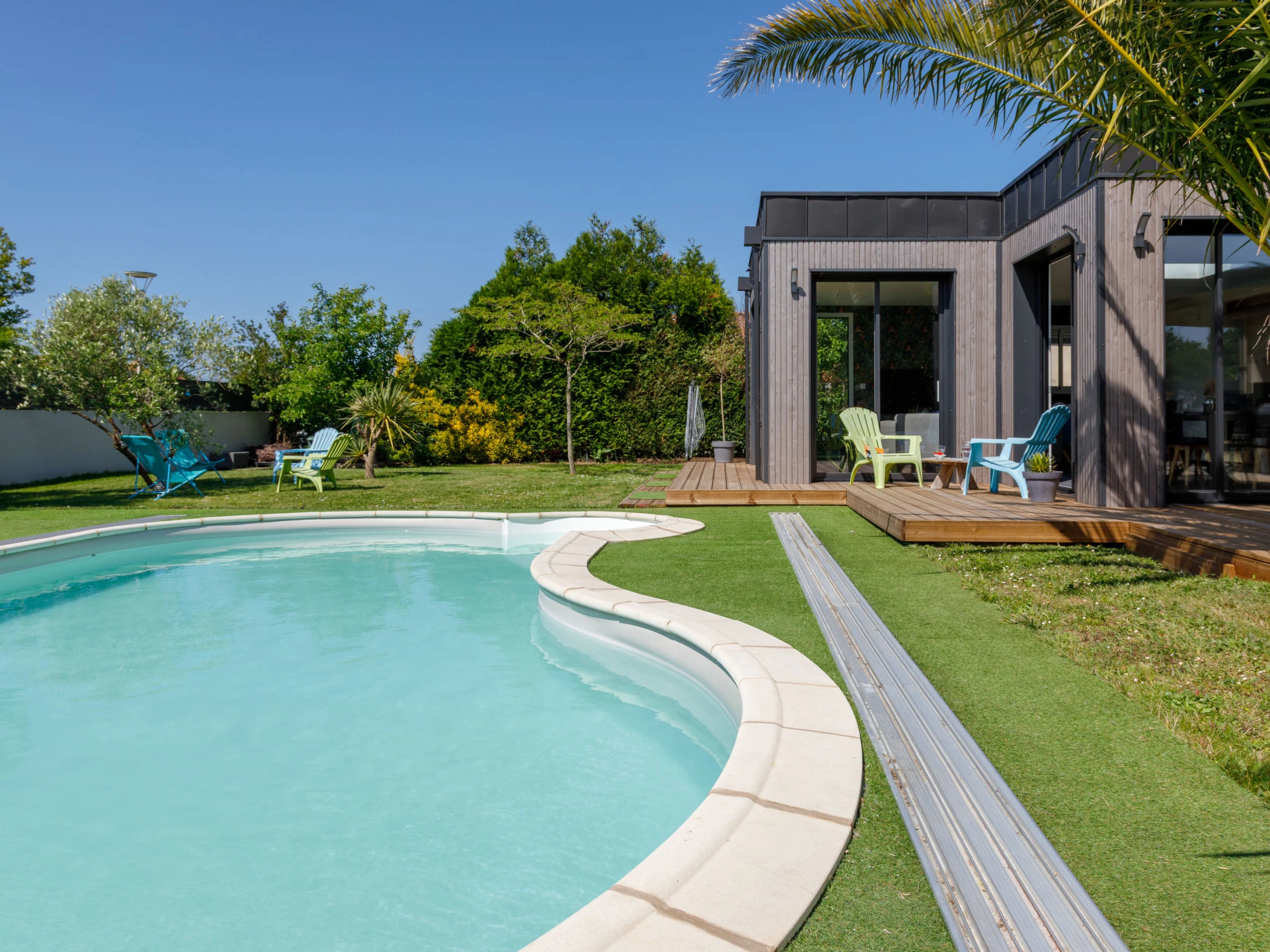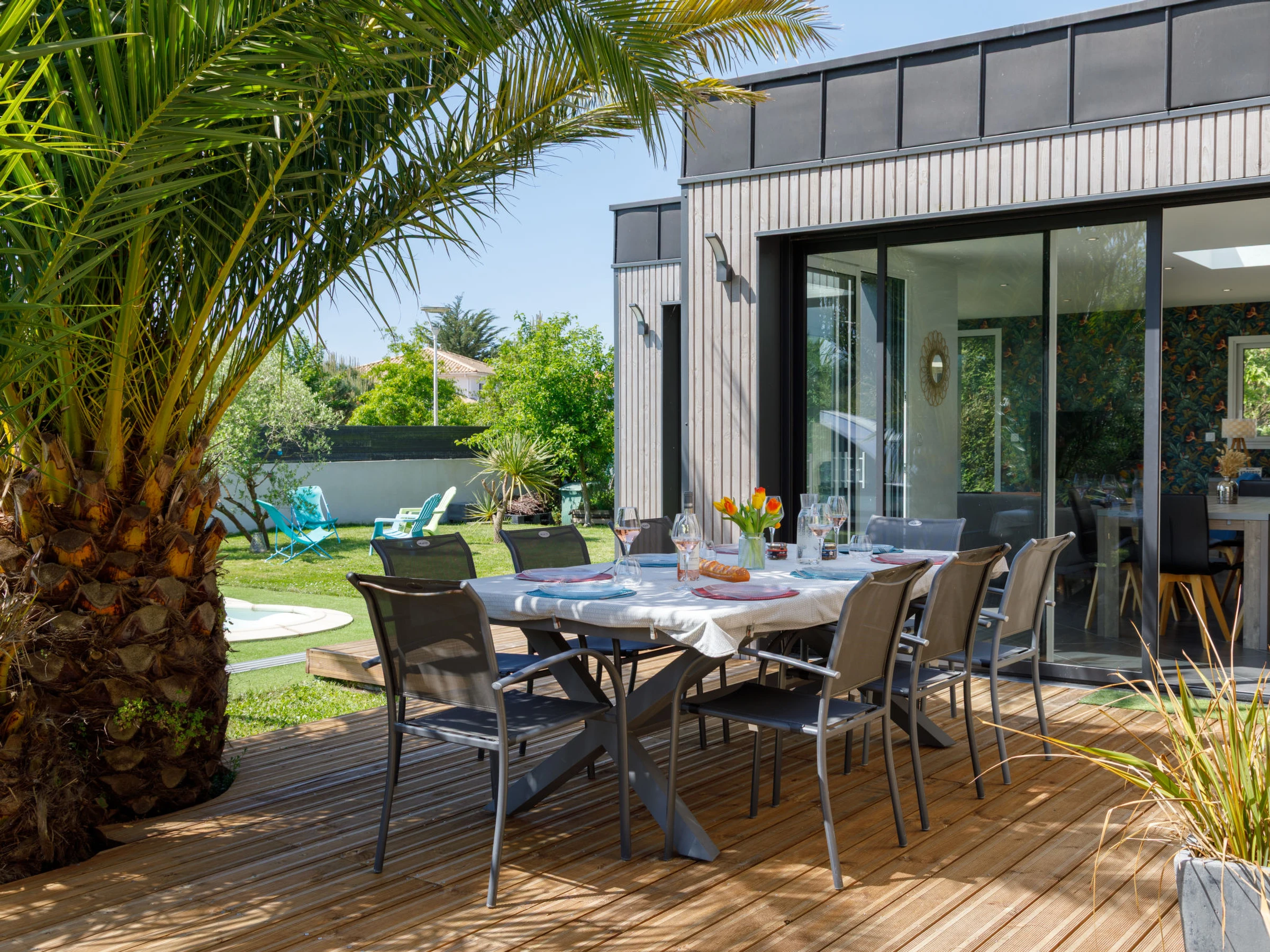 Grosses, schönes Einfamilienhaus "Villa Sunset", auf 2 Stockwerken. Im Ortsteil La Prinais, ruhige Lage in einem Wohnquartier, 2 km vom Meer, 3.5 km vom Strand, in einer Sackgasse, Richtung Süden. Zur Alleinbenutzung: Grundstück 700 m2 (eingezäunt), gepflegter Garten mit Rasen, Schwimmbad, Hallenbad (8 x 4 m, 120 - 120 cm tief, saisonale Verfügbarkeit: [hidden] - [hidden] Tischtennis, Terrasse, Gartenmöbel, Grill, Parkplatz (für 2 Autos), Einzelgarage. Einkaufsgeschäft 350 km, Supermarkt 3 km, Restaurant 3 km, Zentrum zu Fuss in 25 Minuten erreichbar, Bushaltestelle "La Croix du Sud" 1.5 km, Bahnstation "Saint Nazaire" 10 km, Sandstrand "Grande plage de l'Océan" 6 km, Freibad 4 km, Thermalbad "Spa du Béryl" 6 km. Nahe gelegene Sehenswürdigkeiten: Le Serpent d'Océan 2.5 km, Chantiers de l'Atlantique St Nazaire 9 km, Pornic 17 km, Pornichet-La Baule 21 km, Nantes 67 km, Noirmoutier 77 km. Bekannte Seen in der Umgebung sind gut erreichbar: Lac de Saint Viaud 13 km. Wandergebiete: Parc naturel régional de Brière 13 km.