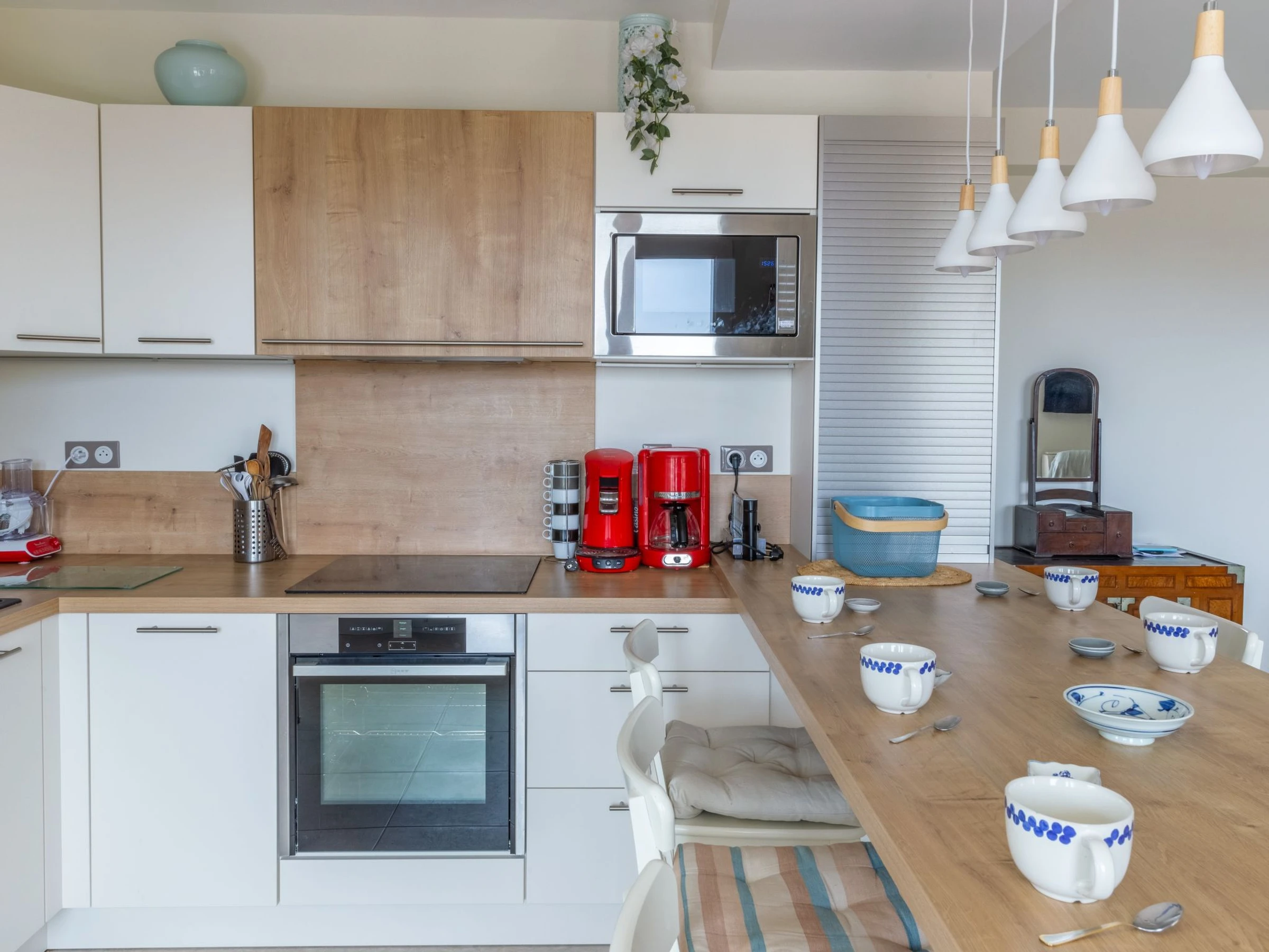 4-Zimmer-Wohnung 75 m2 im 2. Stock. Vollständig renoviert im Jahre 2020, komfortabel und schön eingerichtet: Wohn-/Esszimmer mit TV (Flachbildschirm), Klimaanlage. Ausgang zur Terrasse. 1 Zimmer mit 1 franz. Bett (140 cm, Länge 200 cm), Ventilator. 1 Zimmer mit 1 franz. Bett (140 cm, Länge 190 cm), Ventilator. 1 Zimmer mit 1 x 2 Etagenbetten (90 cm, Länge 190 cm), Ventilator. Offene Küche (Backofen, Geschirrspüler, 3 Induktionskochplatten, Toaster, Wasserkocher, Mikrowelle, Tiefkühler, elektrische Kaffeemaschine, Kapseln für die Kaffeemaschine (Senséo + filtre) extra). Ausgang zur Terrasse. Dusche, sep. WC, Doppelwaschbecken. Warmluftheizung. Terrasse 22 m2, Westlage. Terrassenmöbel. Zur Verfügung: Waschmaschine. Internet (Wireless LAN, gratis). Parkplatz (1 Auto). Bitte beachten: Nichtraucher-Unterkunft. TV nur FR. Rauchmelder. [hidden]