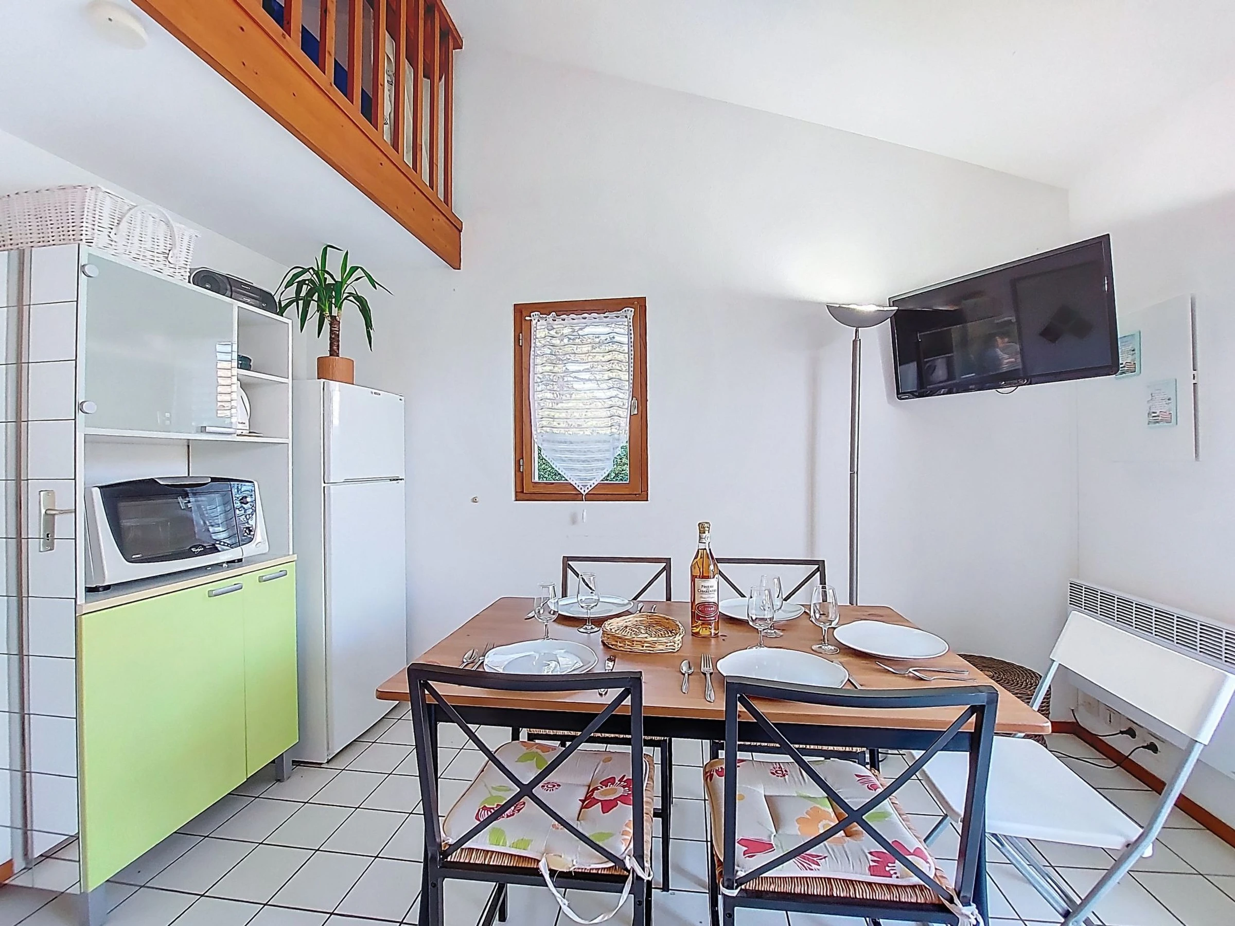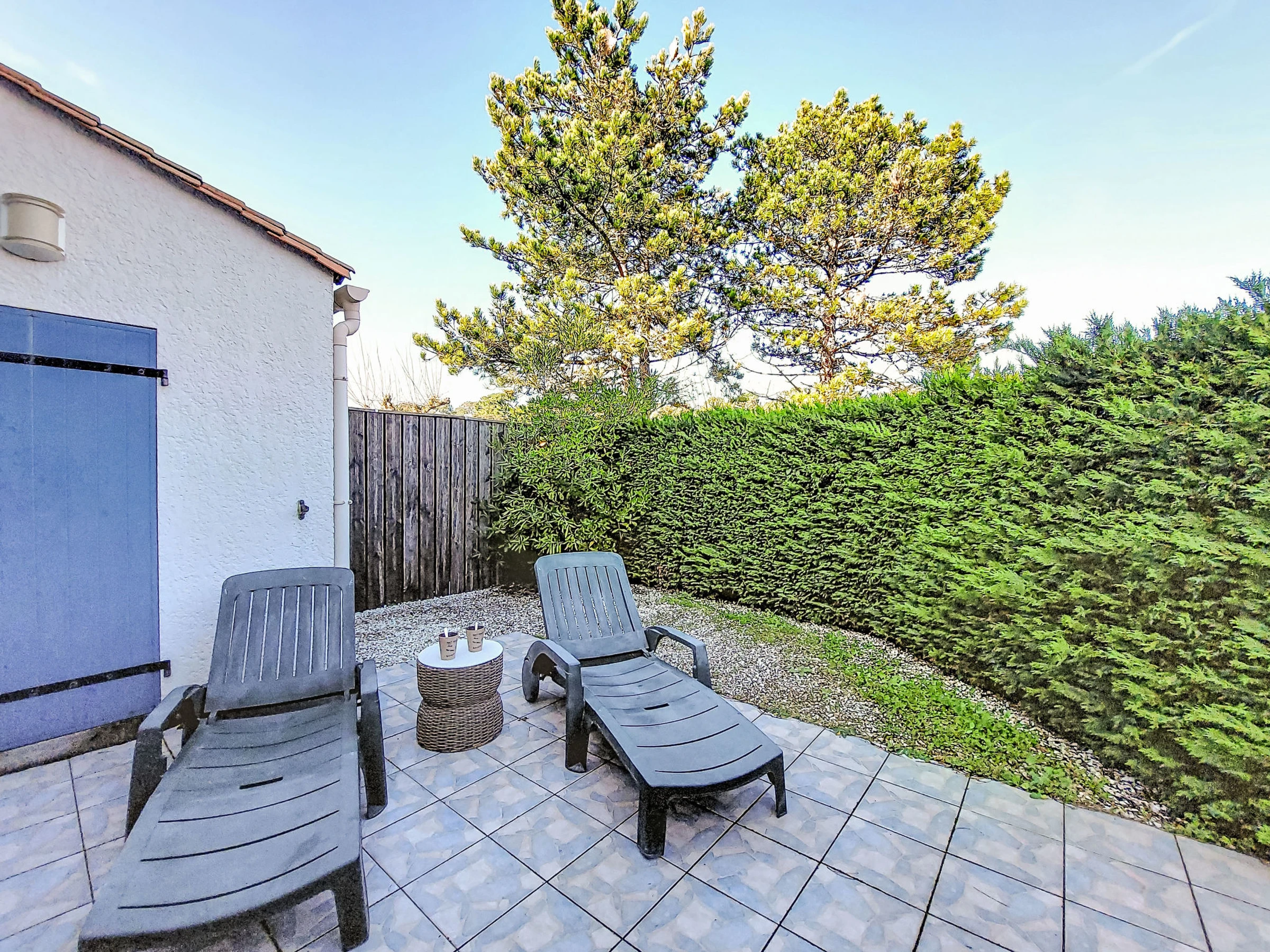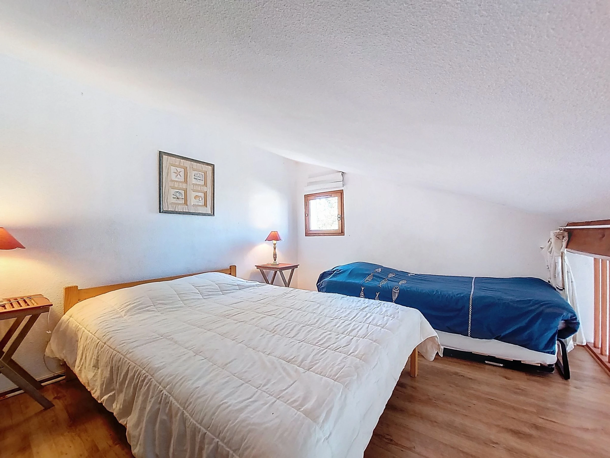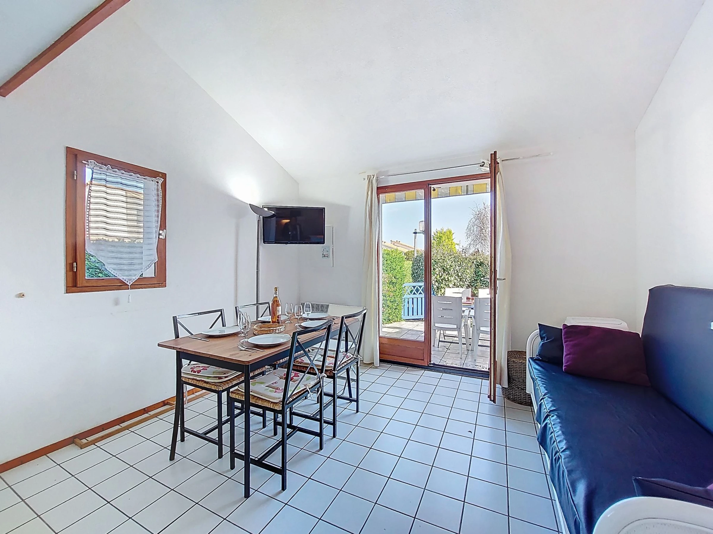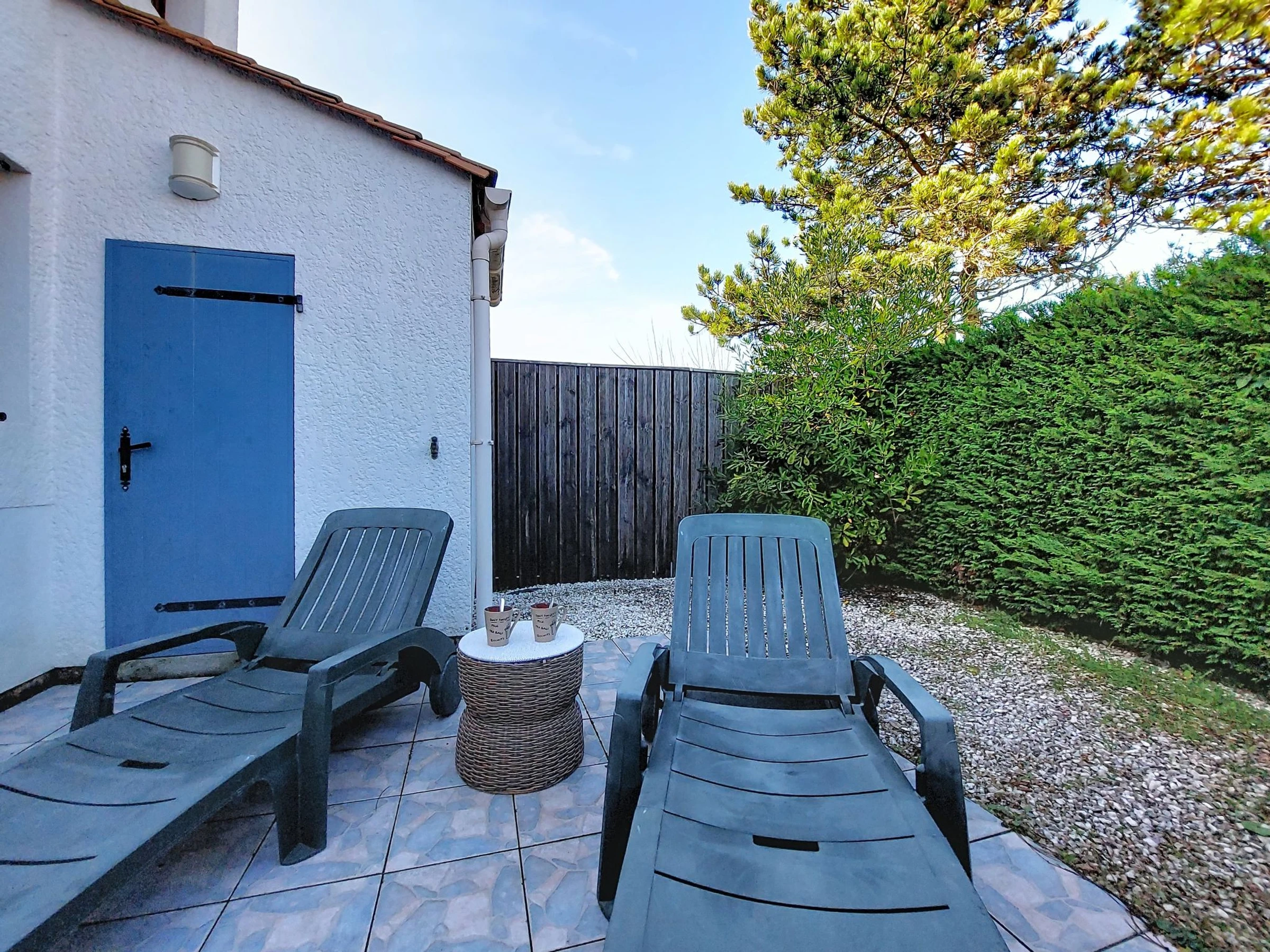 2-Zimmer-Reihenhaus 36 m2 auf 2 Stockwerken. Wohnzimmer mit TV (Flachbildschirm). Ausgang zur Terrasse. 1 Zimmer mit 1 franz. Bett (1 x 140 cm, Länge 190 cm). Kochnische (2 Kochplatten, Geschirrspüler, Toaster, Wasserkocher, Tiefkühler, elektrische Kaffeemaschine, Kombinationsmikrowelle). Dusche/WC. E-Heizung. Obergeschoss: abgeschrägte Galerie mit 1 Bett (90 cm, Länge 190 cm), 1 franz. Bett (1 x 140 cm, Länge 190 cm). Grosse Terrasse 40 m2, Ostlage und Nordostlage. Terrassenmöbel, Gartengrill. Zur Verfügung: Waschmaschine, Bügeleisen. Internet (WLAN, extra). Parkplatz Nr. 157. Bitte beachten: Rauchmelder. Inserat einer Privatperson nach Artikel 155, IV, CGI.