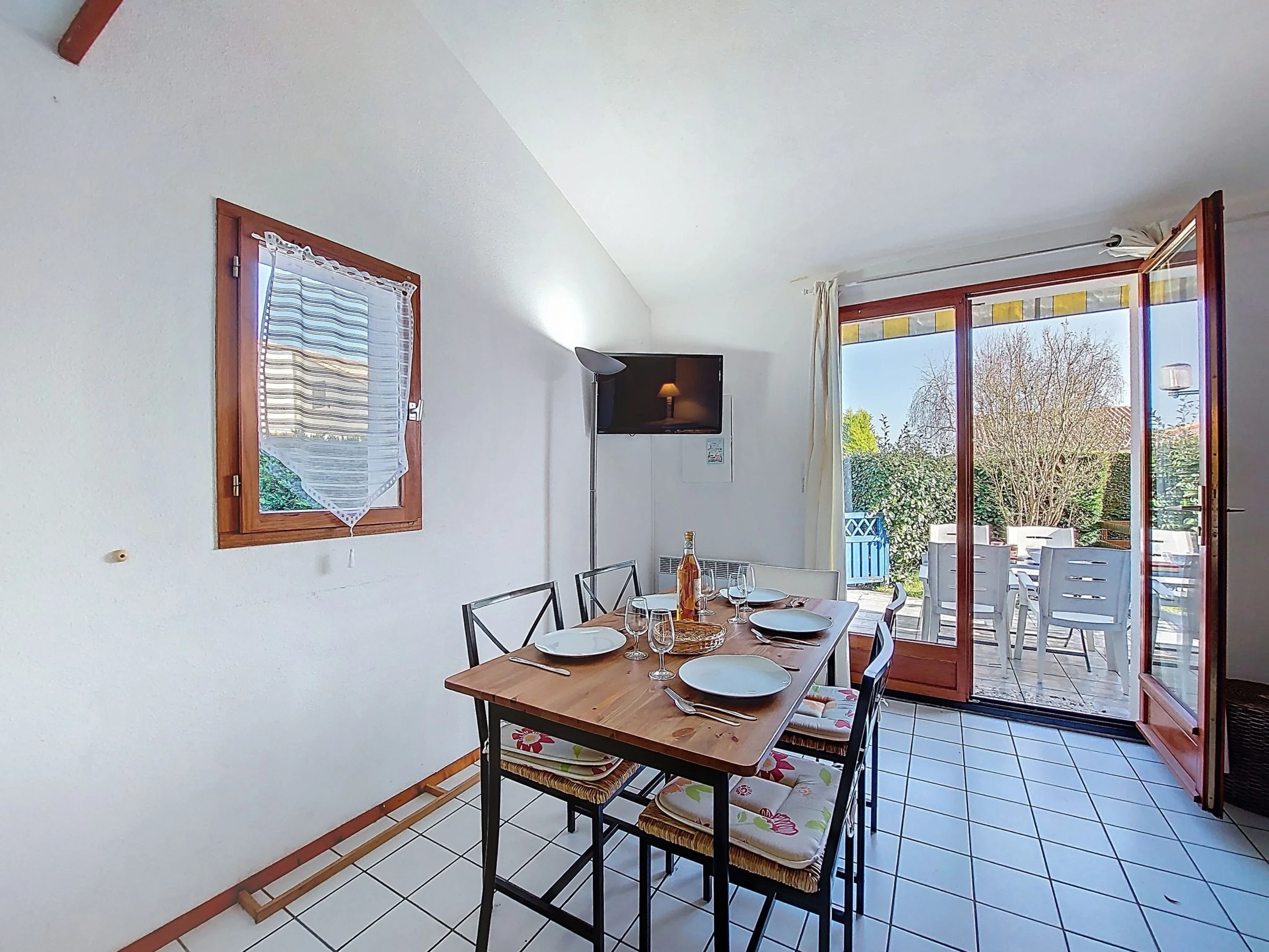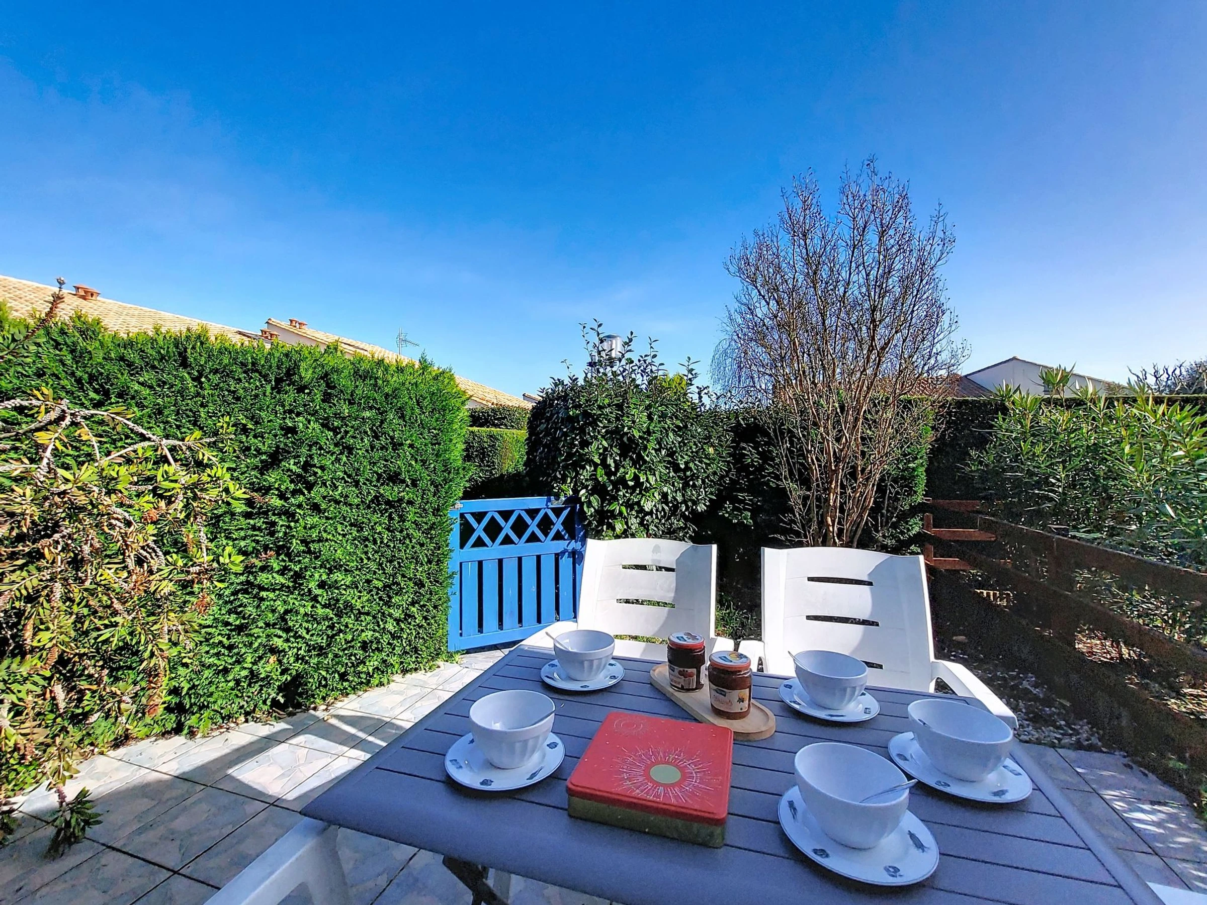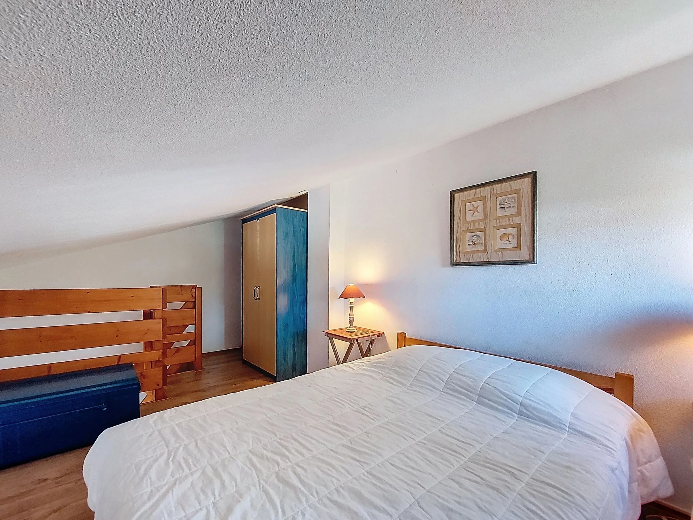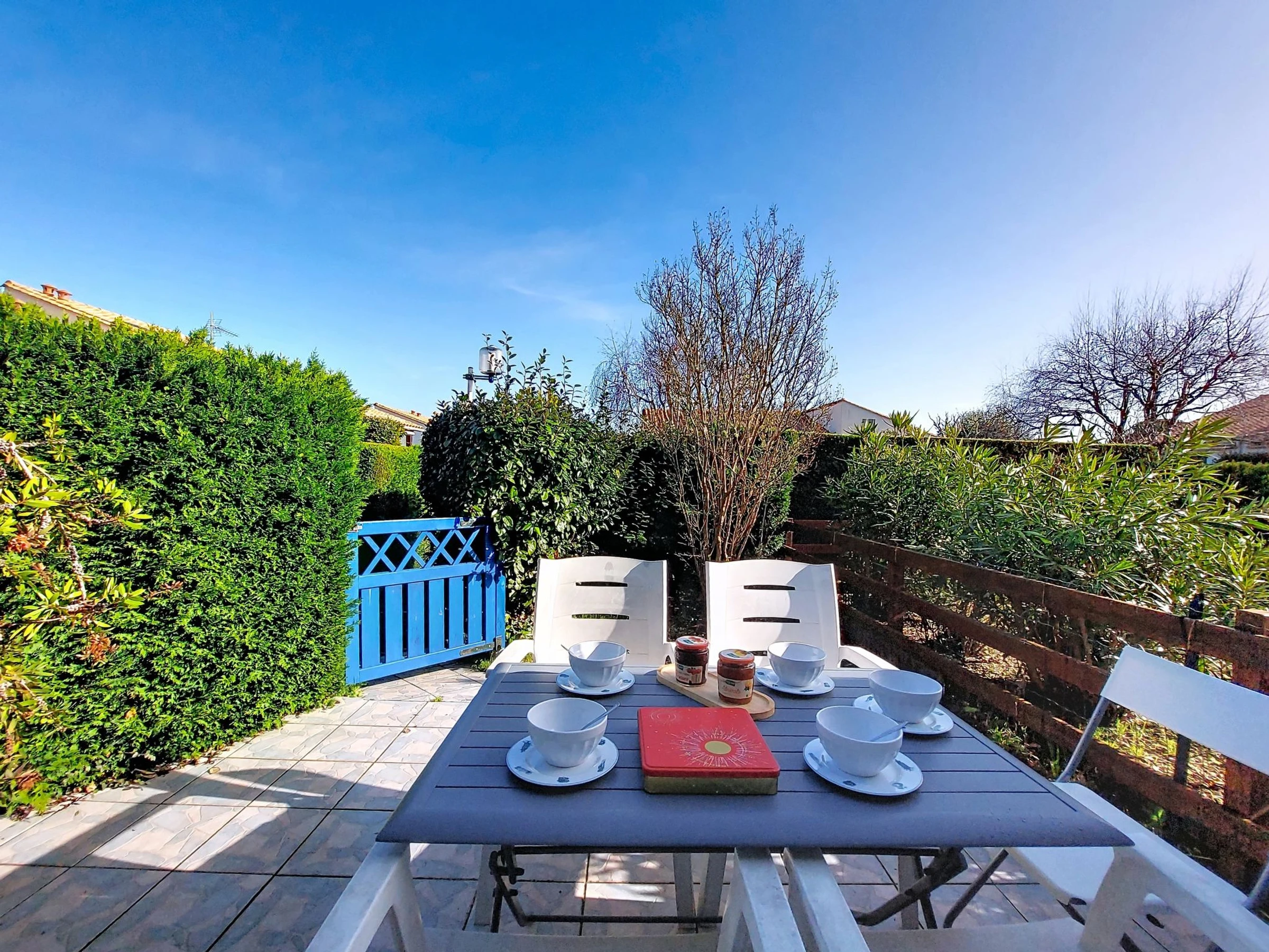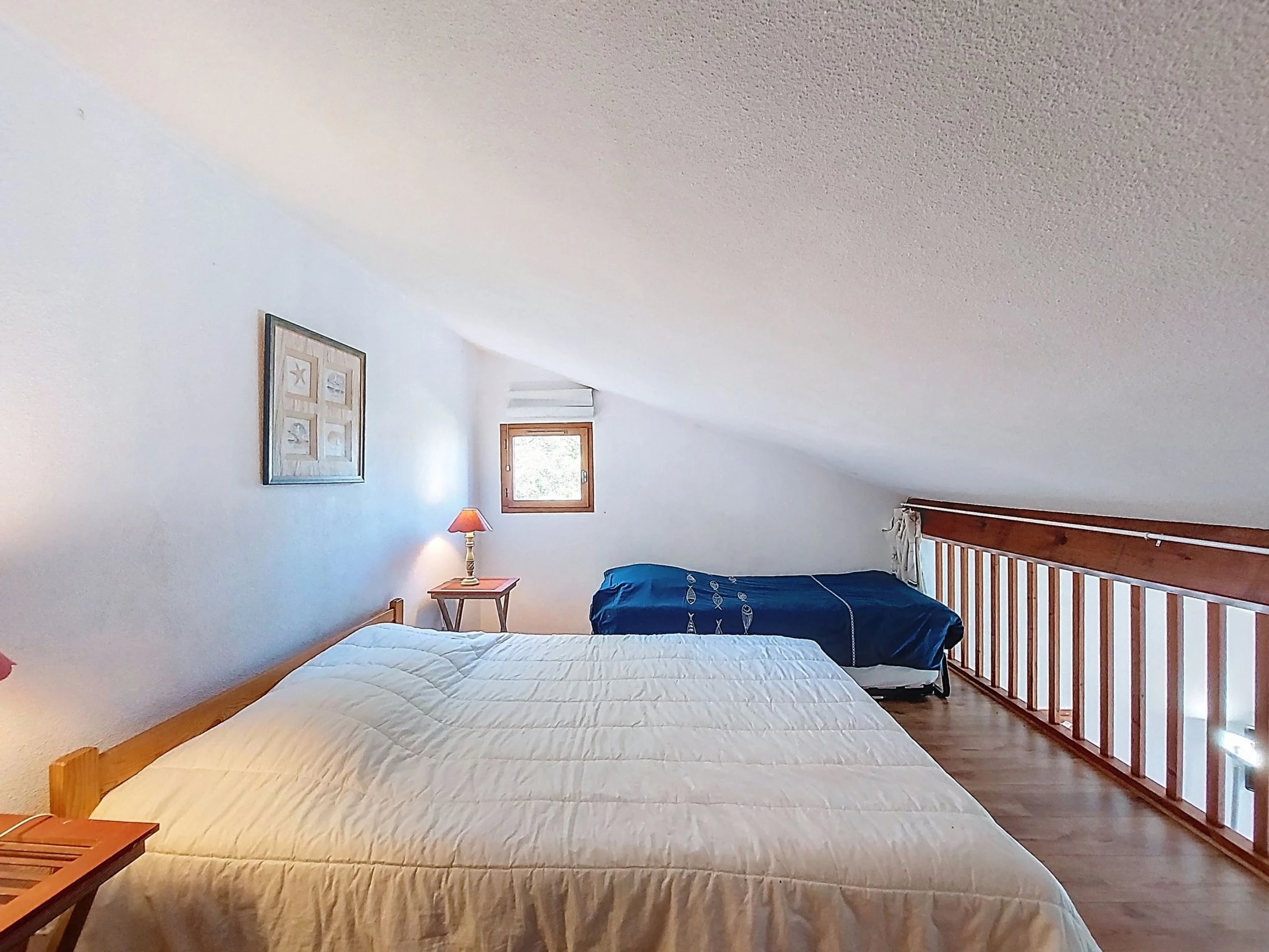 2-Zimmer-Reihenhaus 36 m2 auf 2 Stockwerken. Wohnzimmer mit TV (Flachbildschirm). Ausgang zur Terrasse. 1 Zimmer mit 1 franz. Bett (1 x 140 cm, Länge 190 cm). Kochnische (2 Kochplatten, Geschirrspüler, Toaster, Wasserkocher, Tiefkühler, elektrische Kaffeemaschine, Kombinationsmikrowelle). Dusche/WC. E-Heizung. Obergeschoss: abgeschrägte Galerie mit 1 Bett (90 cm, Länge 190 cm), 1 franz. Bett (1 x 140 cm, Länge 190 cm). Grosse Terrasse 40 m2, Ostlage und Nordostlage. Terrassenmöbel, Gartengrill. Zur Verfügung: Waschmaschine, Bügeleisen. Internet (WLAN, extra). Parkplatz Nr. 157. Bitte beachten: Rauchmelder. Inserat einer Privatperson nach Artikel 155, IV, CGI.