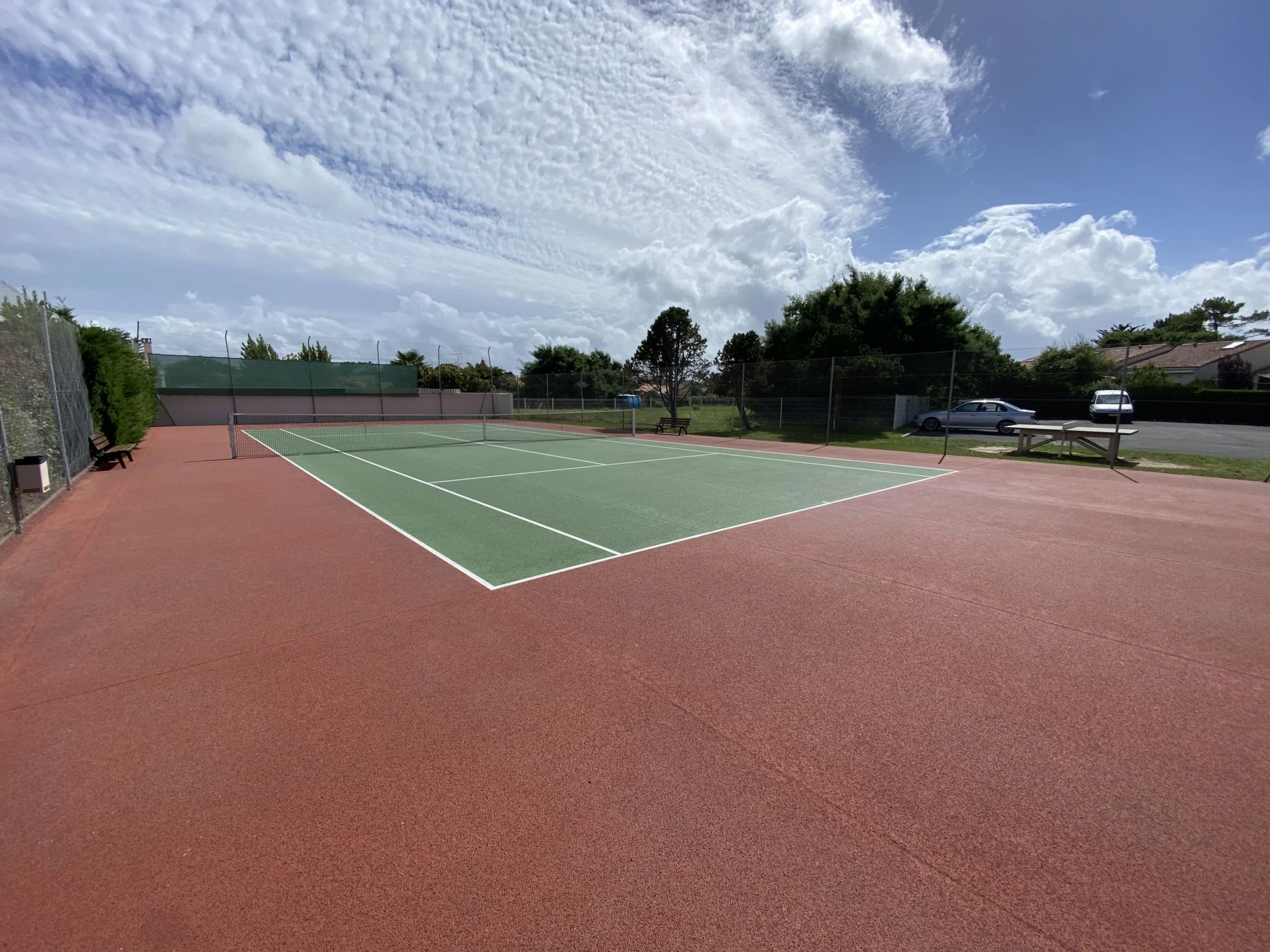 Saint Palais sur Mer 7 km von Royan: Grosse Residenz "Bois Soleil". 180 Häuser in der Residenz. Im Ort, 2 km vom Zentrum von Saint Palais sur Mer, 450 m vom Meer, 900 m vom Strand. Zur Mitbenutzung: Schwimmbad (17 x 8 m, 106 - 180 cm tief, saisonale Verfügbarkeit: [hidden] - [hidden] Öffnungszeiten Schwimmbad: 09:00-20:00). Tennis, Tischtennis, Boccia. Einkaufsgeschäft 2 km, Supermarkt 2 km, Restaurant 600 m, Bäckerei 2 km, Bushaltestelle "Auture" 400 m, Bahnstation "Royan" 9 km, Sandstrand "Platin" 900 m, Hallenbad 9 km, Thermalbad "Thalassothérapie Thalazur Royan" 7 km. Golfplatz (18 Loch) 1.5 km, Tennis 2 km, Tennishalle 2 km, Reitstall 1.5 km. Nahe gelegene Sehenswürdigkeiten: Zoo de La Palmyre 7 km, Hippodrome - La Palmyre 8 km, Embarcadère Royan - Le Verdon 8 km, Parc attractions-Luna Park(Juillet-Août) 11 km, Centre aquatique Iléo - Ile d'Oléron 40 km, Fort Boyard - Ile d'Aix 48 km. Die Schlüsselübergabe findet bei der Agentur in Vaux sur Mer statt, 5 km.