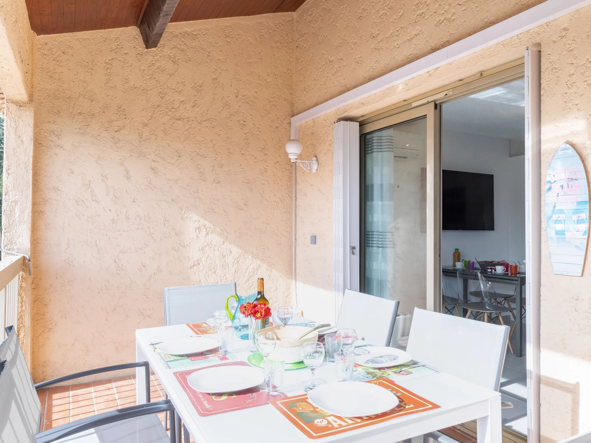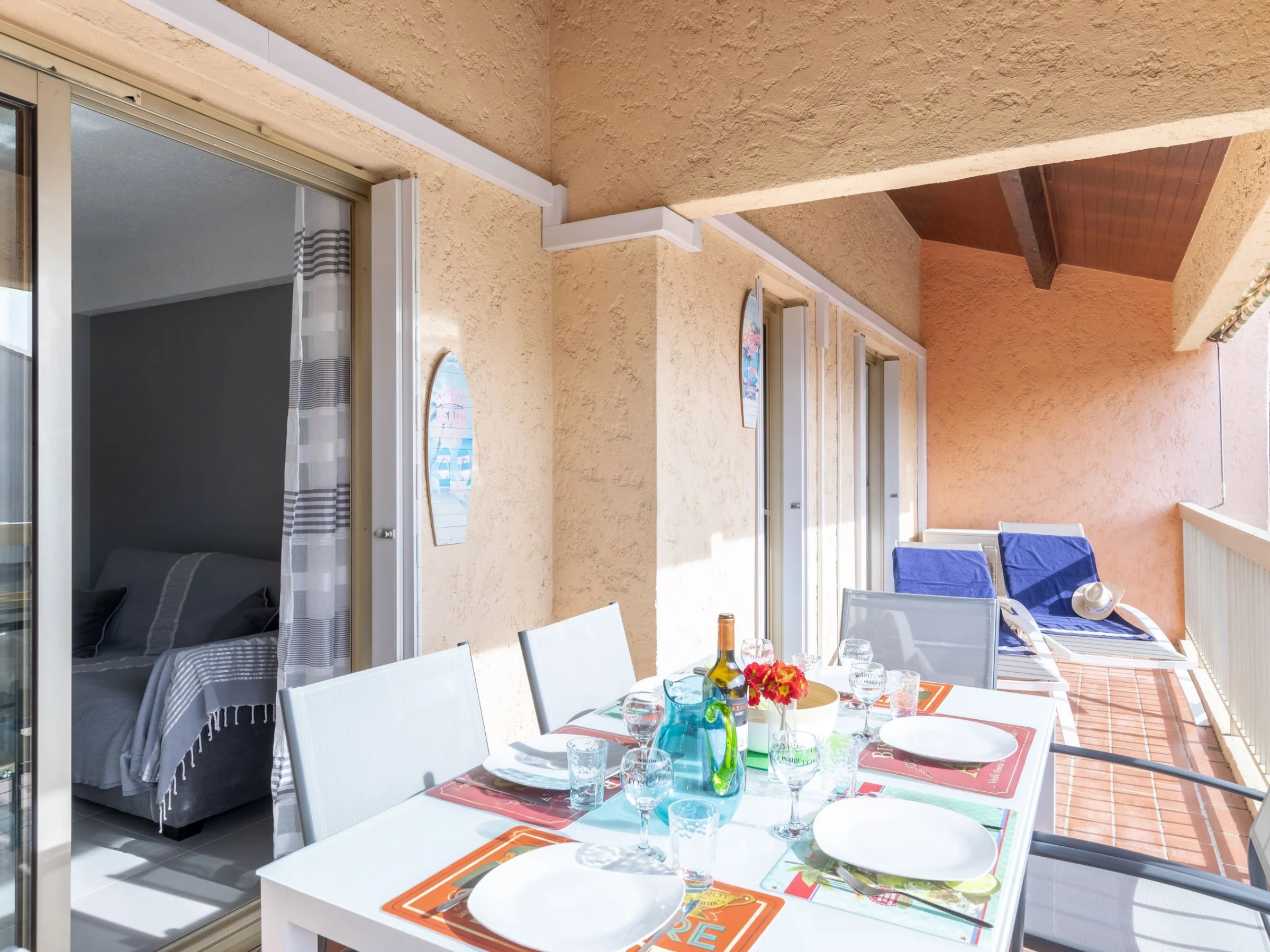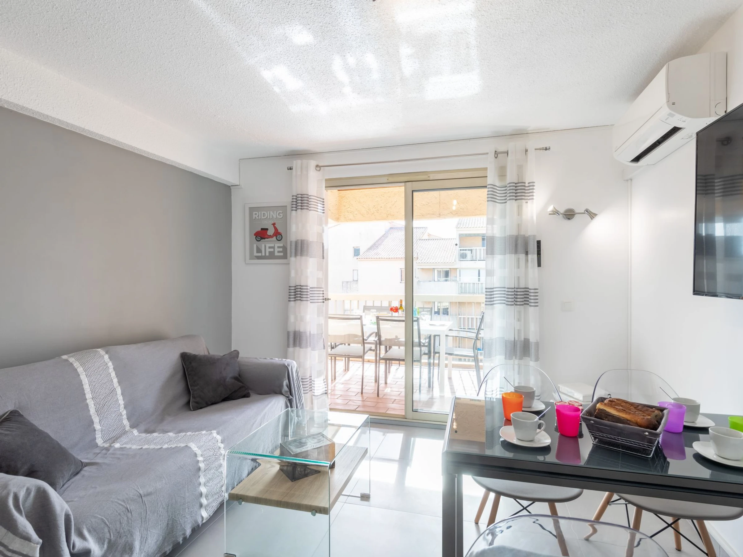 3-Zimmer-Wohnung 43 m2 im 3. Stock, Südlage. Renoviert, zweckmässig und schön eingerichtet: Wohn-/Esszimmer mit TV. Ausgang zur Terrasse. 1 Zimmer mit 1 franz. Bett (1 x 140 cm, Länge 190 cm), TV. Ausgang zur Terrasse. 1 kleines Zimmer mit 1 x 1 Etagenbetten (90 cm, Länge 190 cm), 1 franz. Bett (1 x 140 cm, Länge 190 cm). Ausgang zur Terrasse. Offene Küche (Backofen, Geschirrspüler, 4 Induktionskochplatten, Toaster, Wasserkocher, Mikrowelle, Tiefkühler, elektrische Kaffeemaschine, Kapseln für die Kaffeemaschine (Nespresso) extra). Dusche, sep. WC. Heizung, Klimaanlage. Terrasse 20 m2. Terrassenmöbel. Zur Verfügung: Waschmaschine, Bügeleisen. Internet (WLAN, gratis). Parkplatz, Garage Nr. 253, Höhe 180 cm, Breite 250 cm. Bitte beachten: Nichtraucher-Unterkunft. Maximal 1 Haustier/Hund erlaubt. Rauchmelder. [hidden]