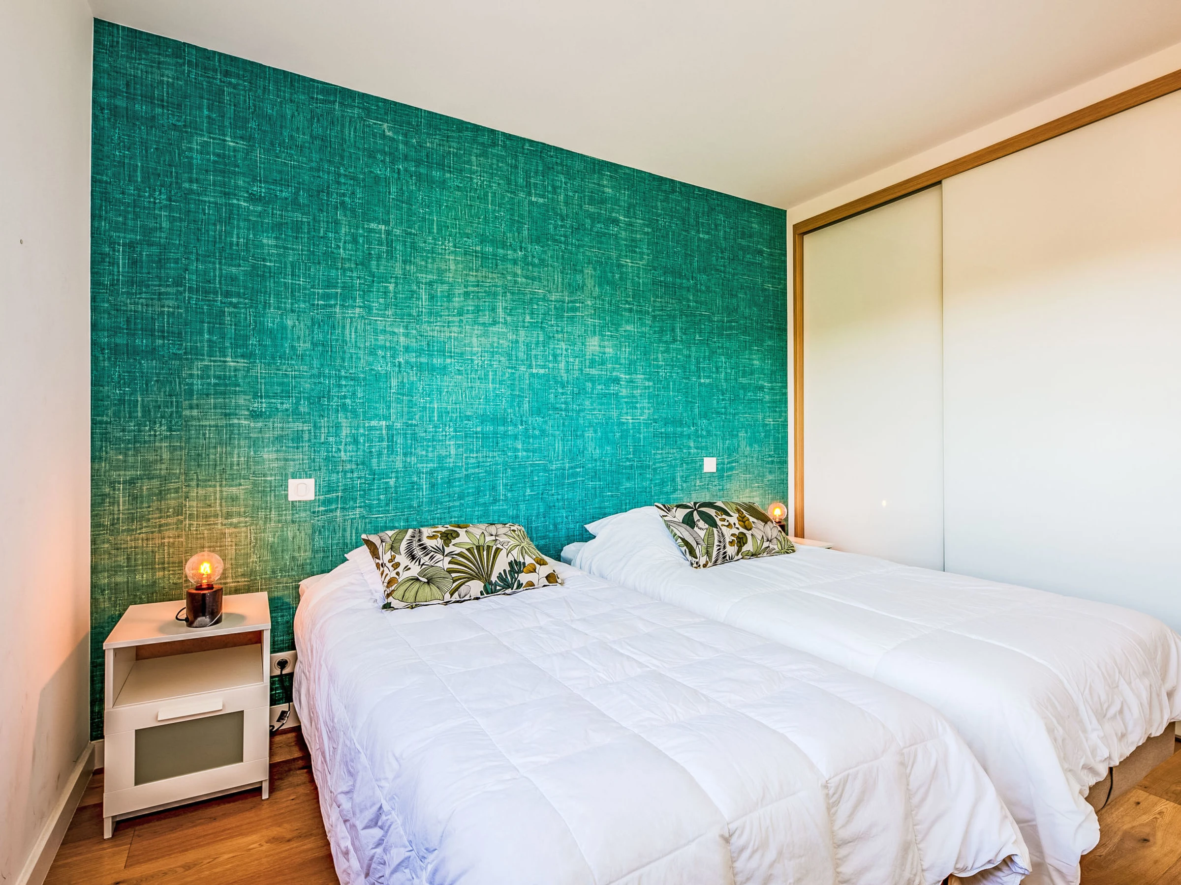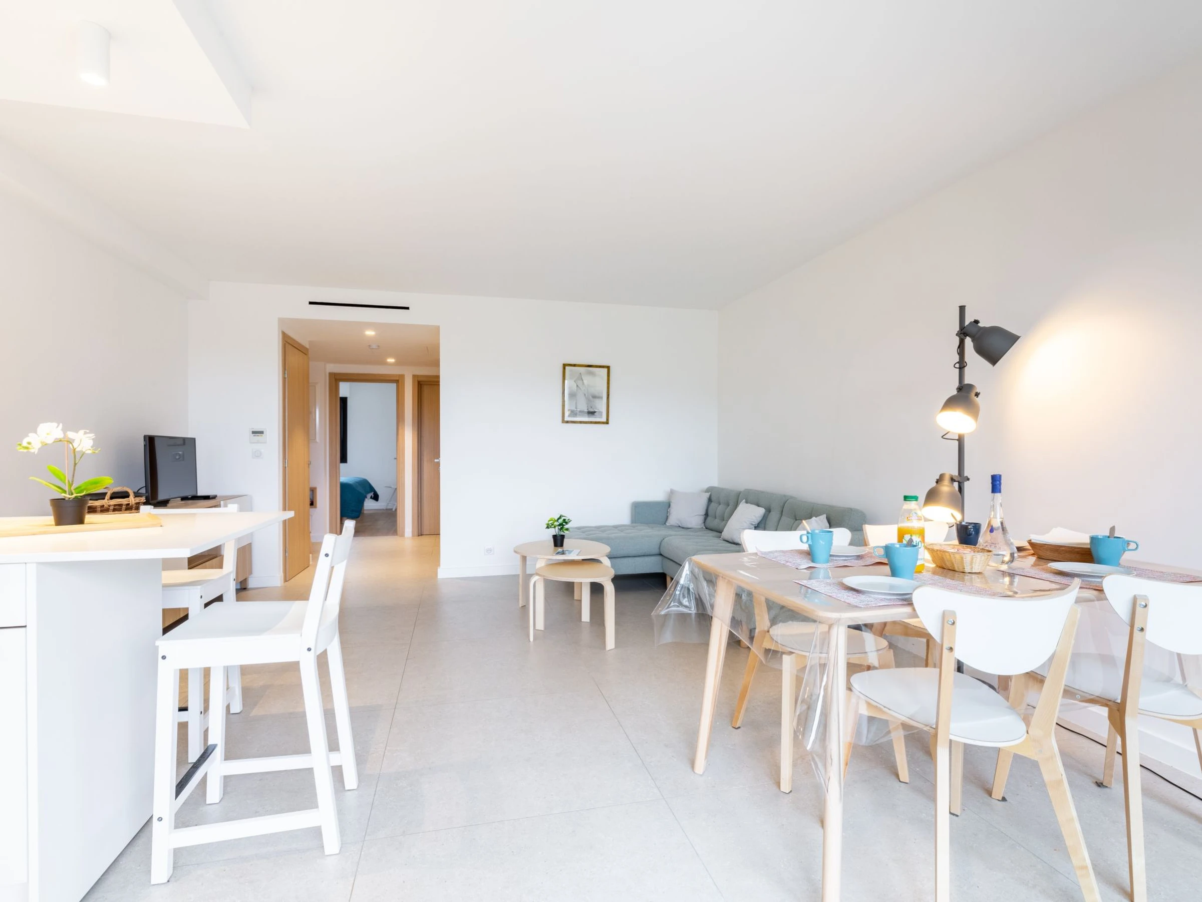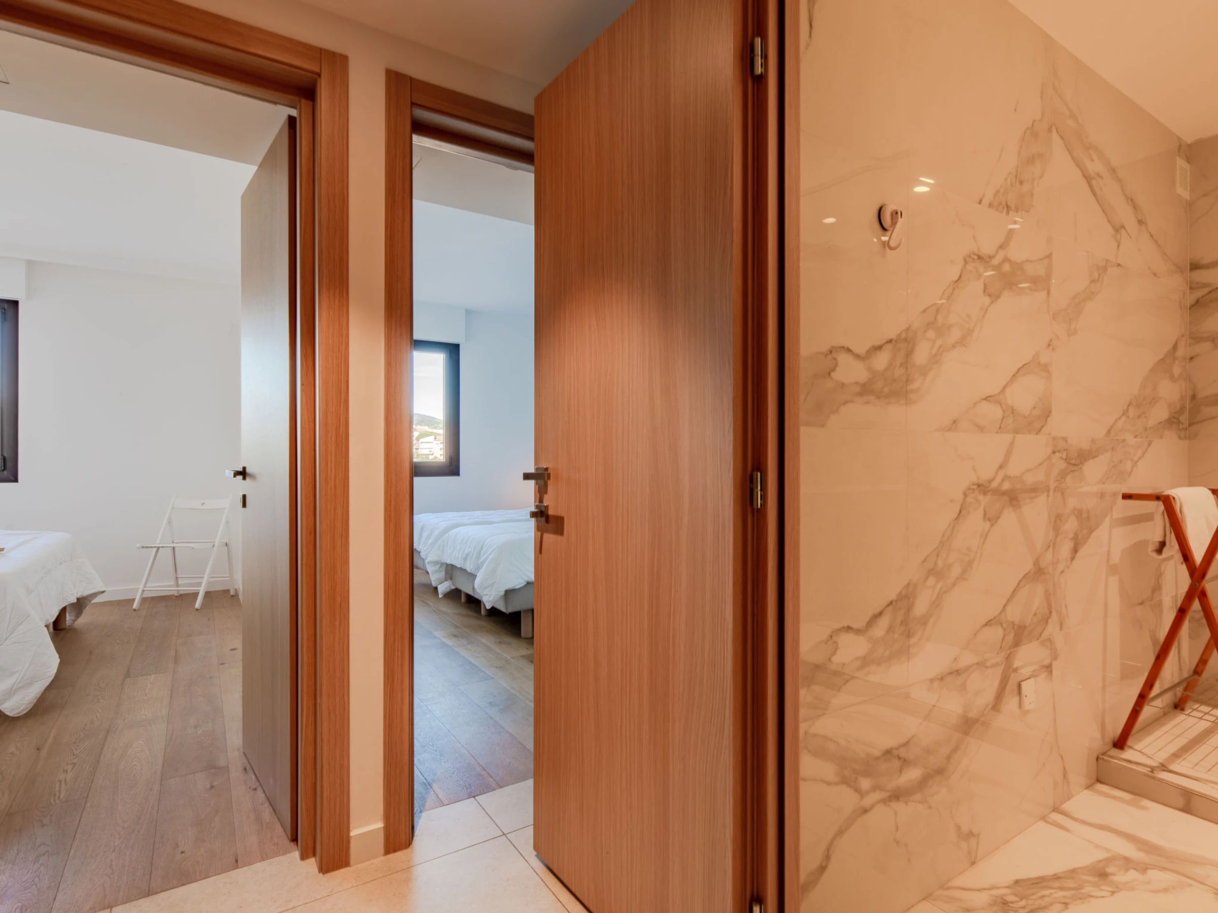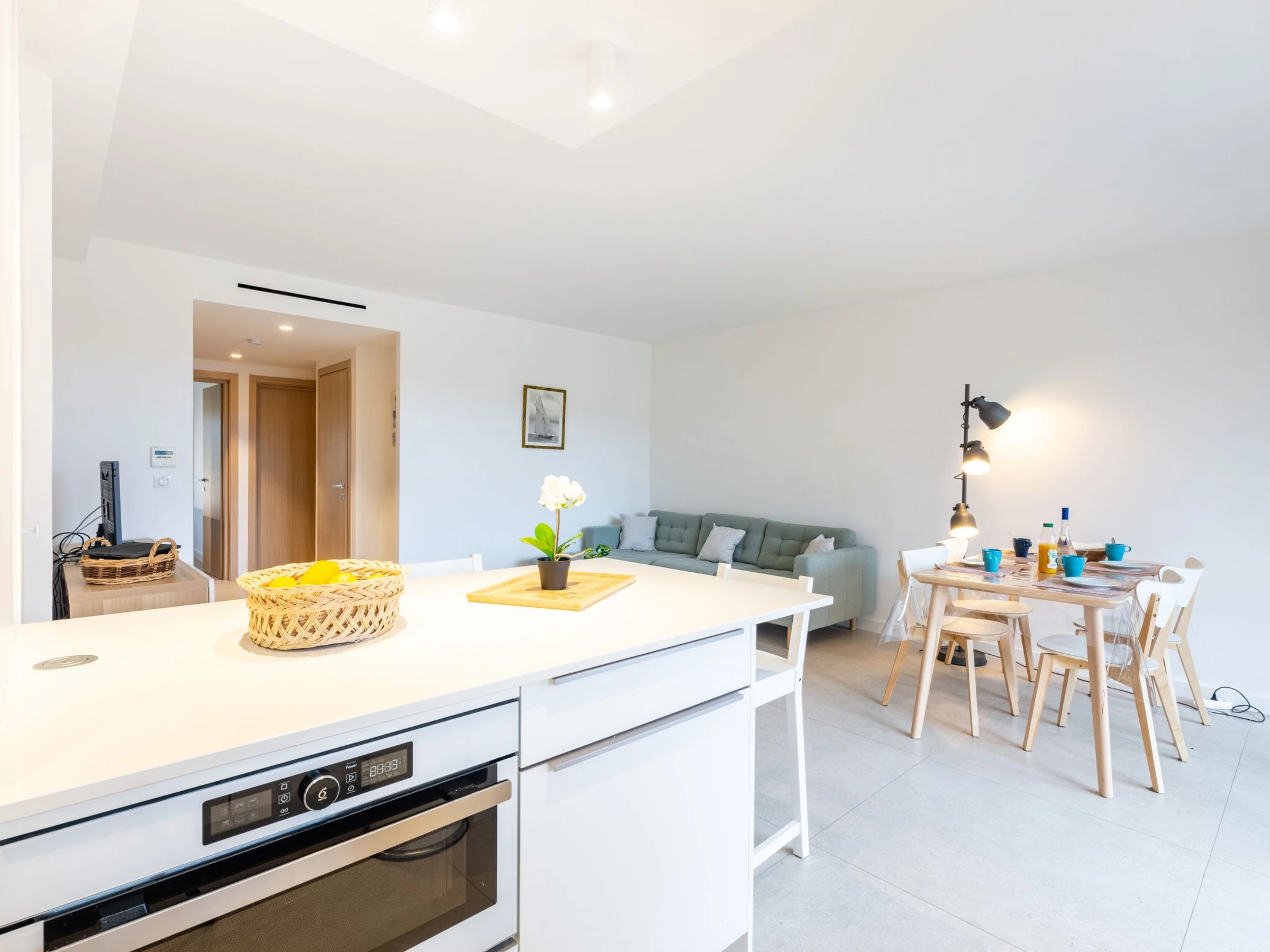 3-Zimmer-Wohnung 61 m2 im 1. Stock, Südlage. Modern eingerichtet: Wohn-/Esszimmer mit TV (Flachbildschirm). Ausgang zum Balkon. 1 Zimmer mit 1 Doppelbett (2 x 90 cm, Länge 200 cm), Klimaanlage. 1 Zimmer mit 2 Betten (90 cm, Länge 190 cm), Klimaanlage. Offene Küche (Backofen, Geschirrspüler, 1 Induktionskochplatten, 3 Flammen, Toaster, Wasserkocher, Mikrowelle, elektrische Kaffeemaschine). Dusche, sep. WC. Heizung. Balkon 9 m2. Balkonmöbel. Sicht auf die Landschaft. Zur Verfügung: Waschmaschine. Internet (WLAN, gratis). Bitte beachten: Nichtraucher-Unterkunft. Rauchmelder. [hidden]