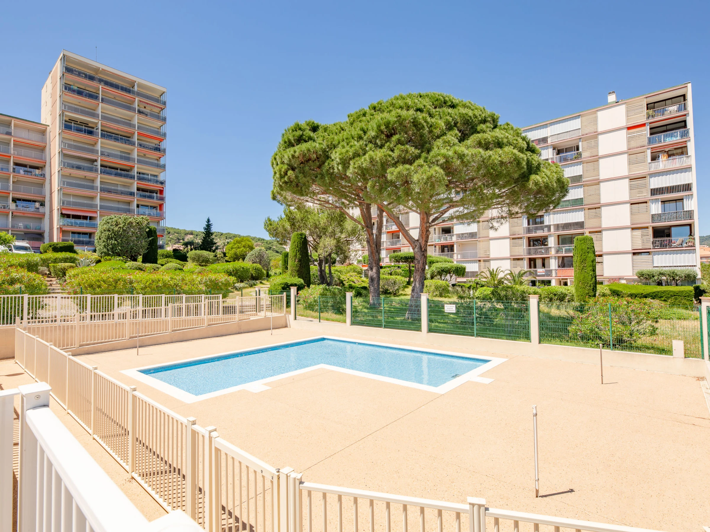 Residenz "Les Côteaux du Préconil". Im Ort, 800 m vom Zentrum von Sainte Maxime, sonnige Lage, 800 m vom Meer, 800 m vom Strand. Zur Mitbenutzung: grosser, gepflegter Garten, Schwimmbad eckig (25 x 10 m, 200 - 120 cm tief, saisonale Verfügbarkeit: [hidden] - [hidden] Kinderbecken, Aussendusche, Tennis, Boccia. In der Anlage: Fahrstuhl, Einstellraum für Fahrräder. Parkplatz (beschränkte Anzahl). E-Ladestation. Einkaufsgeschäft 500 m, Lebensmittelgeschäft 450 m, Supermarkt 1.2 km, Bushaltestelle 1 km, Bahnstation "TGV Saint-Raphaël" 20 km, Sandstrand "Centre ville" 800 m, Thermalbad "Thalassothérapie Les Issambres" 7 km. Sporthafen 1.2 km, Golfplatz (18 Loch) 5 km, Segelschule 1 km, Tennis 50 m. Nahe gelegene Sehenswürdigkeiten: Aqualand waterpark 2.5 km, St Tropez,Ramatuelle 15 km, Port Grimaud 8 km, Gorges du Verdon 75 km, Navette / shuttle boat St-Tropez 15min 1.2 km. Wandergebiete: Massif des Maures 5 km, Massif de l'Estérel 20 km. Bitte beachten: Die Residenz wird durch elektrische Tore geschlossen. Flugplatz 60 km vom Haus. Tiere sind auf dem Miteigentum, im Garten und im Schwimmbadbereich verboten. Aufzüge halten auf der halben Etage.