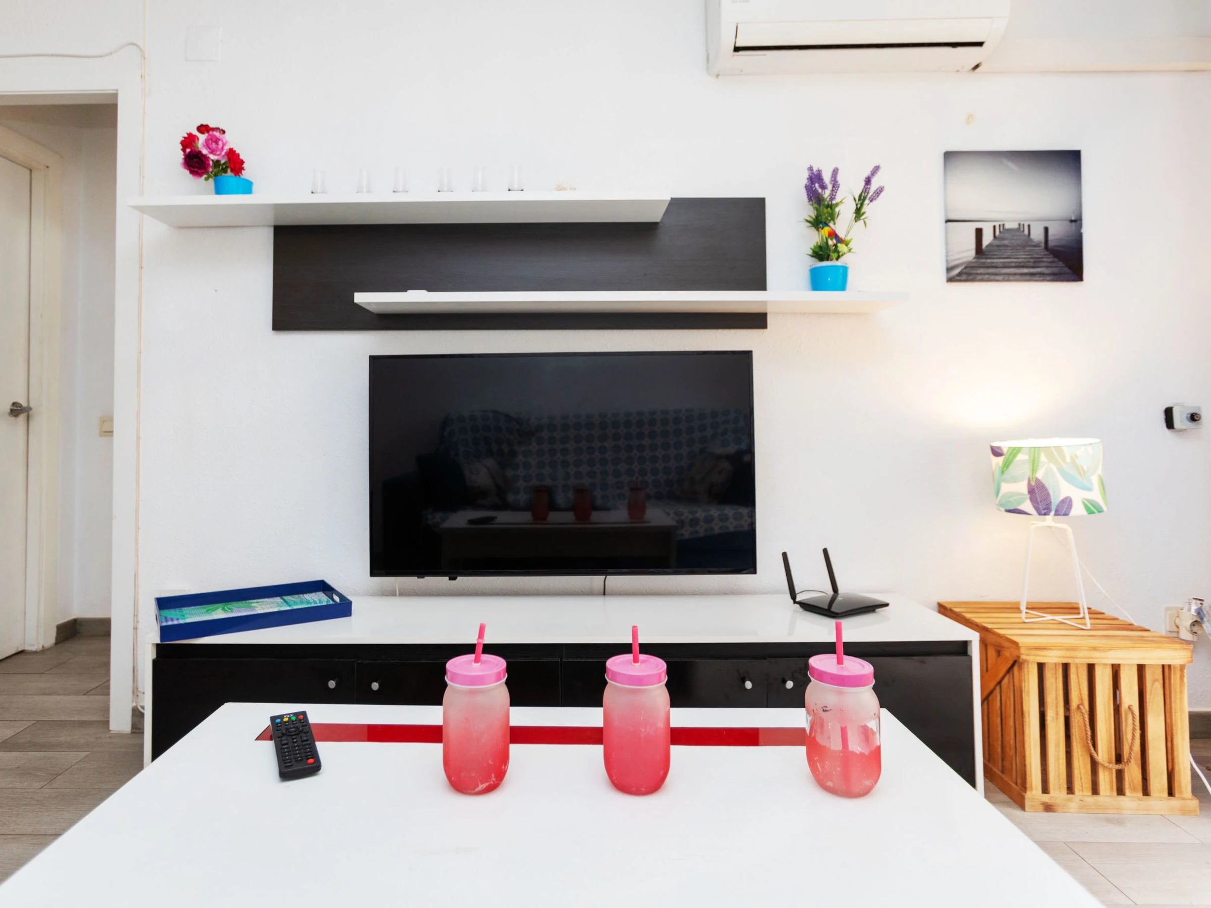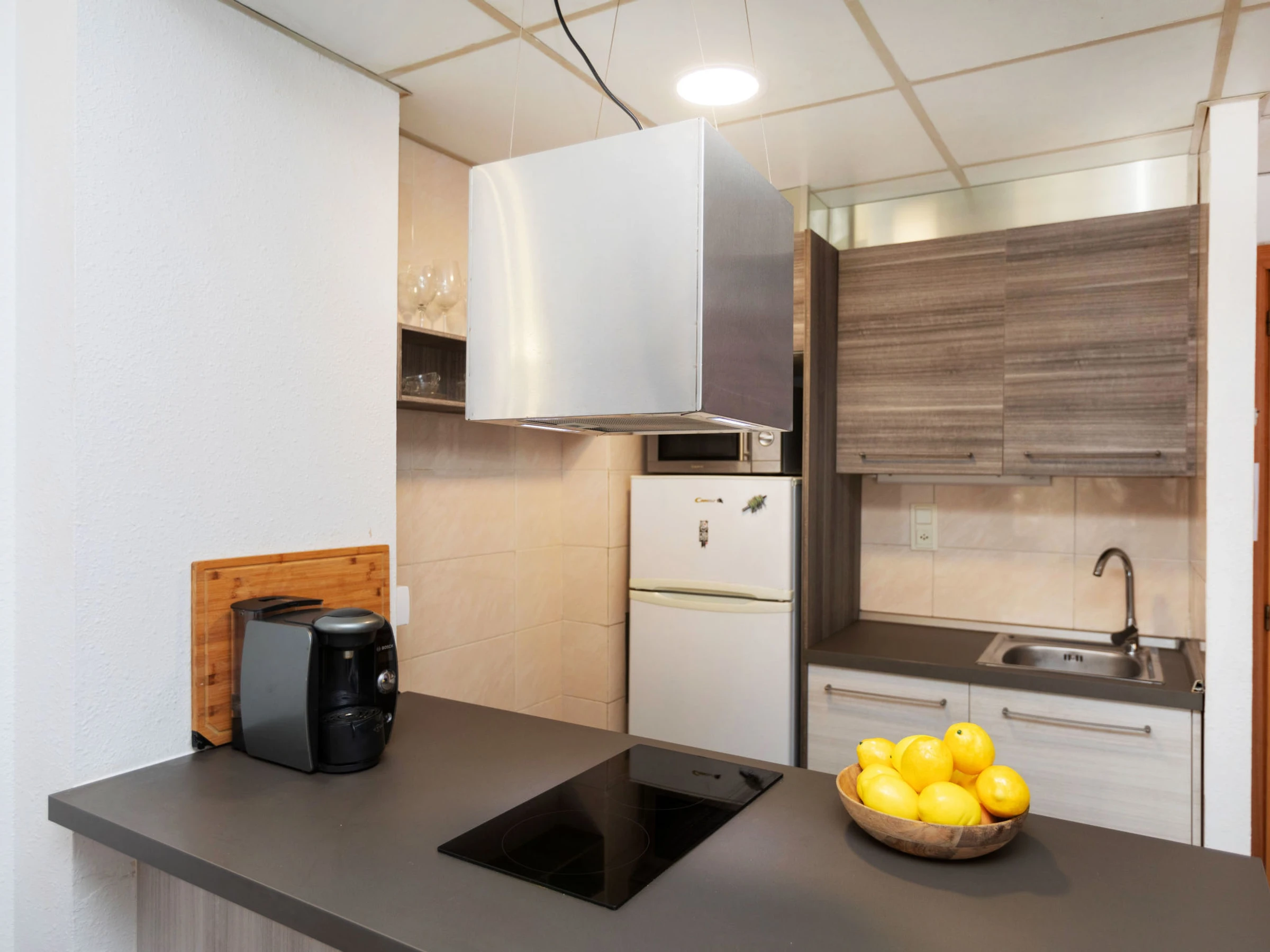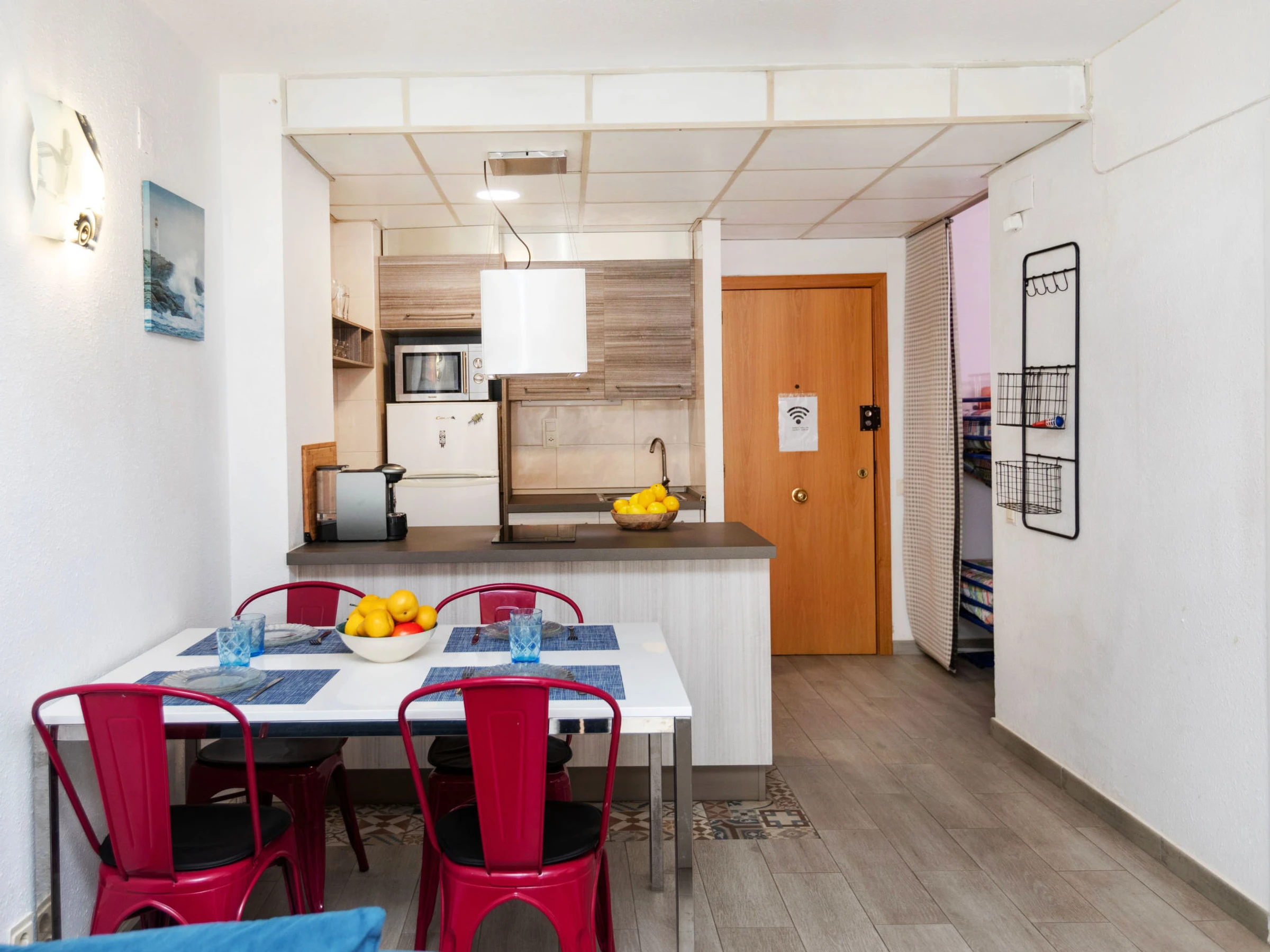 "Catalunya 92", 3-Zimmer-Wohnung 45 m2 im 4. Stock. Gemütlich eingerichtet: mit 1 Diwanbett (135 cm, Länge 190 cm), TV (Flachbildschirm), Klimaanlage und Warmluftheizung. Ausgang zum Balkon. 1 Zimmer mit 1 franz. Bett (150 cm, Länge 190 cm). Ohne Fenster mit 1 x 2 Etagenbetten (90 cm, Länge 180 cm). Offene Küche (Backofen, 2 Glaskeramikplatten, Toaster, Wasserkocher, Mikrowelle, elektrische Kaffeemaschine, Kapseln für die Kaffeemaschine (Krups) extra). Dusche/WC. Klimaanlage, Warmluftheizung, Boiler (50 Liter). Heizung nicht in allen Räumen. Terrassenmöbel. Zur Verfügung: Waschmaschine, Bügeleisen, Haartrockner. Internet (WLAN, gratis). [hidden]
