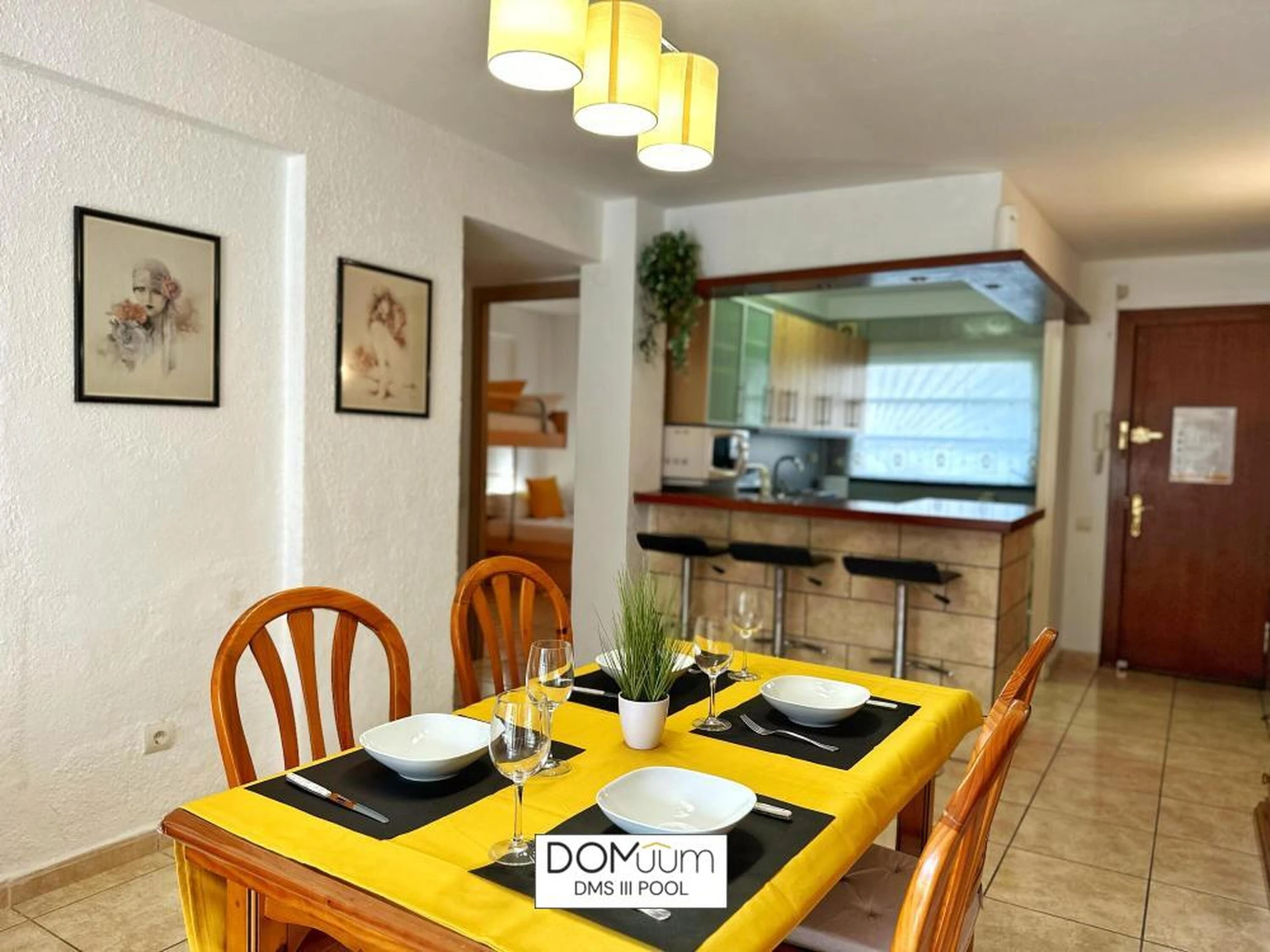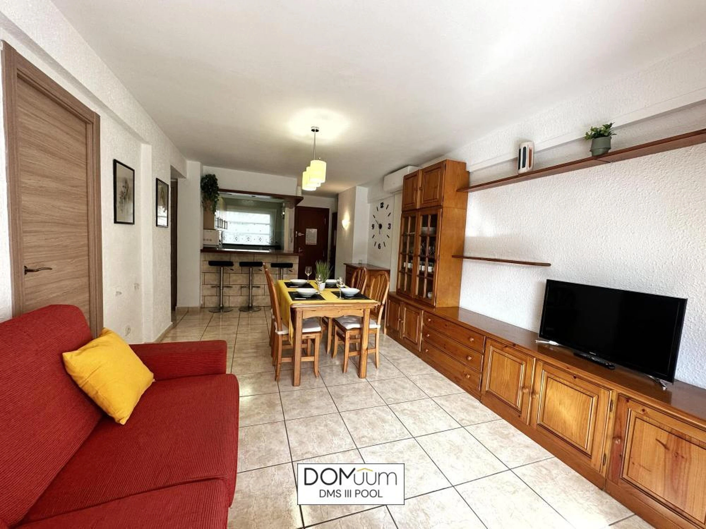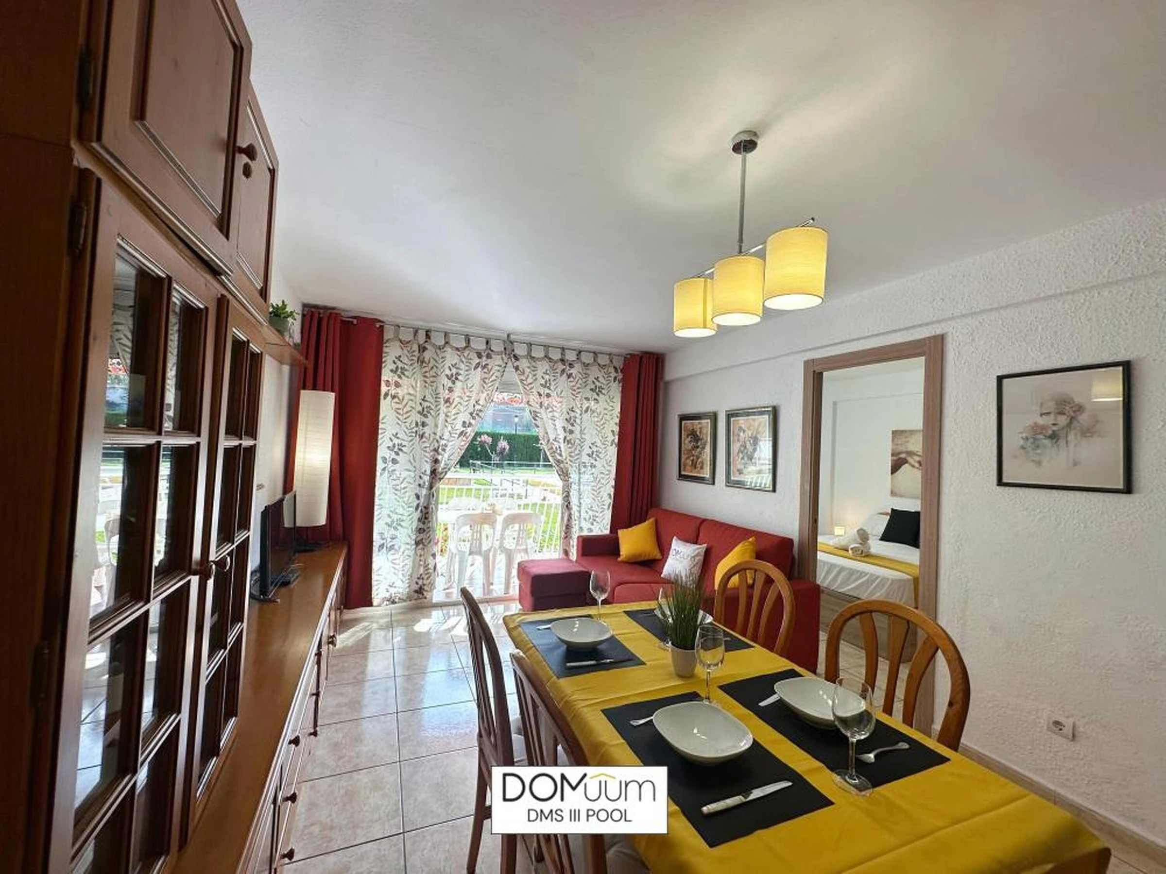 Ideal für einen Urlaub an der Costa Dorada, in außergewöhnlicher Lage, nur 600 Meter von Playa del Llevant entfernt, wo Sie alle Dienstleistungen und Einrichtungen dieses Strandes mit Wasseraktivitäten, einem Sportbereich und einem Spielplatz für die Kleinen nutzen können. Außerdem finden Sie nur 600 Meter von der Unterkunft entfernt das Touristenzentrum mit allen Annehmlichkeiten und Freizeitbereichen in Reichweite. Das Apartment DMS III Pool bietet Platz für 6 Personen und verfügt über ein Badezimmer mit Dusche, ein Schlafzimmer mit einem Doppelbett und ein Schlafzimmer mit drei Einzelbetten. Das Wohnzimmer verfügt außerdem über ein Schlafsofa. Sie finden Bettwäsche, Handtücher, einen Flachbildfernseher, eine voll ausgestattete Küche und eine Terrasse vor. Das Apartment verfügt über kostenloses WLAN, Klimaanlage und 1 Parkplatz. Die Wohnanlage verfügt über einen schönen Gemeinschaftsbereich mit Garten und Swimmingpool. Sie wohnen in der Nähe der beliebtesten Sehenswürdigkeiten der Costa Daurada, im Herzen des Touristen- und Freizeitgebiets von Salou und seinem berühmten leuchtenden Brunnen. Port Aventura ist nur 10 Gehminuten entfernt! WICHTIGE INFORMATIONEN! - Check-in und Schlüsselübergabe erfolgen von 16:00 bis 20:00 Uhr in der Agentur in der VIA AURELIA 2 IN SALOU - Kaution von 300 € per Kreditkarte (nicht inbegriffen) - Kurtaxe von 1,10 € pro Person und Nacht (nicht inbegriffen) - Check-out-Zeit: 10:00 Uhr