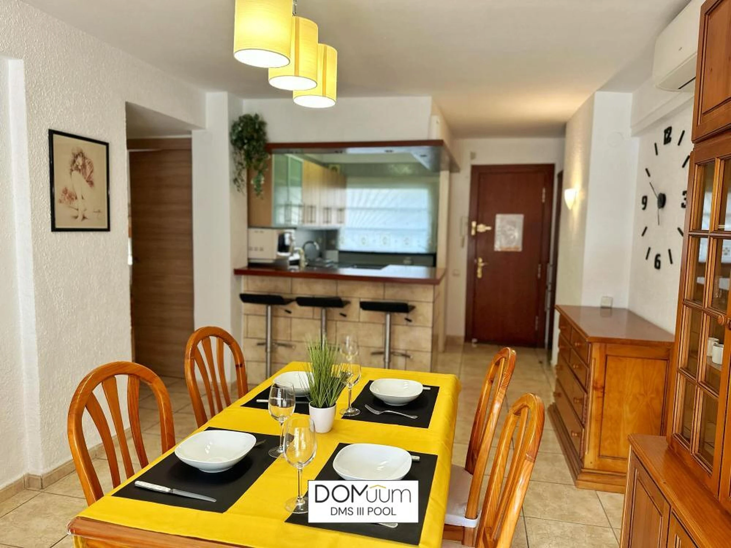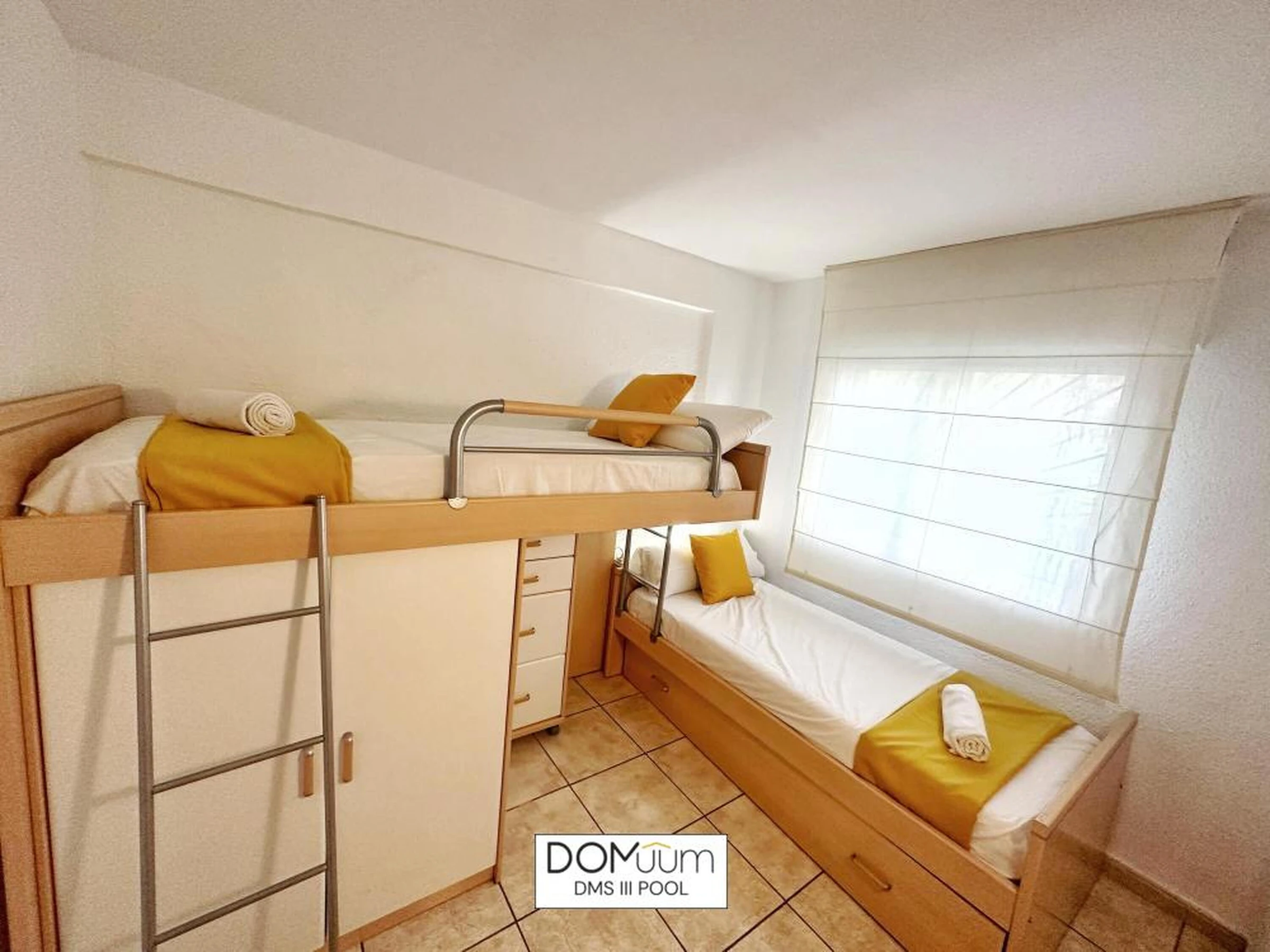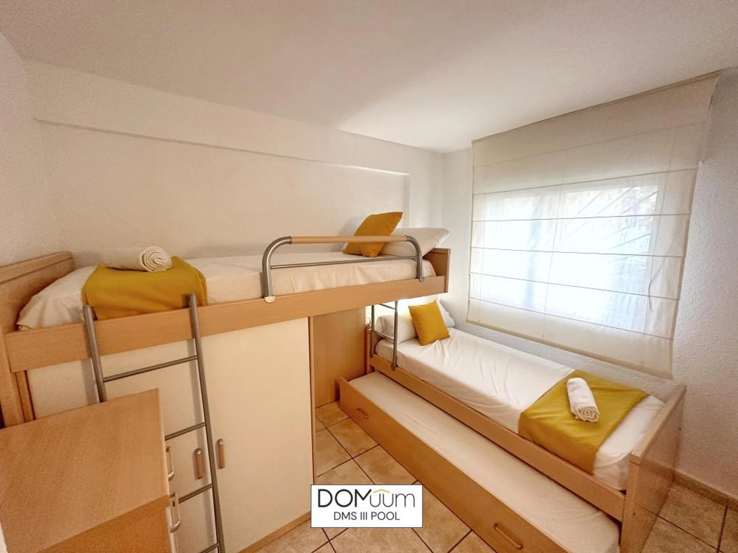 Ideal für einen Urlaub an der Costa Dorada, in außergewöhnlicher Lage, nur 600 Meter von Playa del Llevant entfernt, wo Sie alle Dienstleistungen und Einrichtungen dieses Strandes mit Wasseraktivitäten, einem Sportbereich und einem Spielplatz für die Kleinen nutzen können. Außerdem finden Sie nur 600 Meter von der Unterkunft entfernt das Touristenzentrum mit allen Annehmlichkeiten und Freizeitbereichen in Reichweite. Das Apartment DMS III Pool bietet Platz für 6 Personen und verfügt über ein Badezimmer mit Dusche, ein Schlafzimmer mit einem Doppelbett und ein Schlafzimmer mit drei Einzelbetten. Das Wohnzimmer verfügt außerdem über ein Schlafsofa. Sie finden Bettwäsche, Handtücher, einen Flachbildfernseher, eine voll ausgestattete Küche und eine Terrasse vor. Das Apartment verfügt über kostenloses WLAN, Klimaanlage und 1 Parkplatz. Die Wohnanlage verfügt über einen schönen Gemeinschaftsbereich mit Garten und Swimmingpool. Sie wohnen in der Nähe der beliebtesten Sehenswürdigkeiten der Costa Daurada, im Herzen des Touristen- und Freizeitgebiets von Salou und seinem berühmten leuchtenden Brunnen. Port Aventura ist nur 10 Gehminuten entfernt! WICHTIGE INFORMATIONEN! - Check-in und Schlüsselübergabe erfolgen von 16:00 bis 20:00 Uhr in der Agentur in der VIA AURELIA 2 IN SALOU - Kaution von 300 € per Kreditkarte (nicht inbegriffen) - Kurtaxe von 1,10 € pro Person und Nacht (nicht inbegriffen) - Check-out-Zeit: 10:00 Uhr
