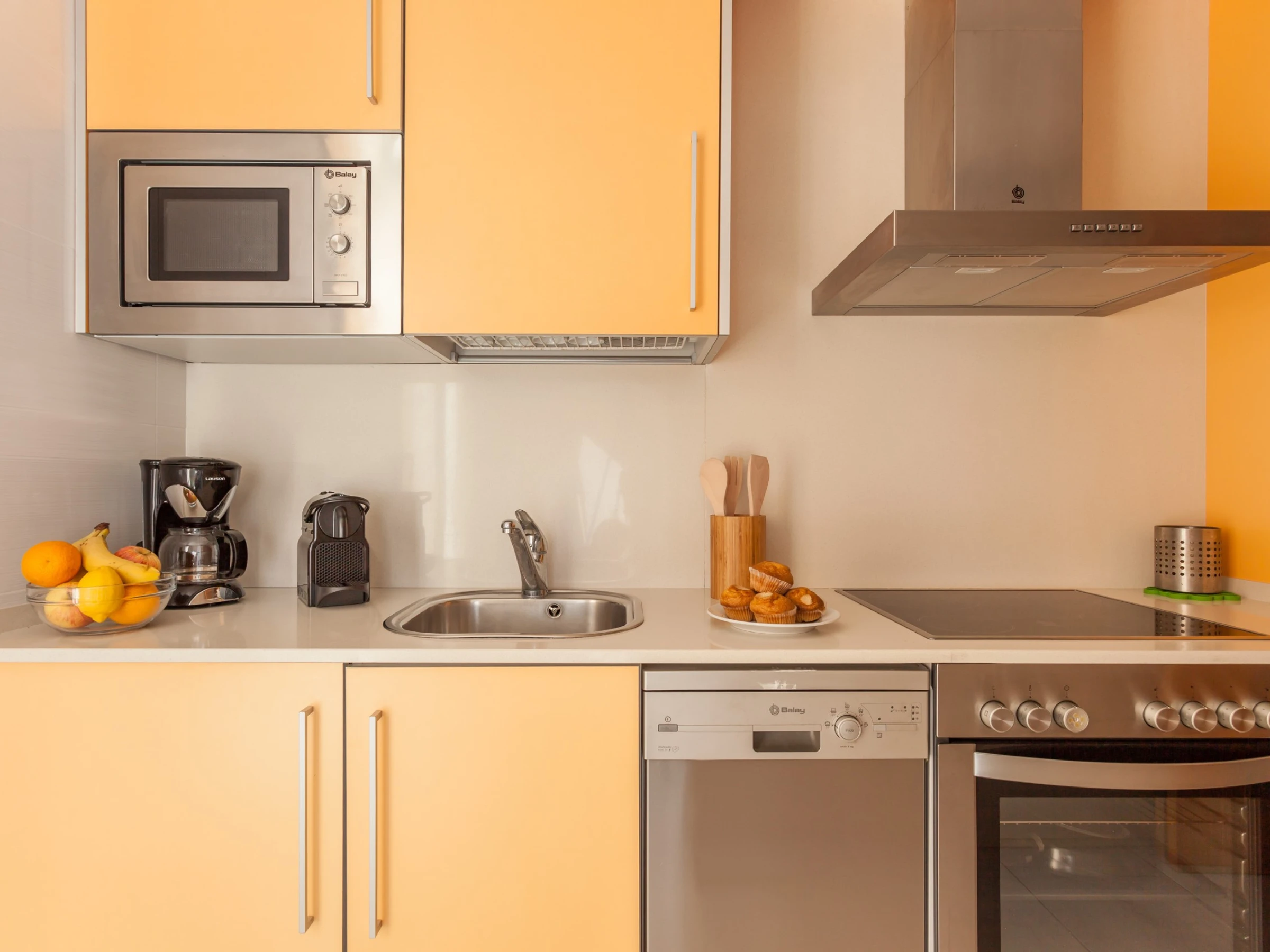 Dieses küche, ist ausgestattet in mikrowelle und spülmaschine.