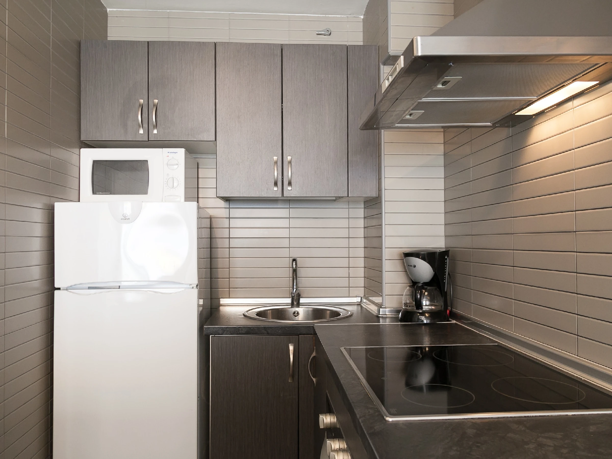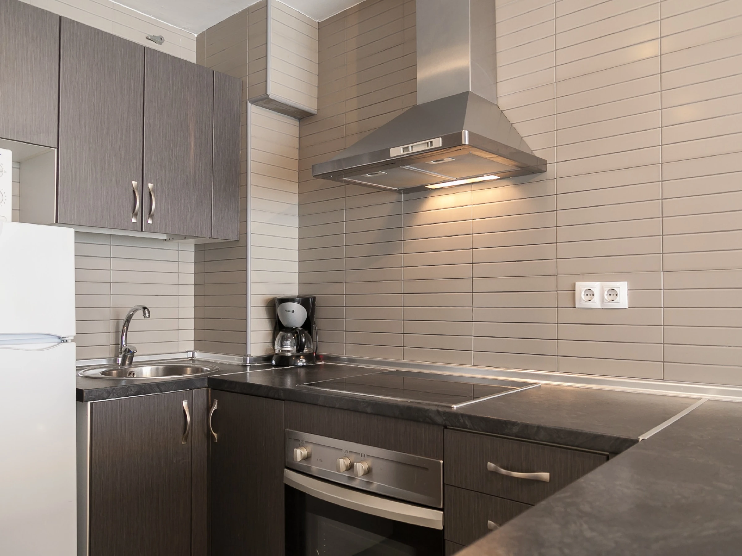 - Wohn-Esszimmer mit Doppelschlafsofa und gut ausgestatteter offener Küche. Eine Klimaanlage.