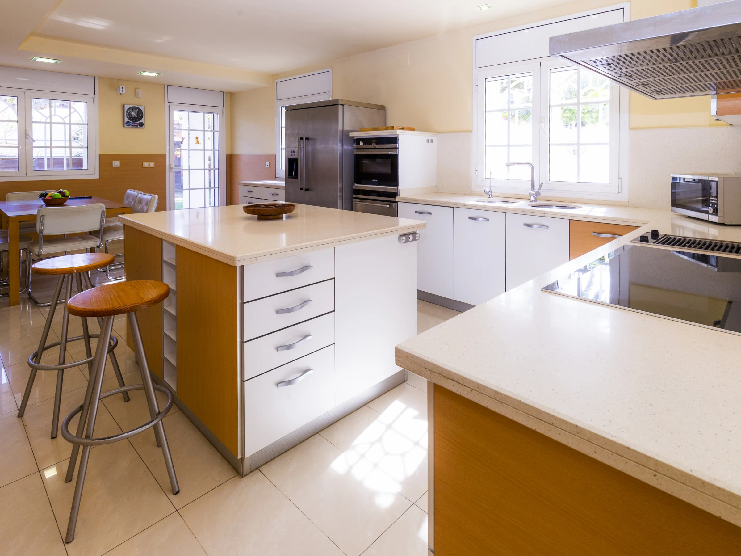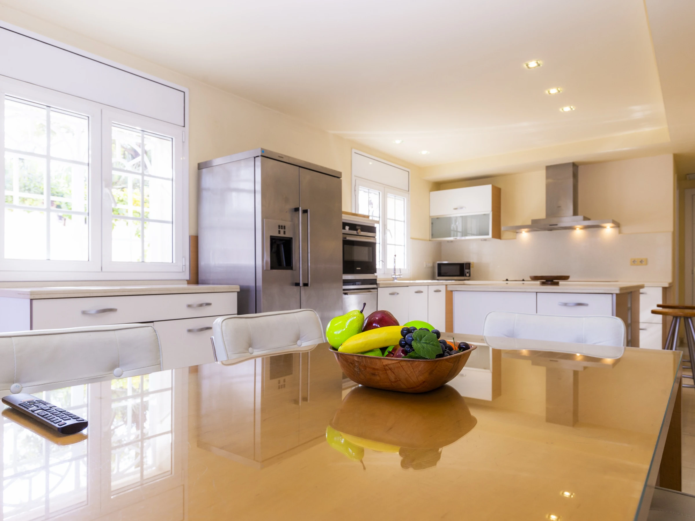 Die unabhängige Küche verfügt über Haushaltsgeräte der Spitzenklasse, wie einen Kühlschrank, Mikrowelle, Ofen, Gefrierschrank, Waschmaschine, Trockner, Geschirrspüler und alle notwendigen Utensilien und Geschirr, damit Sie warm kochen können. Hier finden Sie auch eine Kaffeemaschine, einen Toaster und Wasseraufbereitung, um Ihre täglichen Bedürfnisse zu erfüllen.