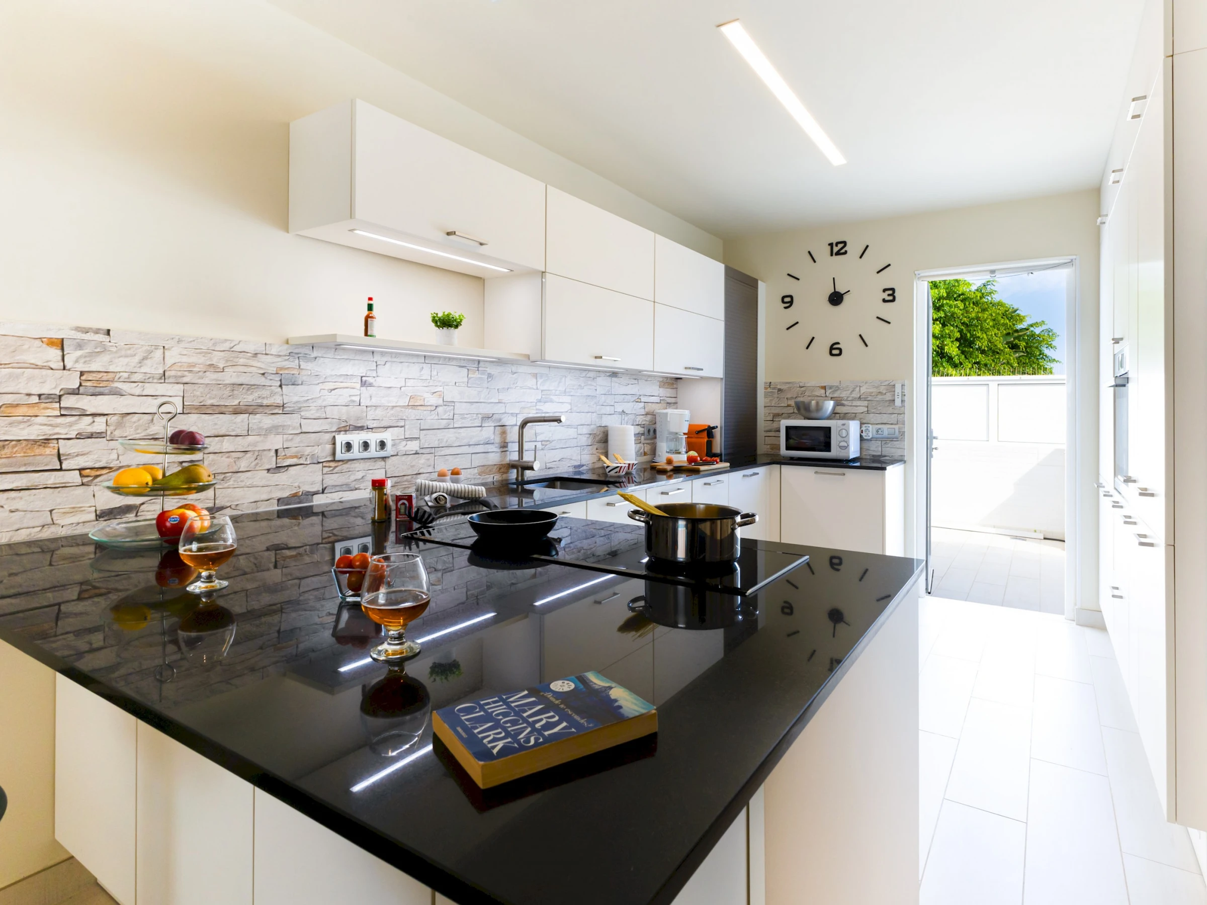 Dieses küche, ist ausgestattet in mikrowelle, geschirr/besteck, kochutensilien, kaffeemaschine, toaster und wasserkocher.