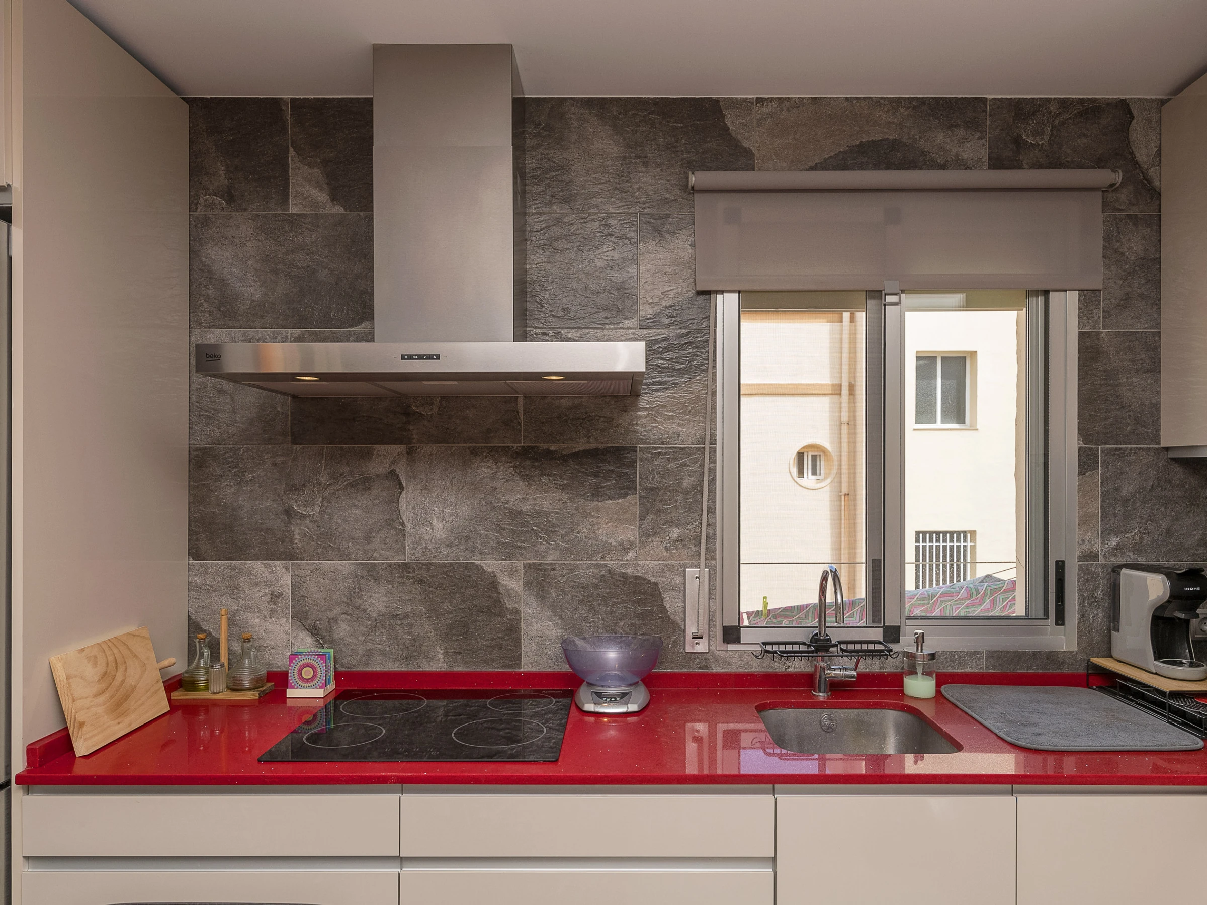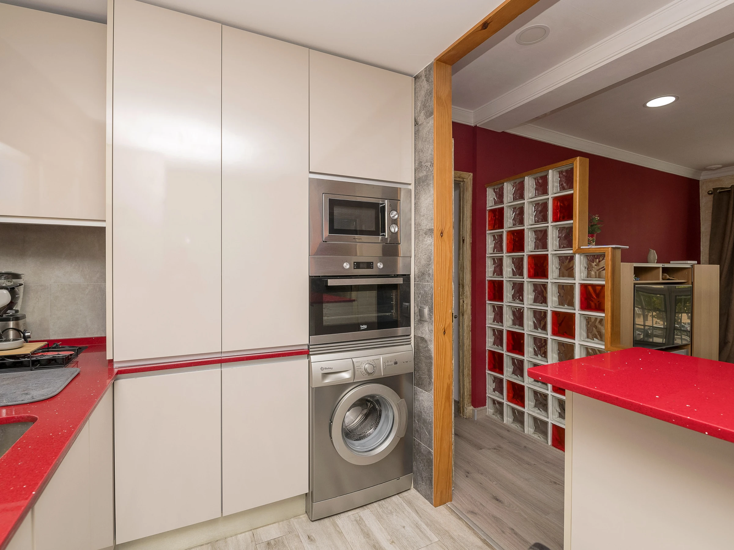 Dieses küche, ist ausgestattet in mikrowelle, gefrierschrank, kaffeemaschine und toaster.