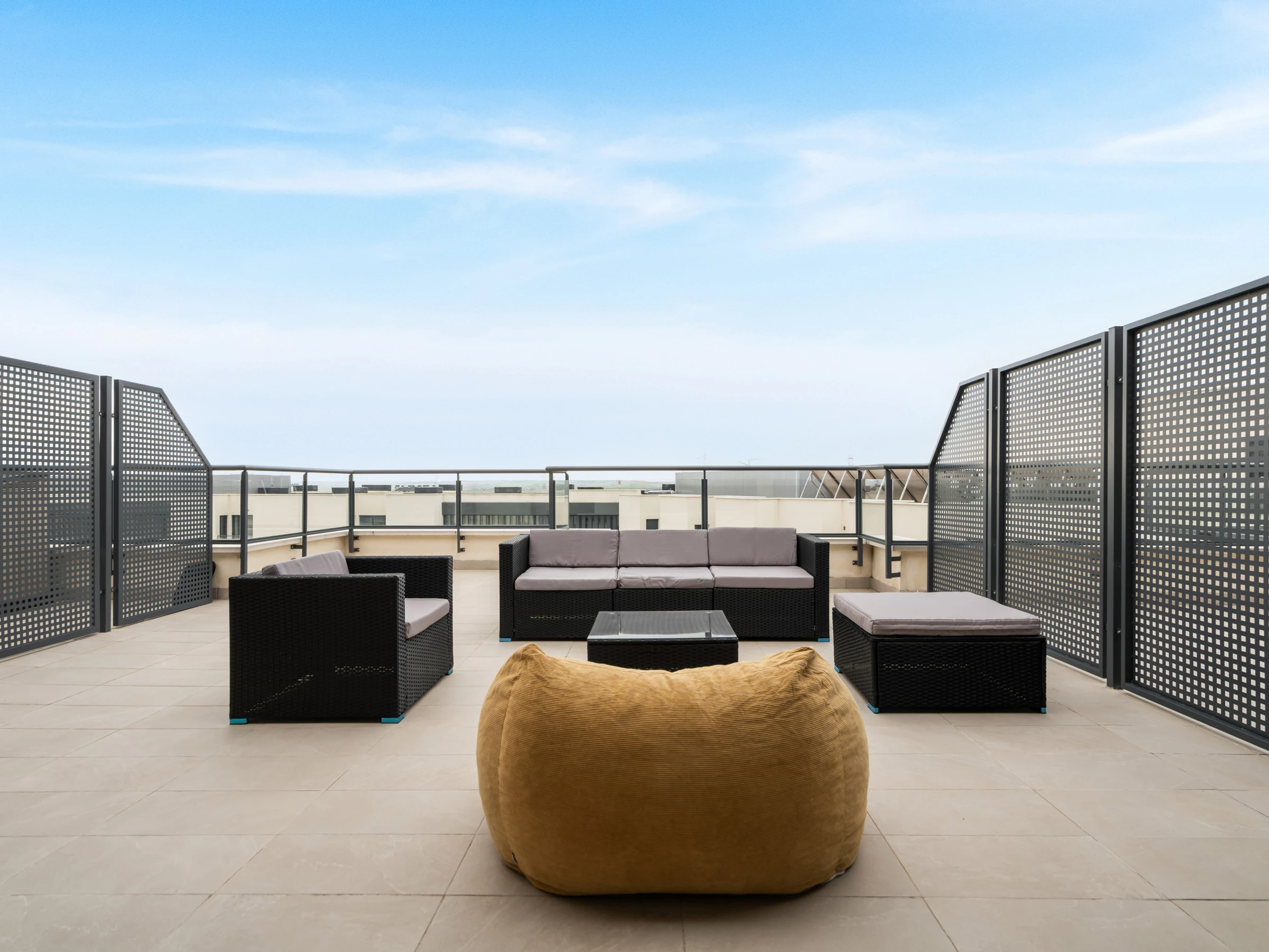 Das Gebäude bietet zusätzliche Einrichtungen, die es sehr attraktiv machen: Fitnessstudio, Kinderbereich, Squash- und Padel-Platz sowie einen gemeinsamen Swimmingpool. Darüber hinaus verfügt es über einen überdachten privaten Parkplatz, was das Parken erheblich erleichtert.